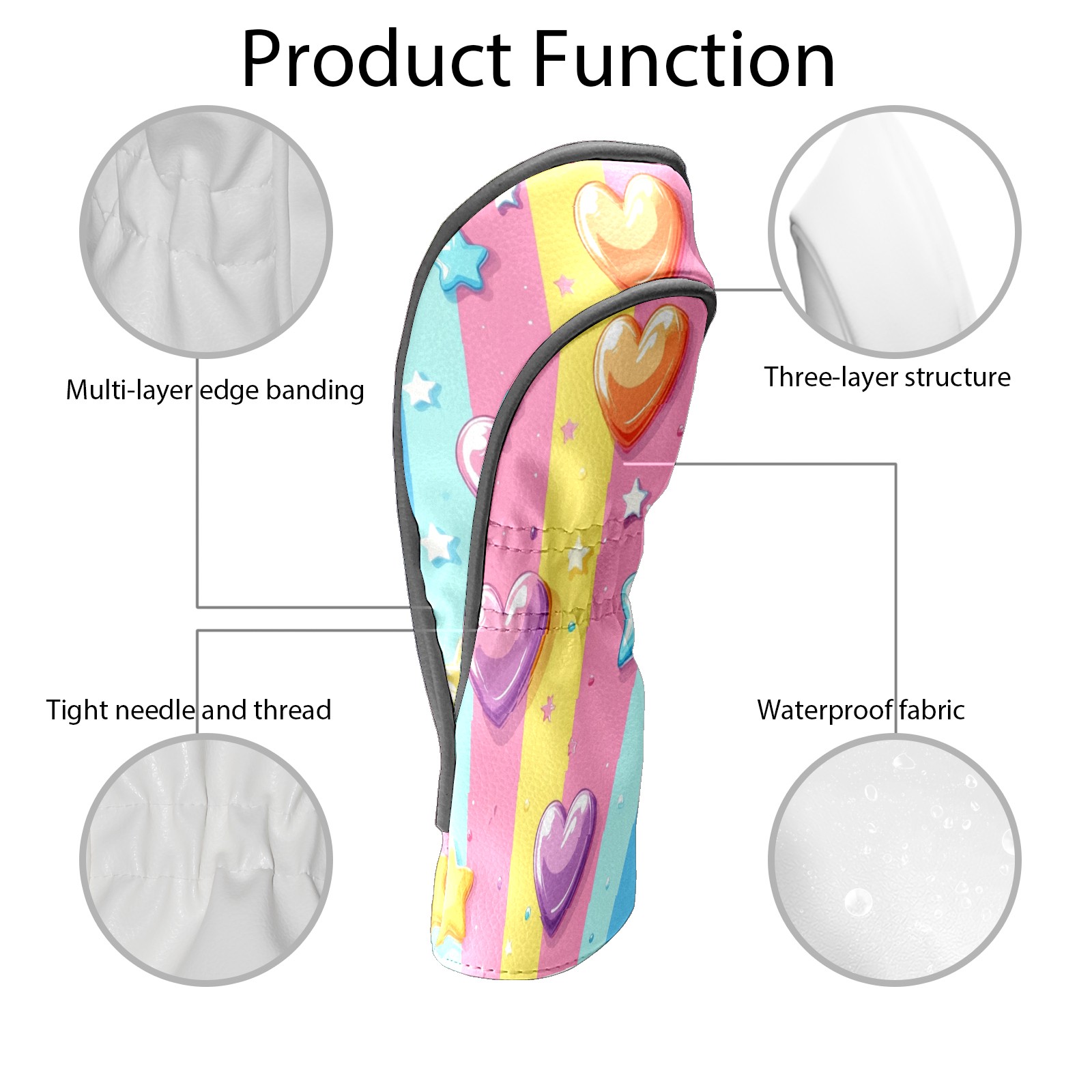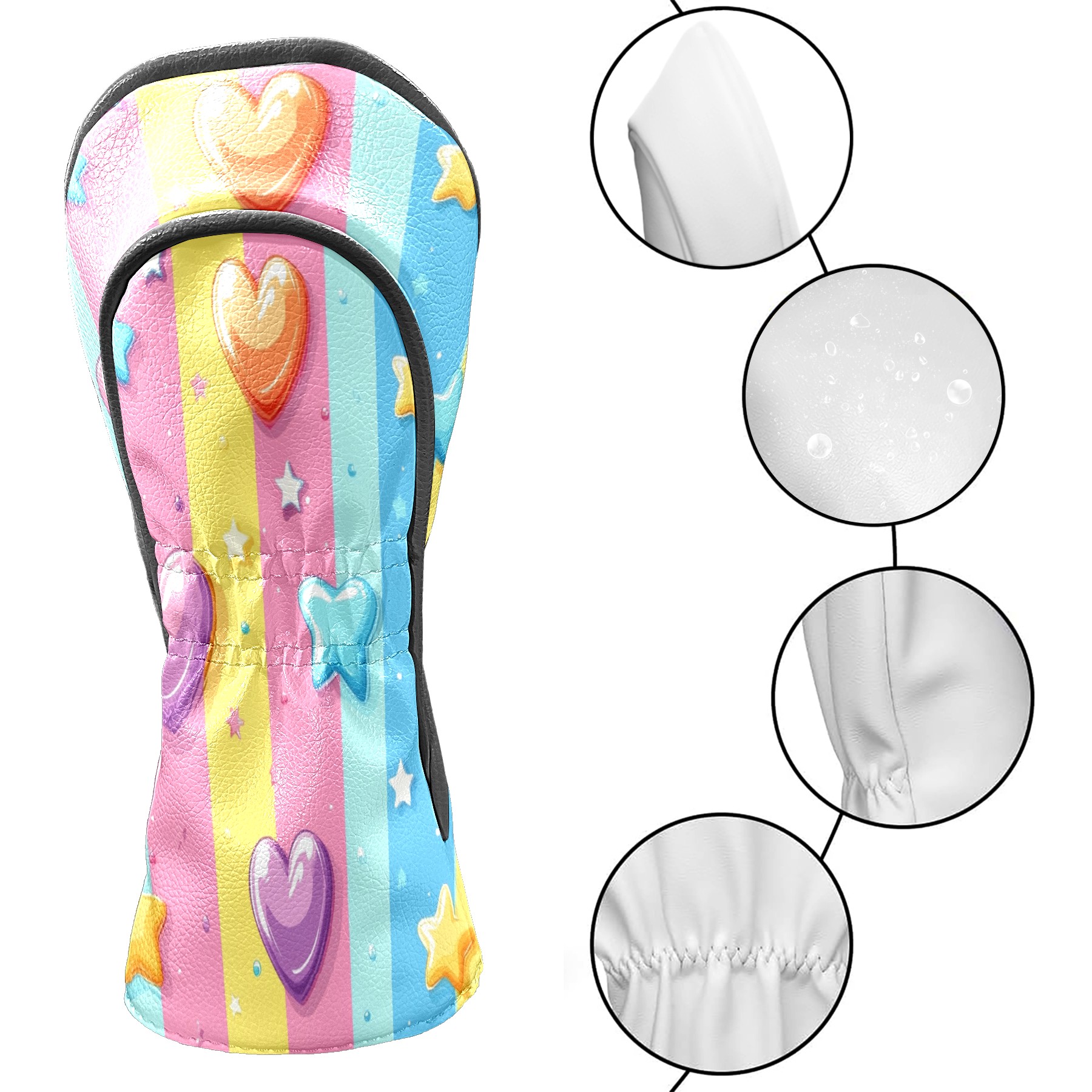 Golf Club Covers PU Leather Waterproof,Golf Club Head Covers for Fairway Woods and Hybrids Heart-shaped Stars Unisex Suitable for Most Brands