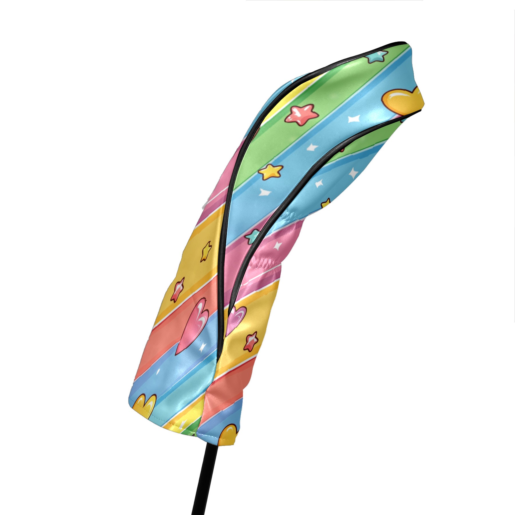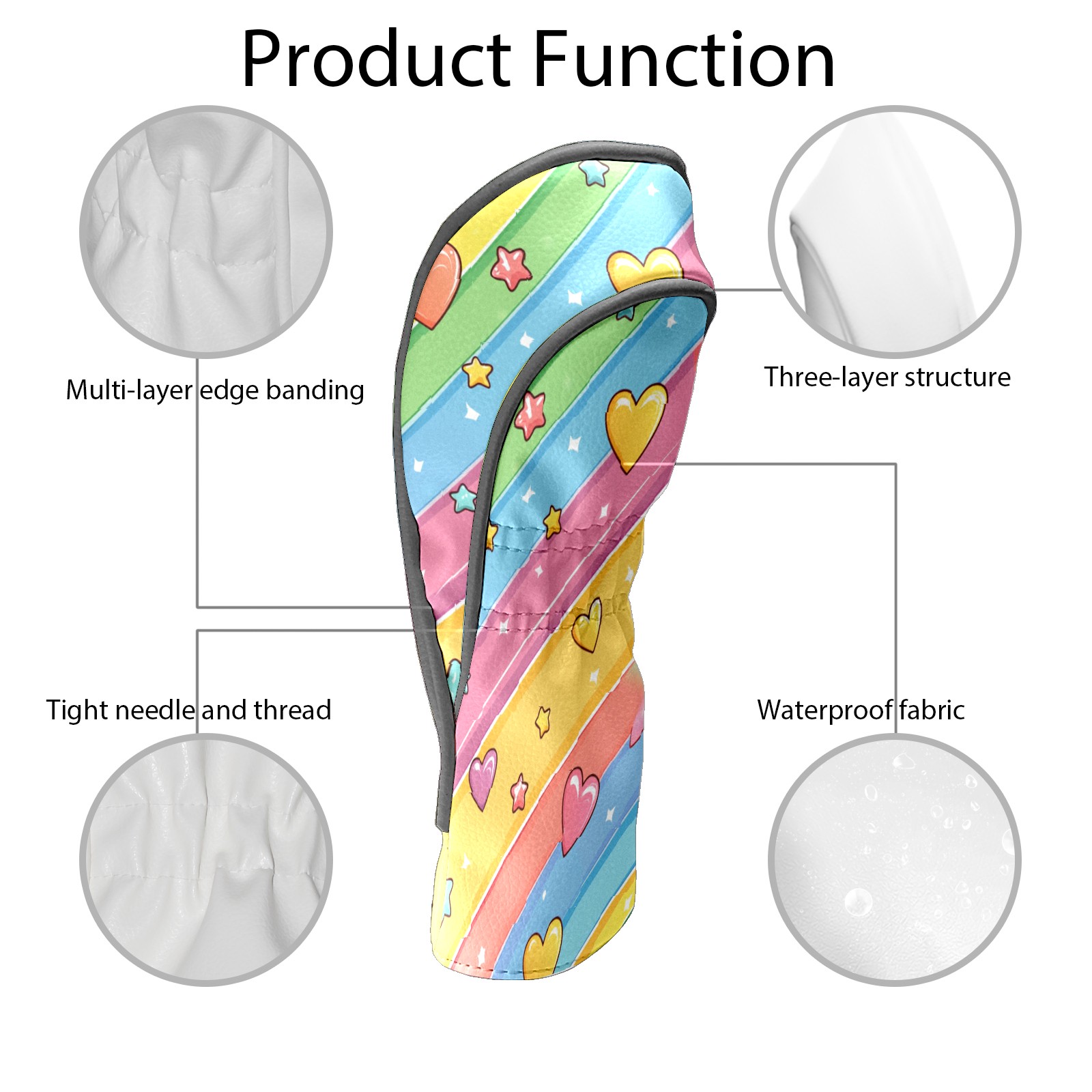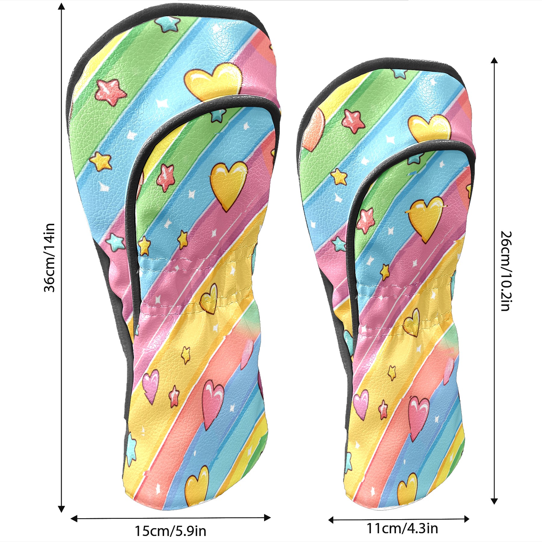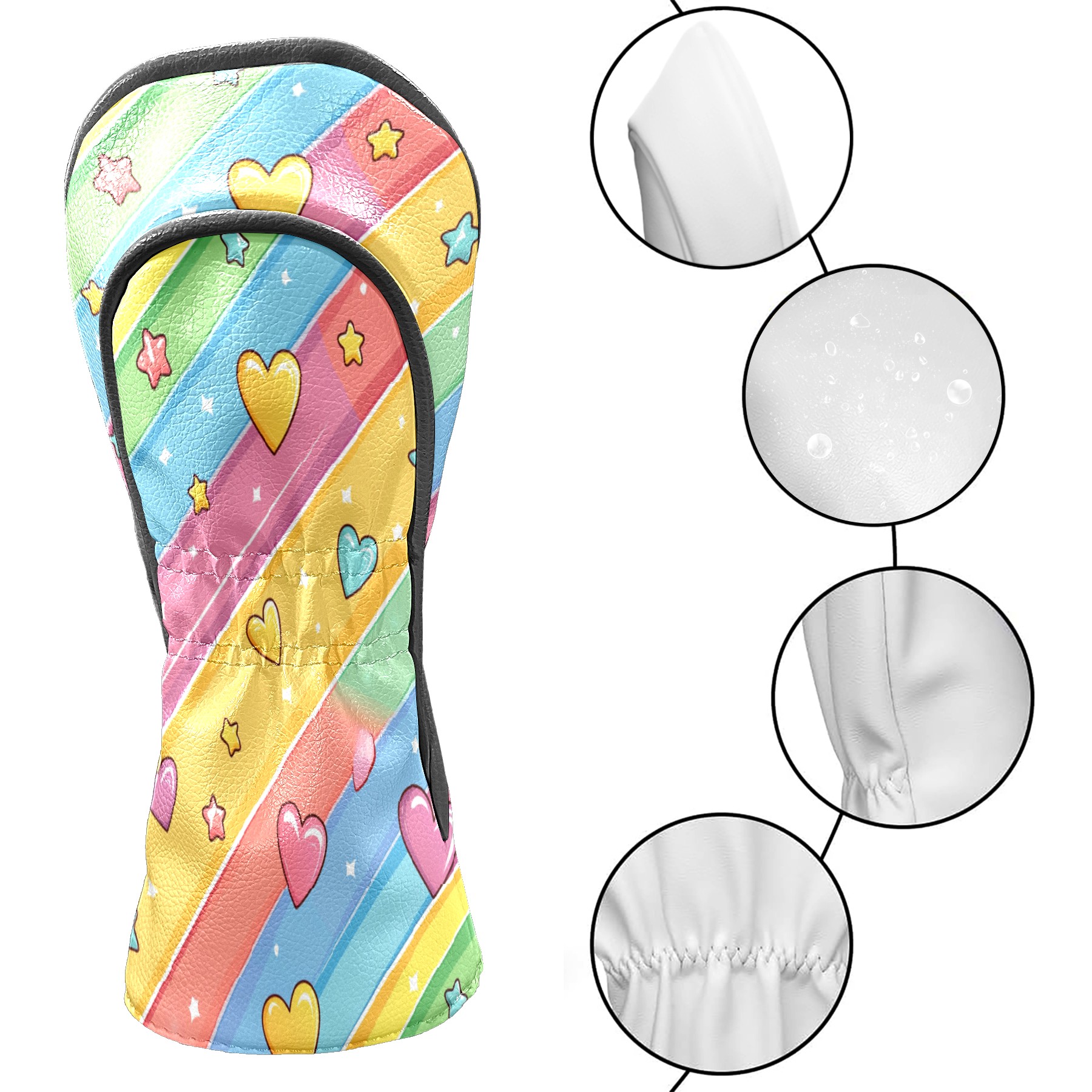 Golf Club Covers PU Leather Waterproof,Golf Club Head Covers for Fairway Woods and Hybrids Rainbow Stripes Unisex Suitable for Most Brands