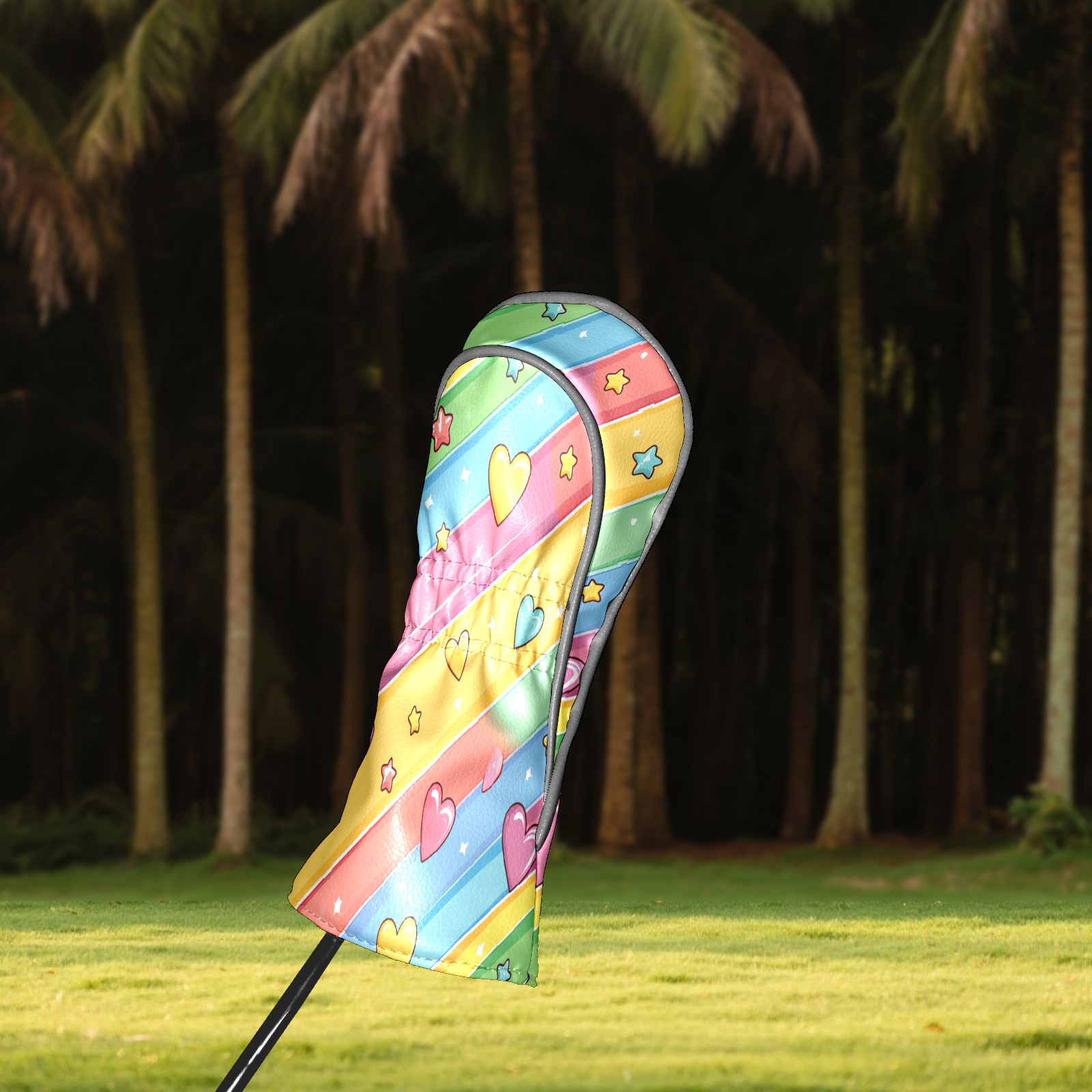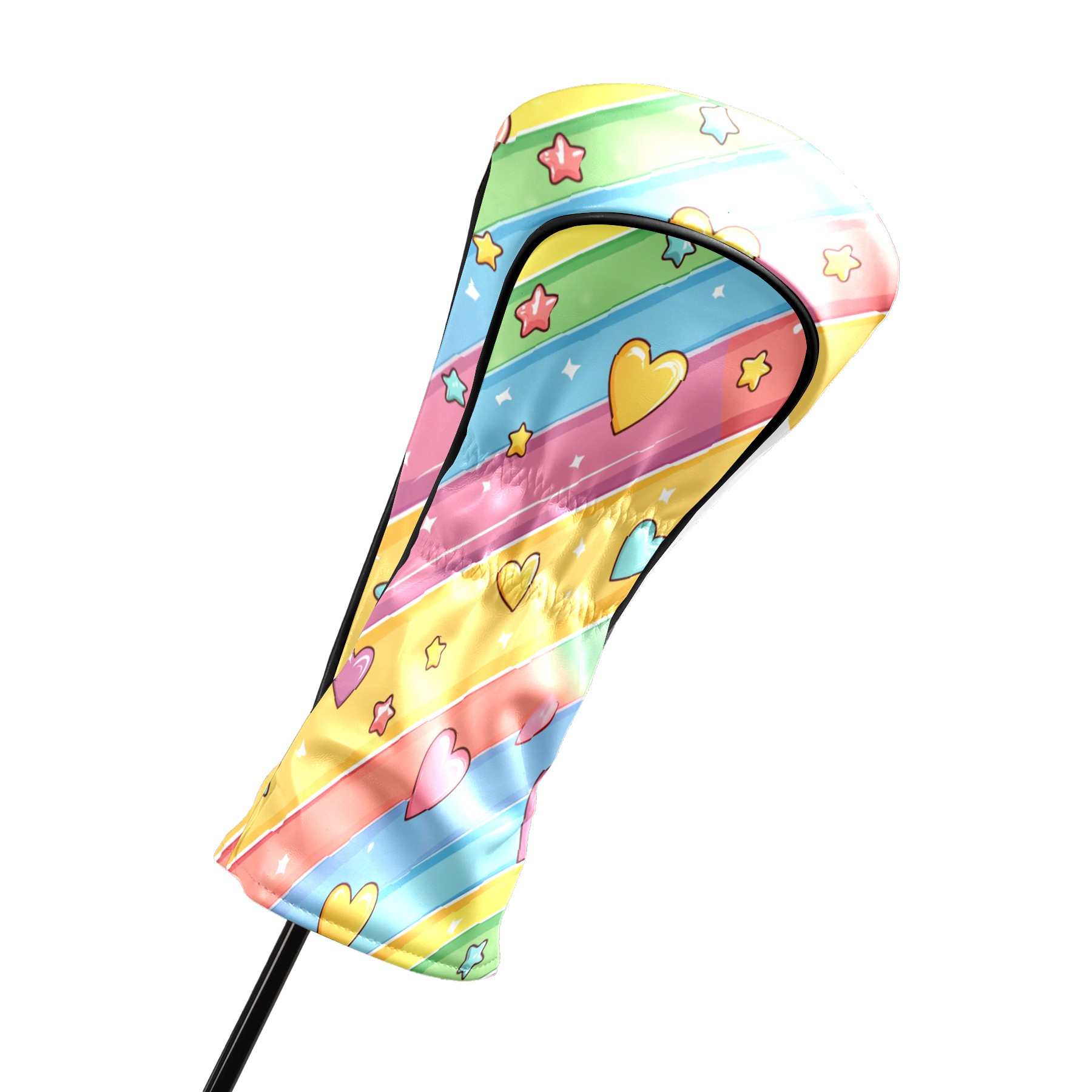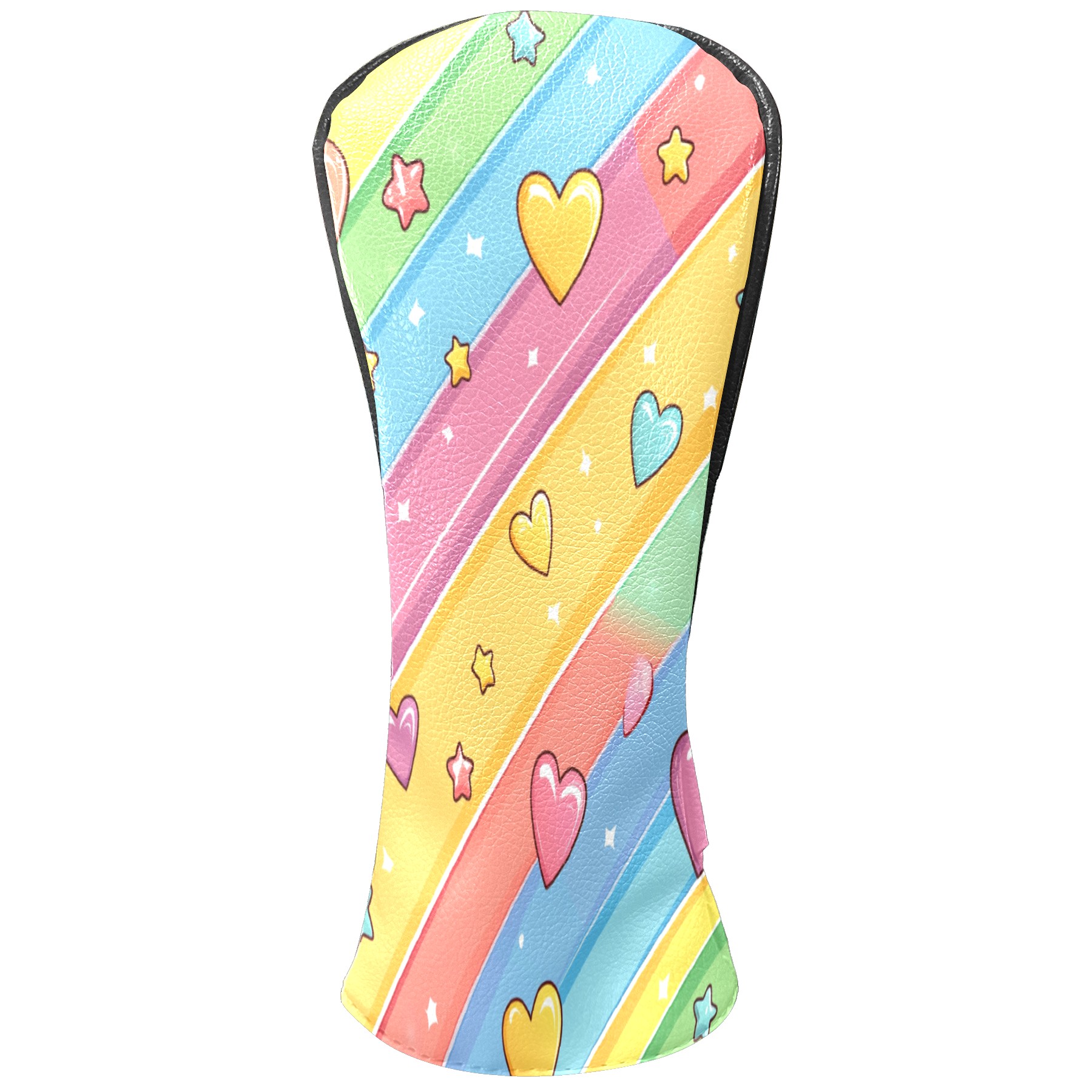 Golf Club Covers PU Leather Waterproof,Golf Club Head Covers for Fairway Woods and Hybrids Rainbow Stripes Unisex Suitable for Most Brands