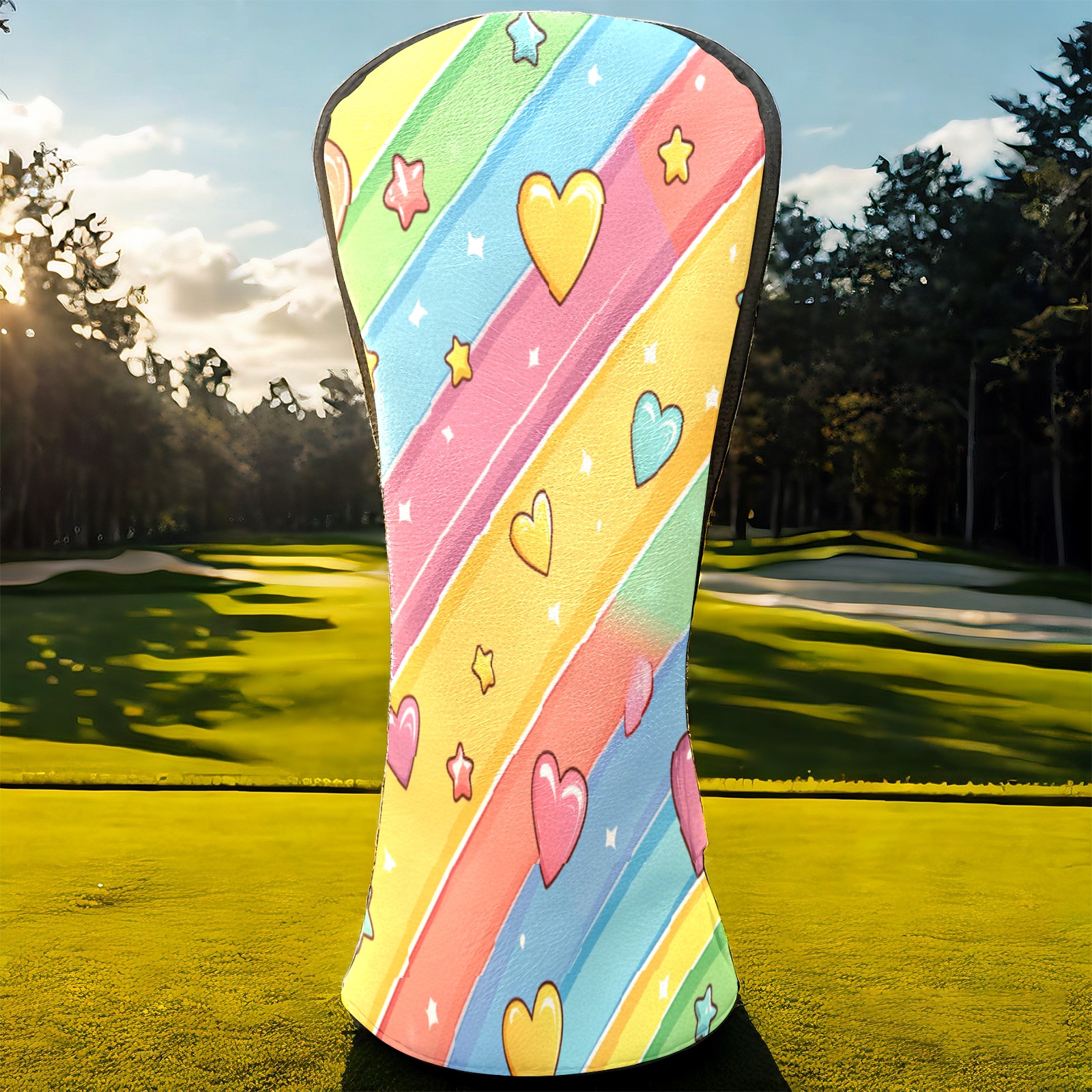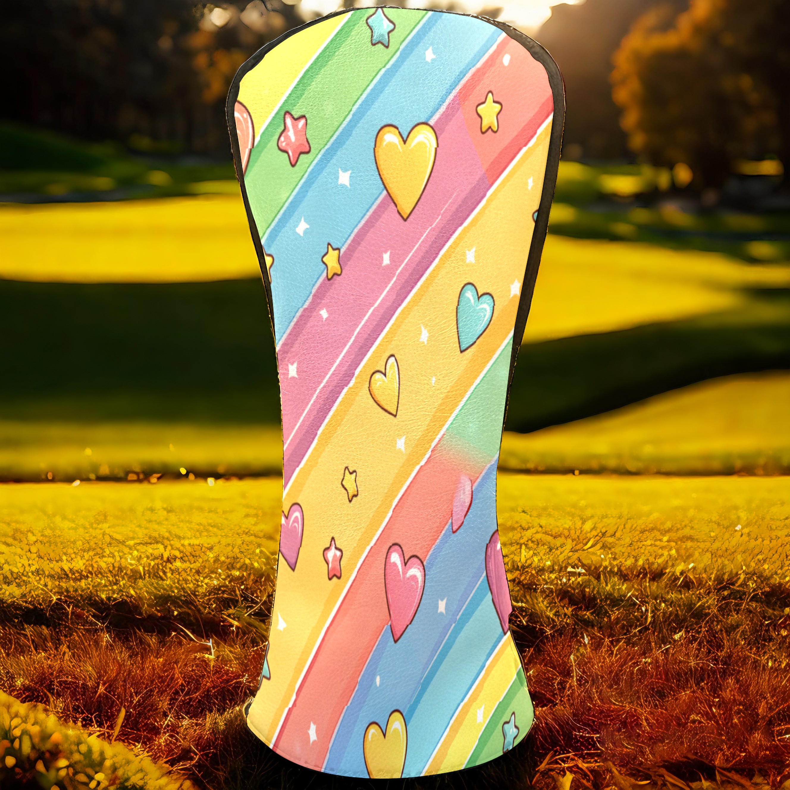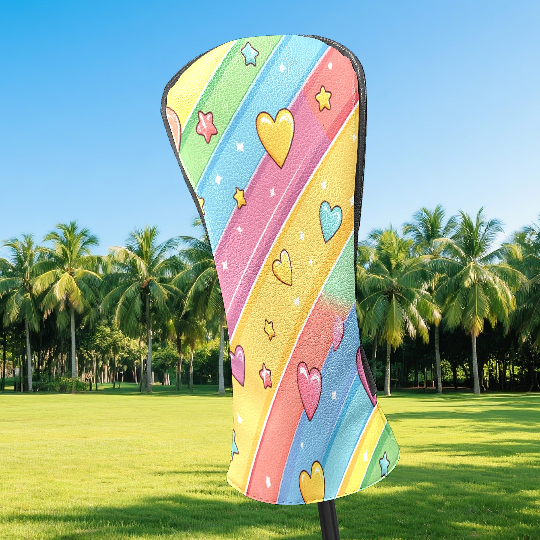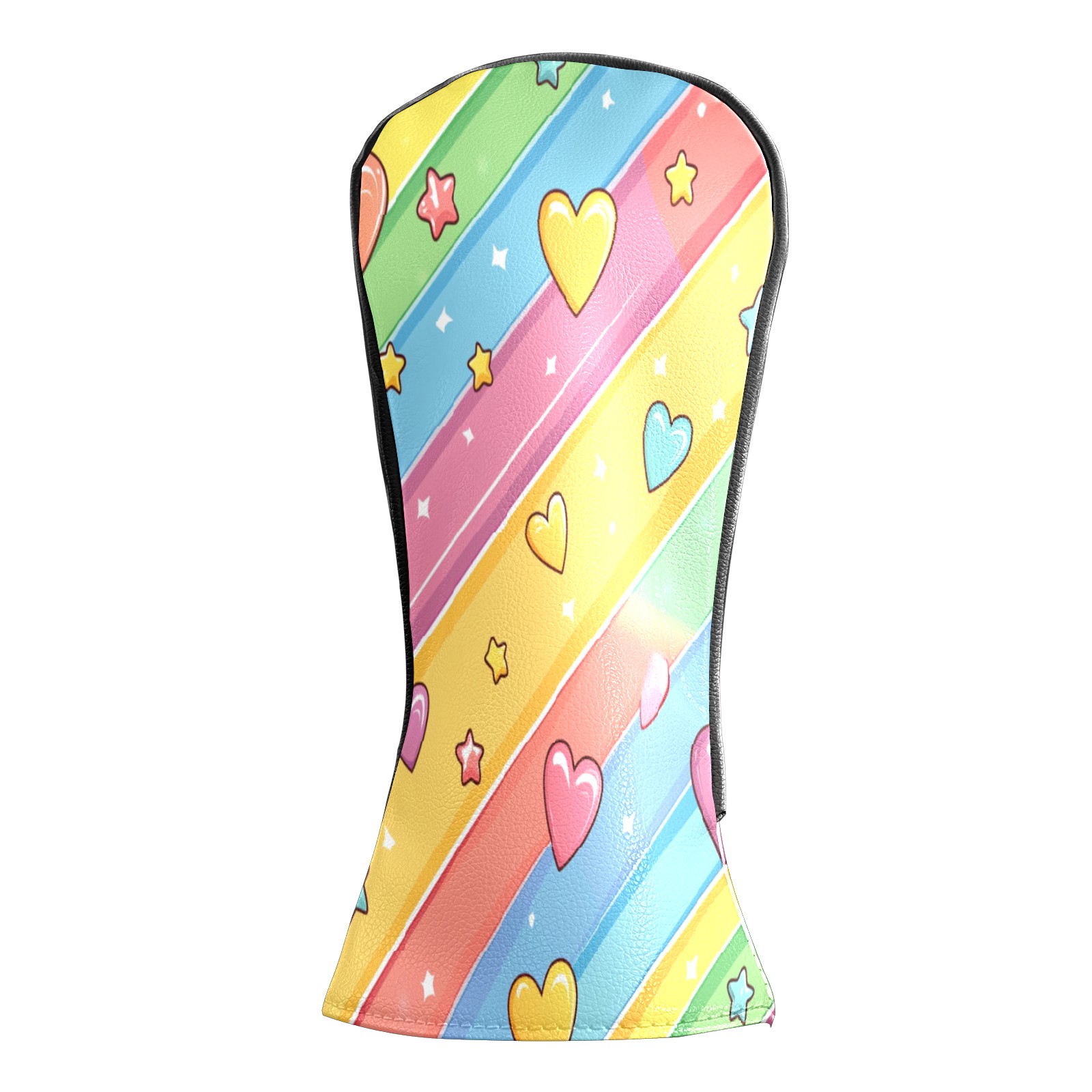 Golf Club Covers PU Leather Waterproof,Golf Club Head Covers for Fairway Woods and Hybrids Rainbow Stripes Unisex Suitable for Most Brands
