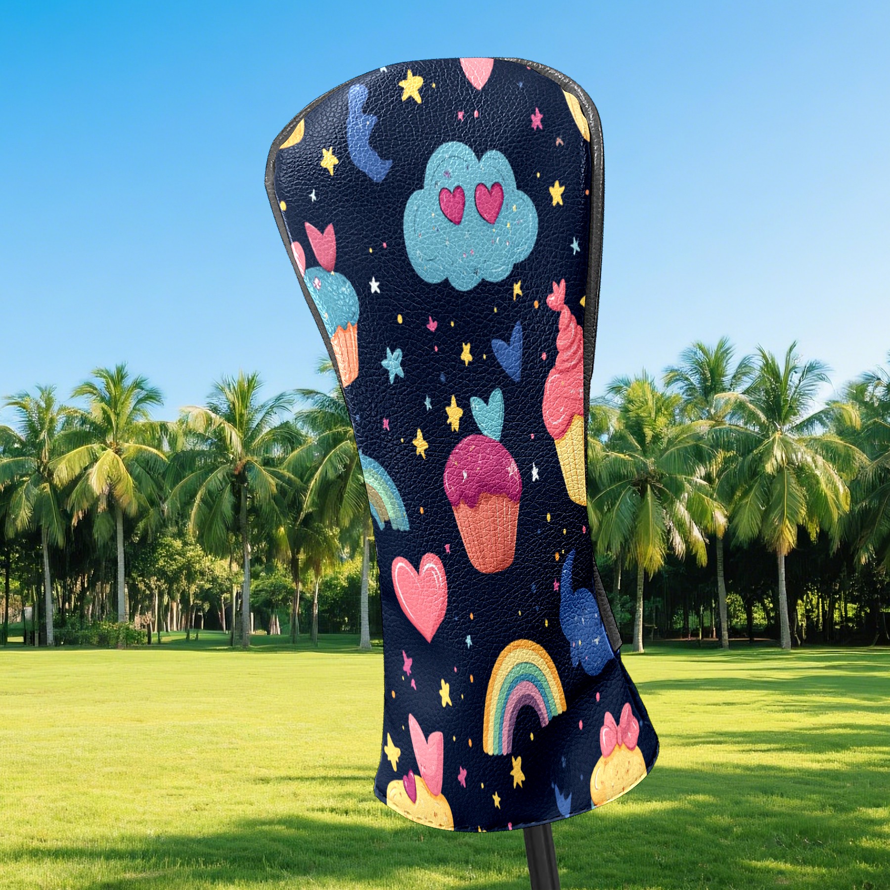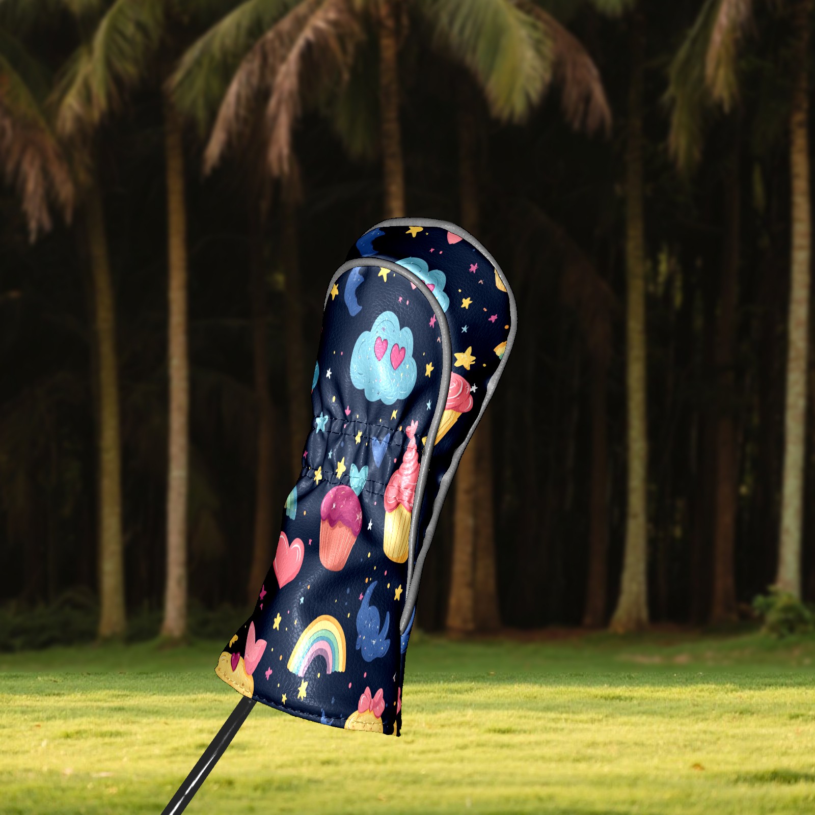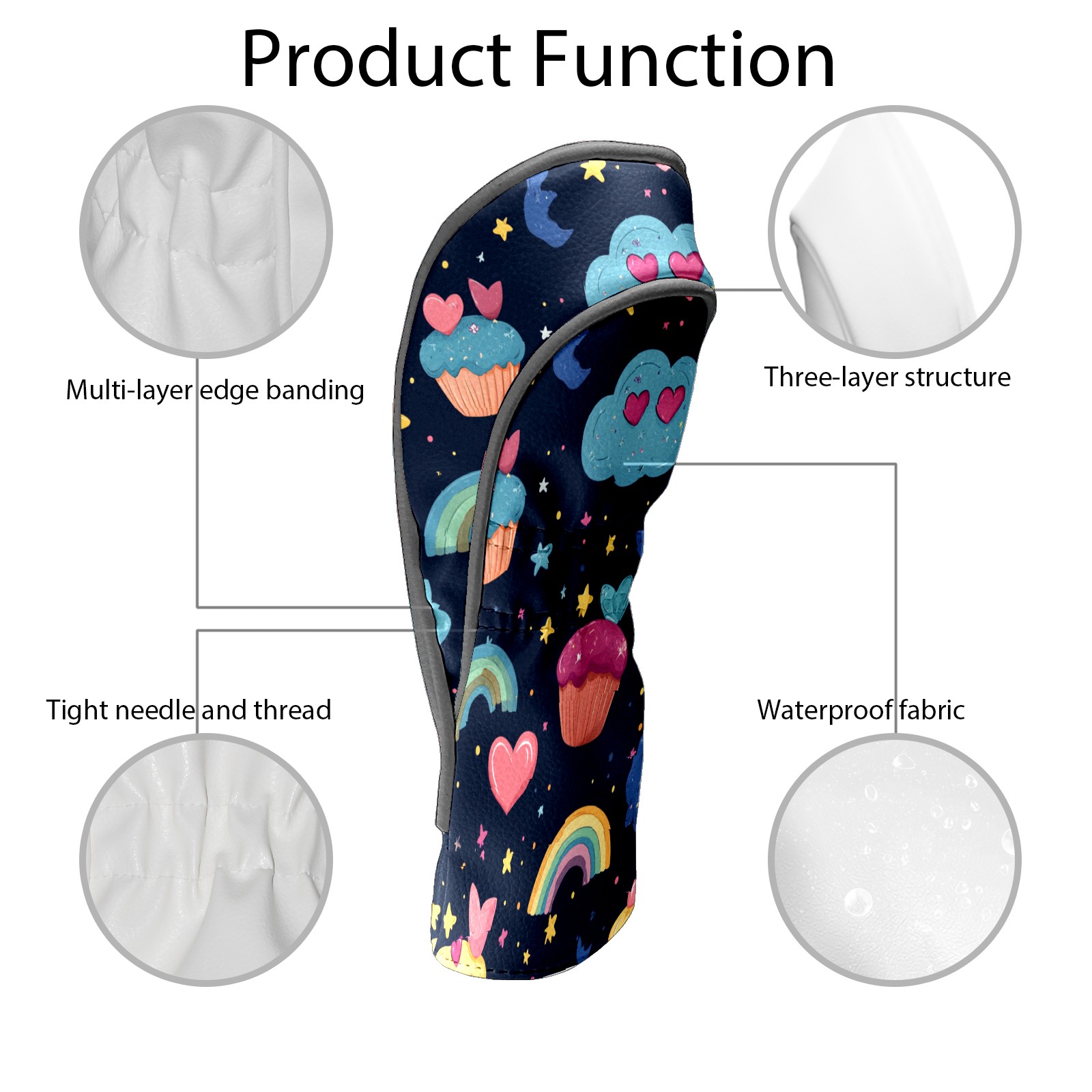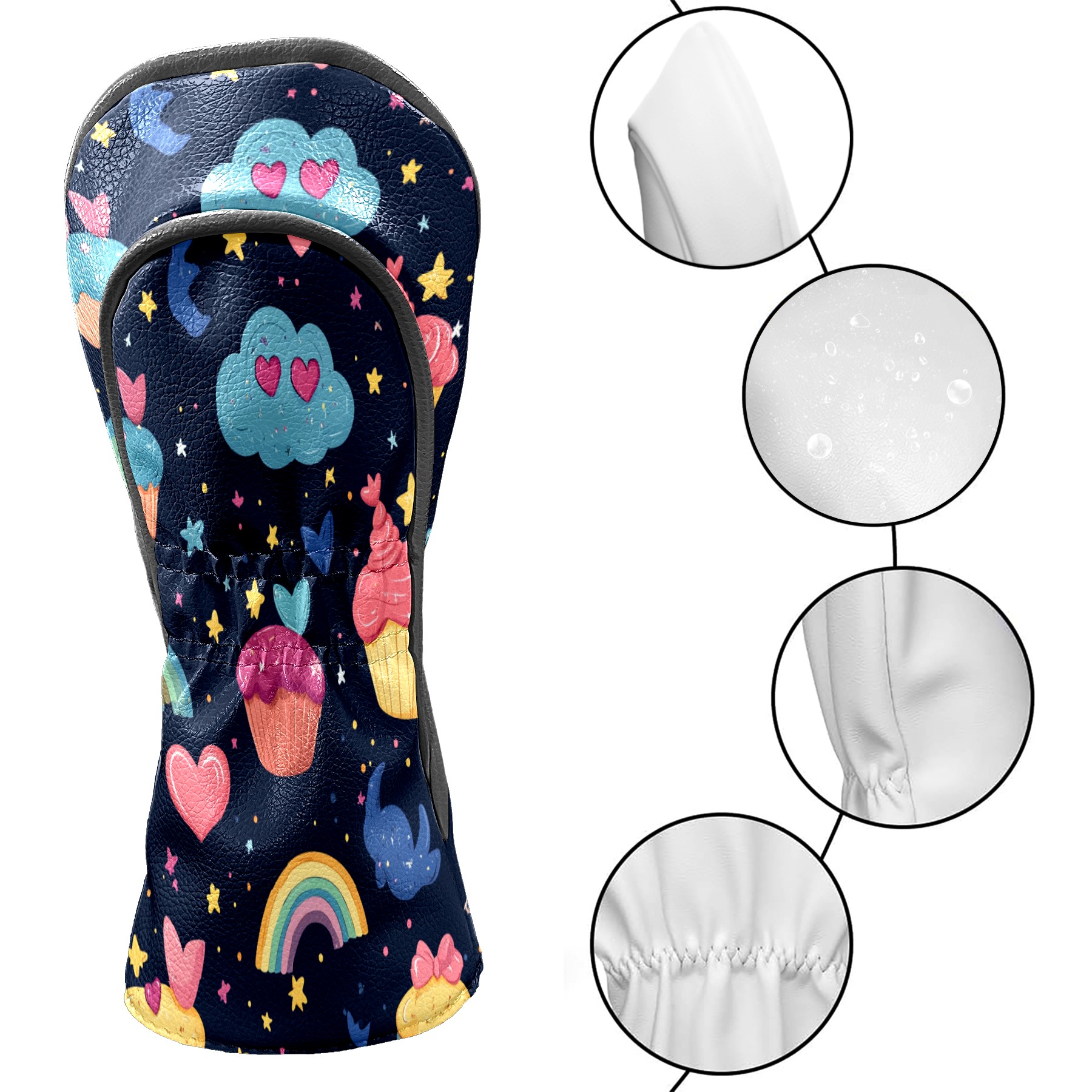 Golf Club Covers PU Leather Waterproof,Golf Club Head Covers for Fairway Woods and Hybrids Rainbow Cake Unisex Suitable for Most Brands