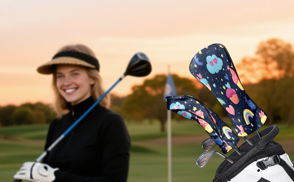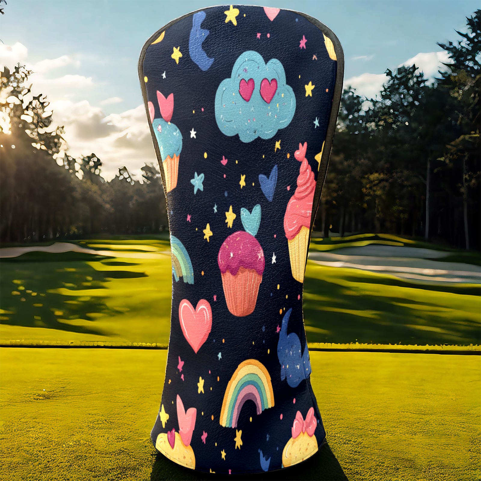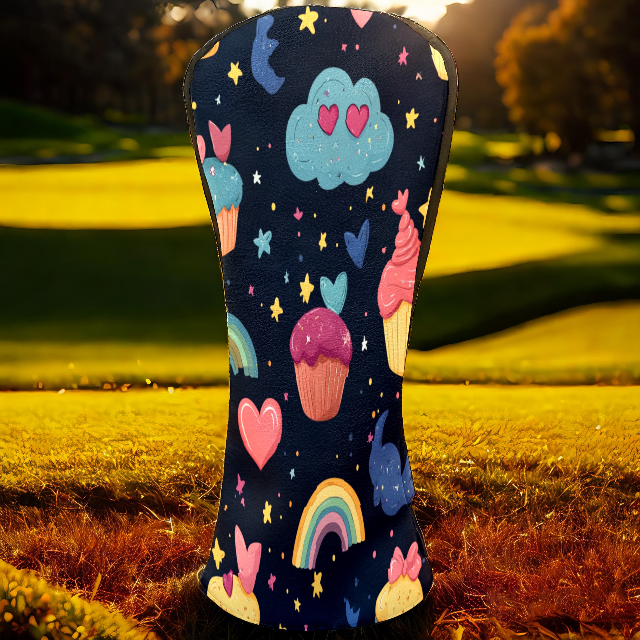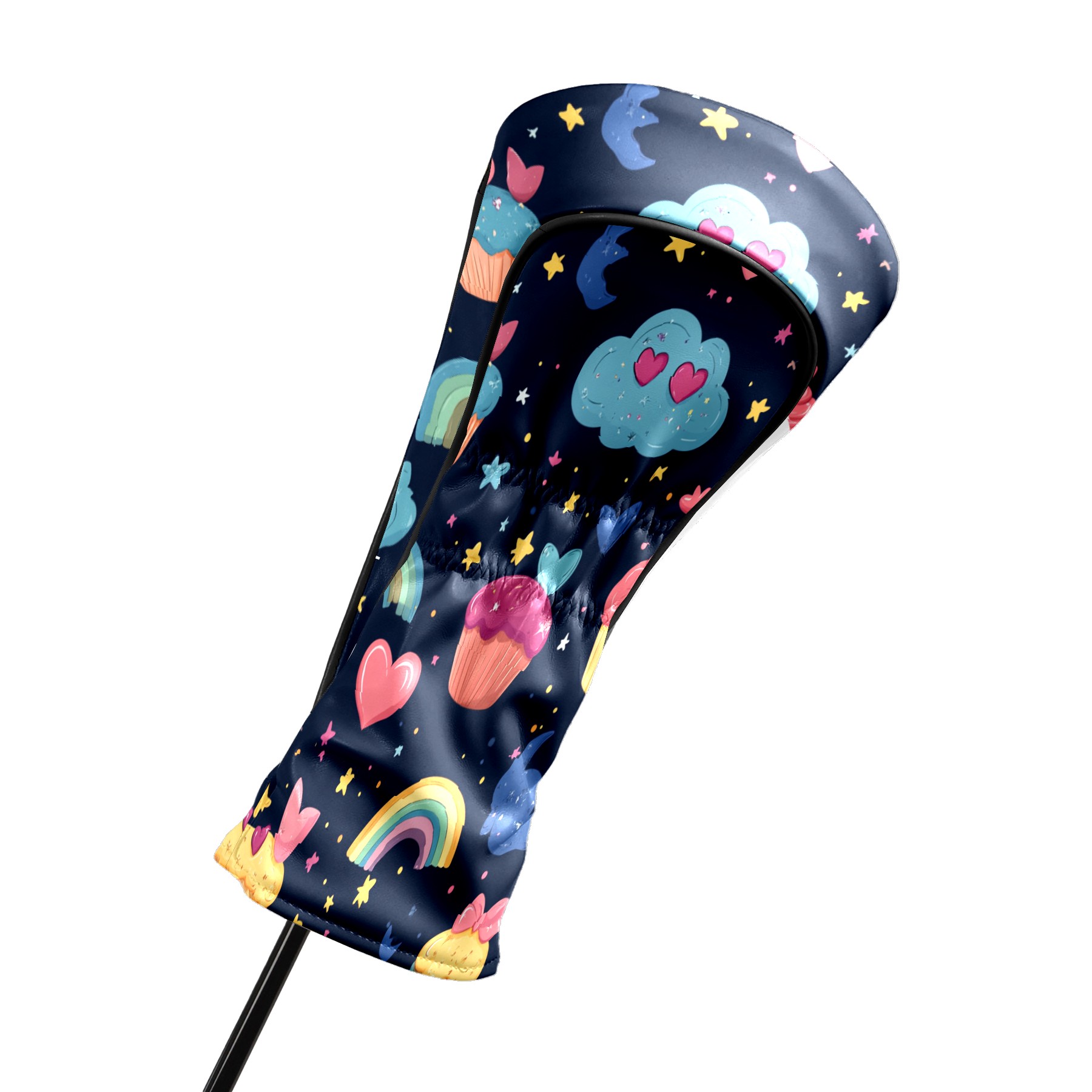 Golf Club Covers PU Leather Waterproof,Golf Club Head Covers for Fairway Woods and Hybrids Rainbow Cake Unisex Suitable for Most Brands