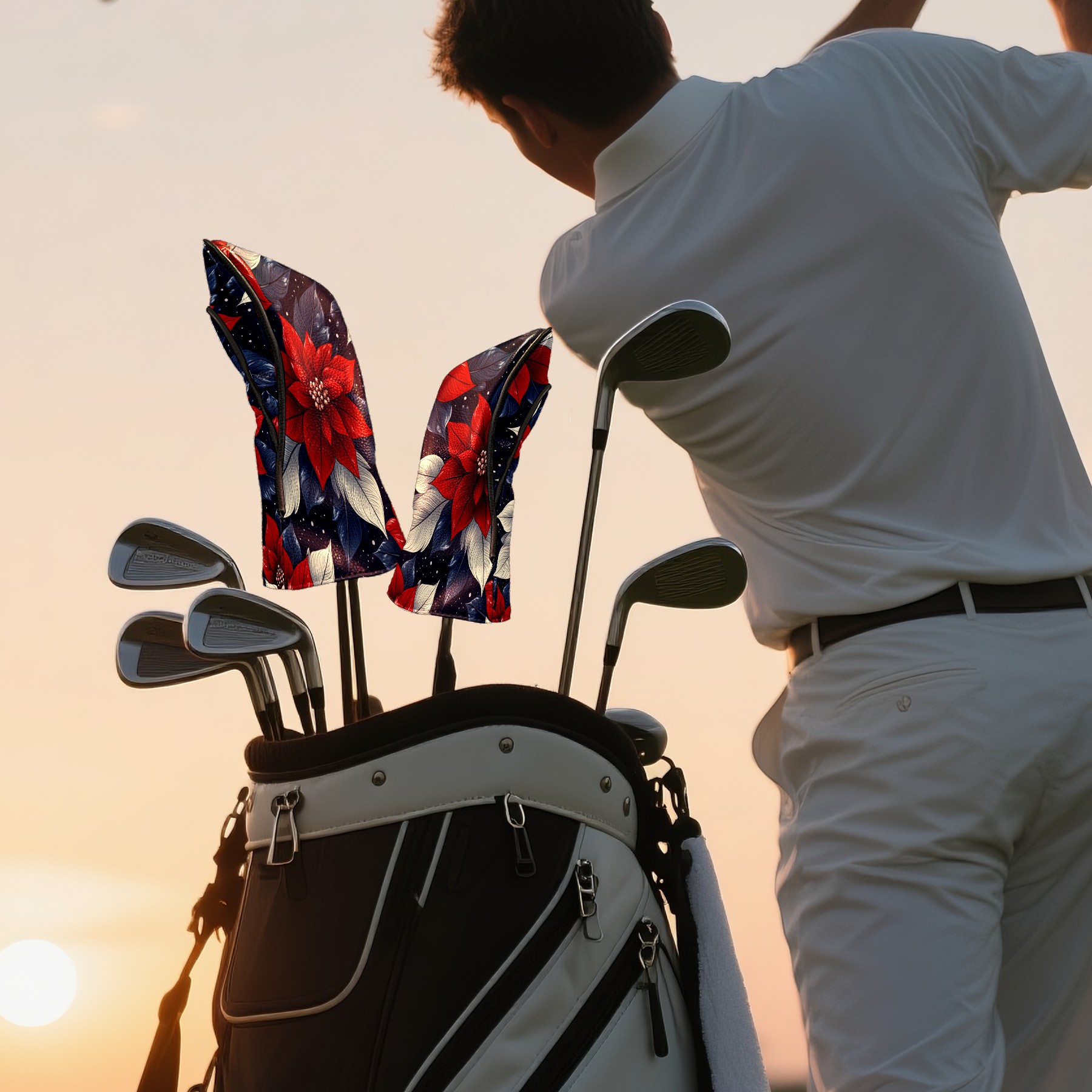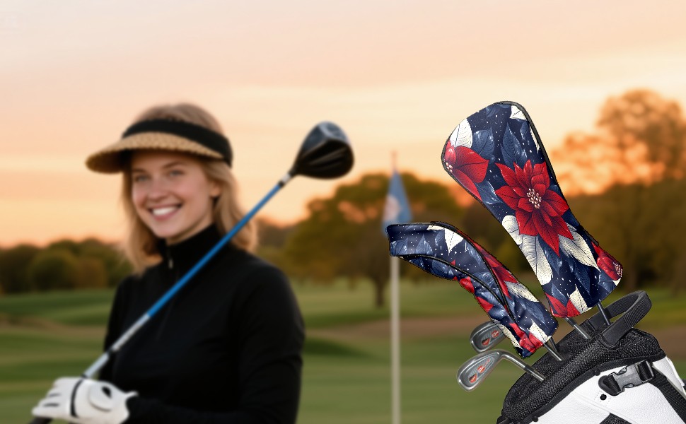 Golf Club Covers PU Leather Waterproof,Golf Club Head Covers for Fairway Woods and Hybrids Amaryllis Unisex Suitable for Most Brands