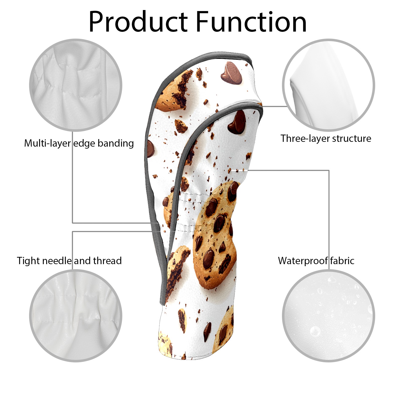 Golf Club Covers PU Leather Waterproof,Golf Club Head Covers for Fairway Woods and Hybrids Cookie Pattern Unisex Suitable for Most Brands