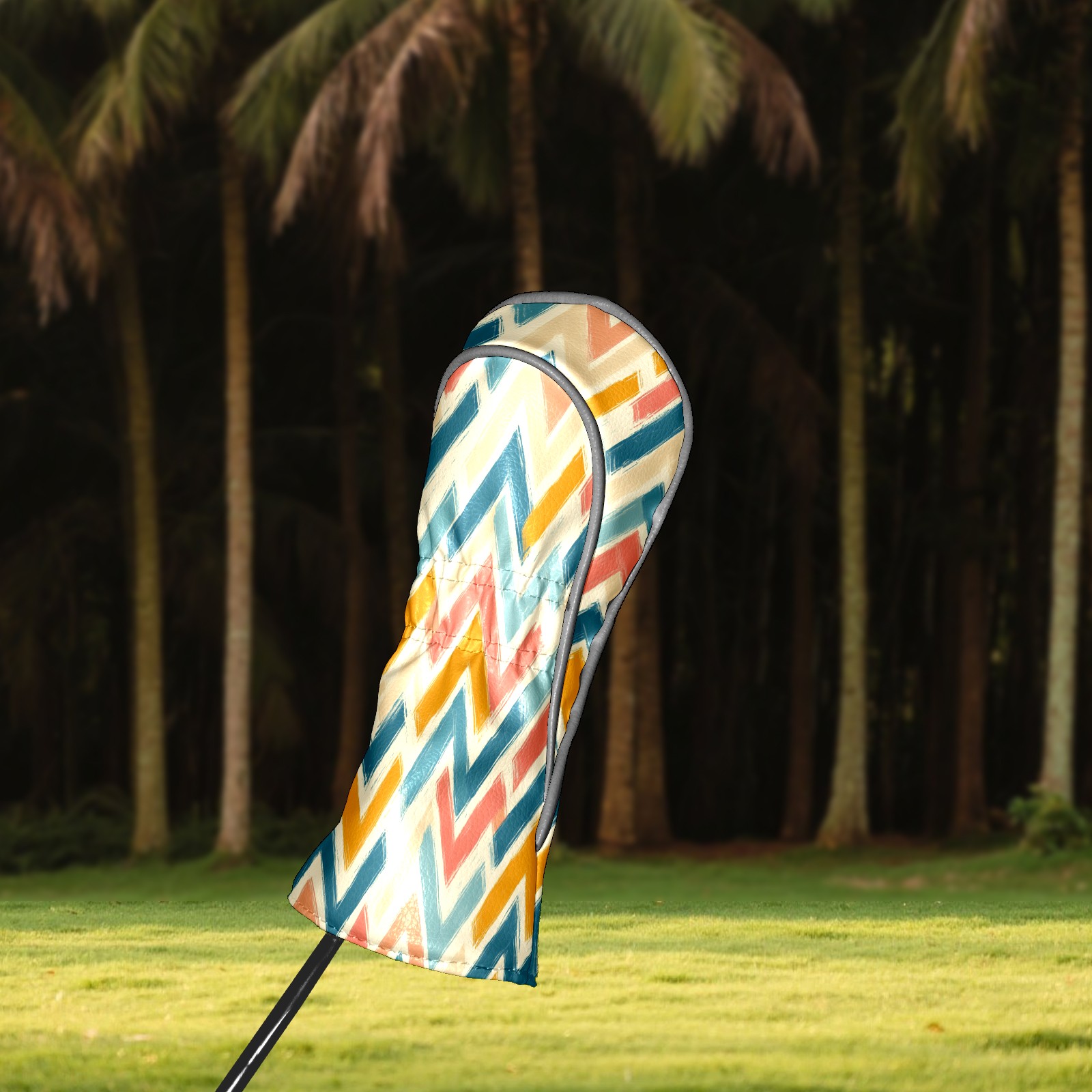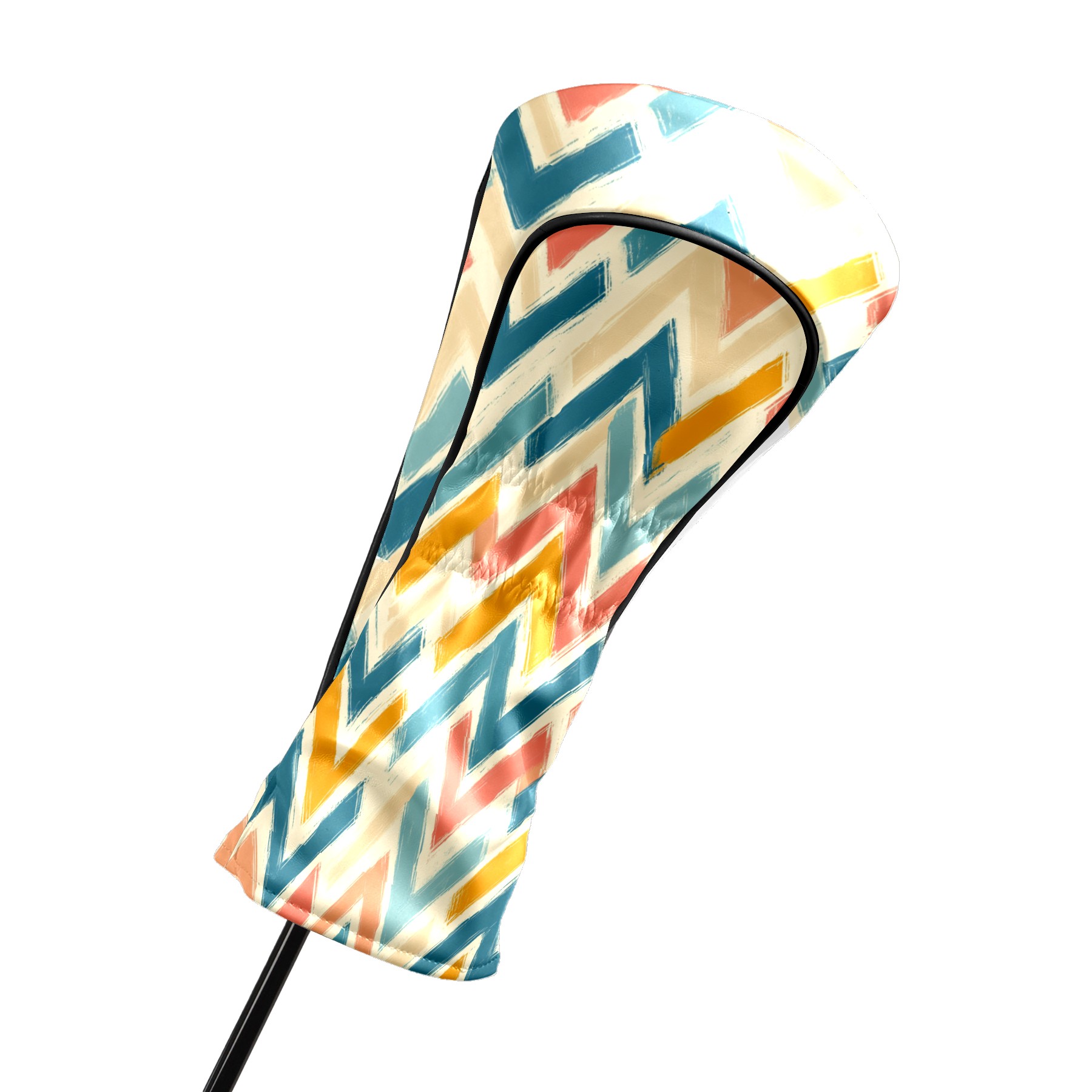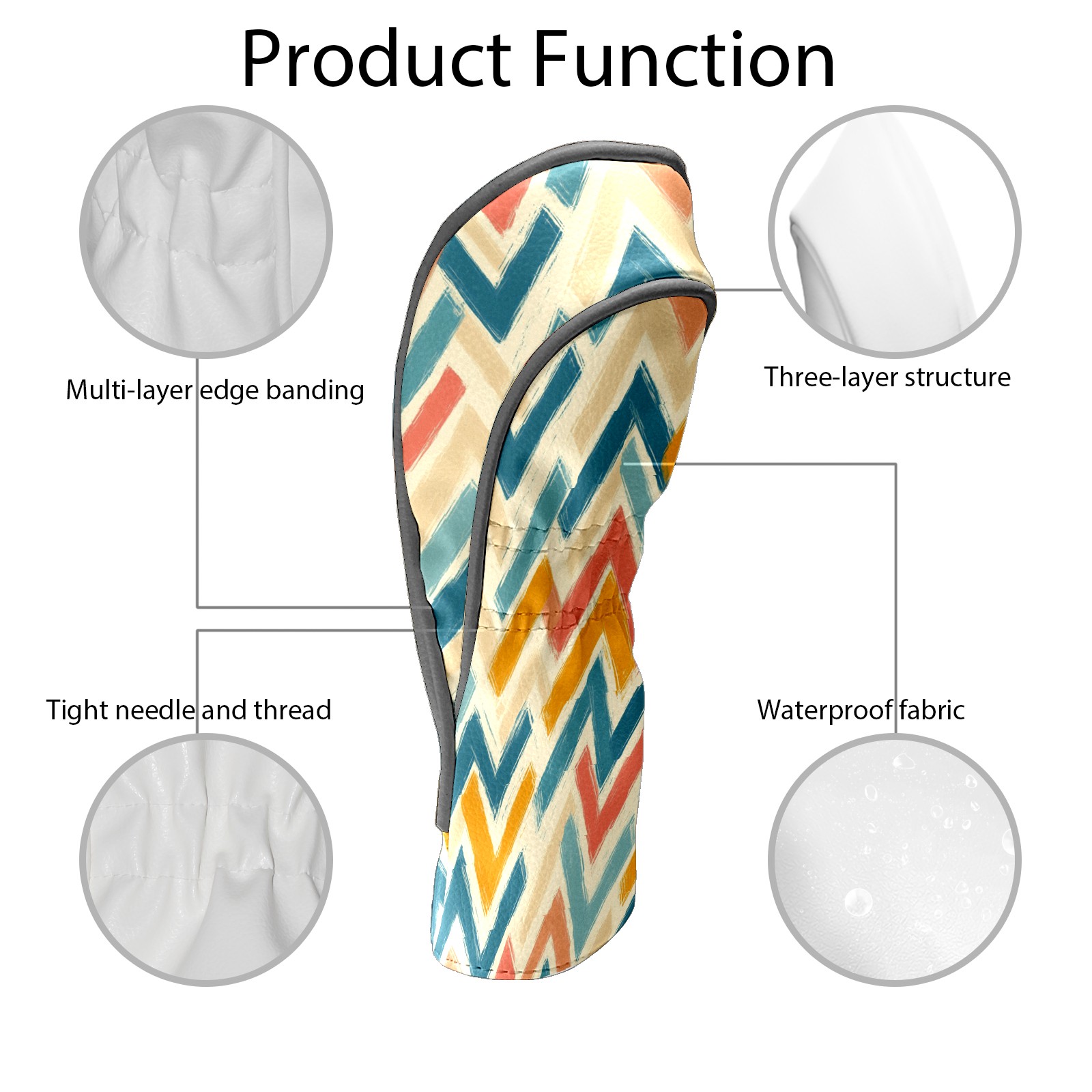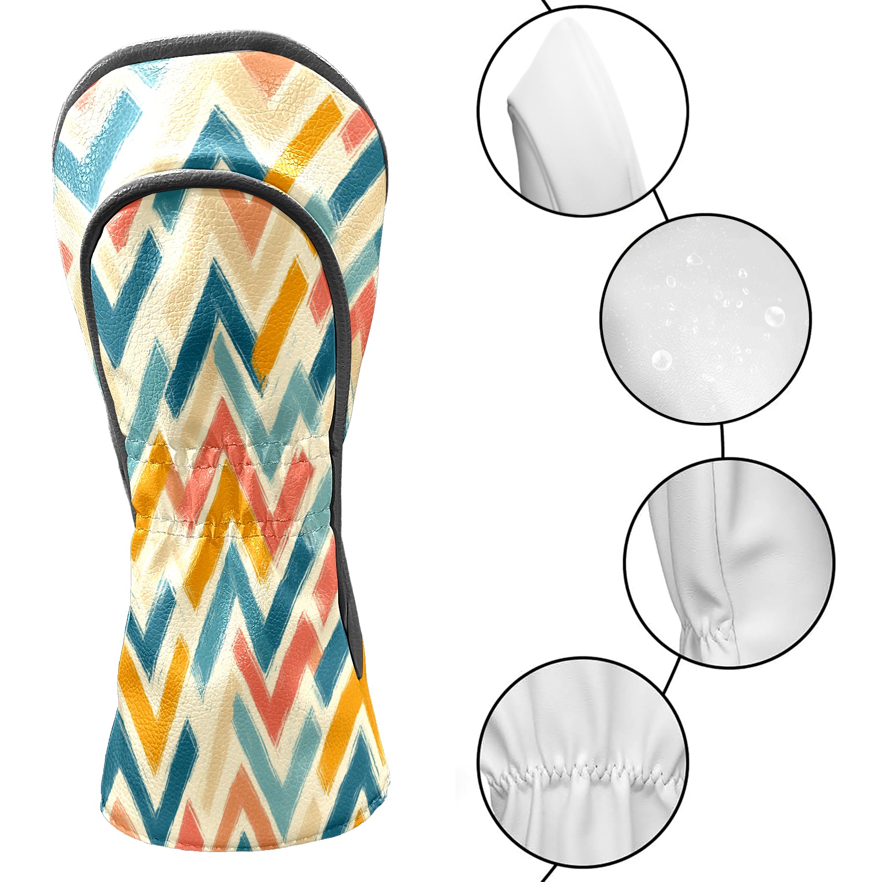 Golf Club Covers PU Leather Waterproof,Golf Club Head Covers for Fairway Woods and Hybrids Colored Lines Unisex Suitable for Most Brands