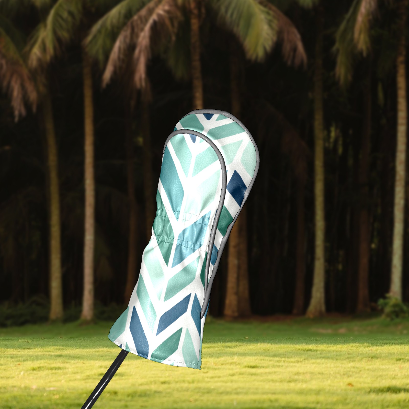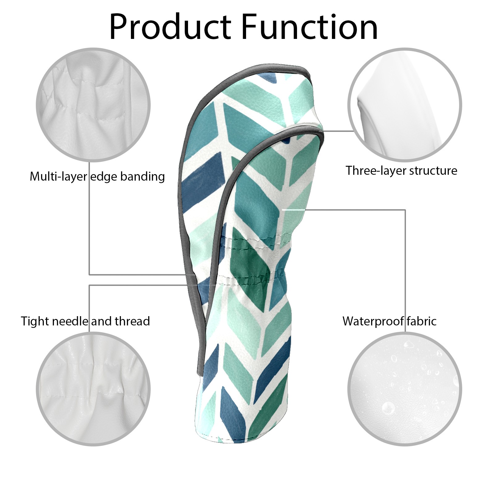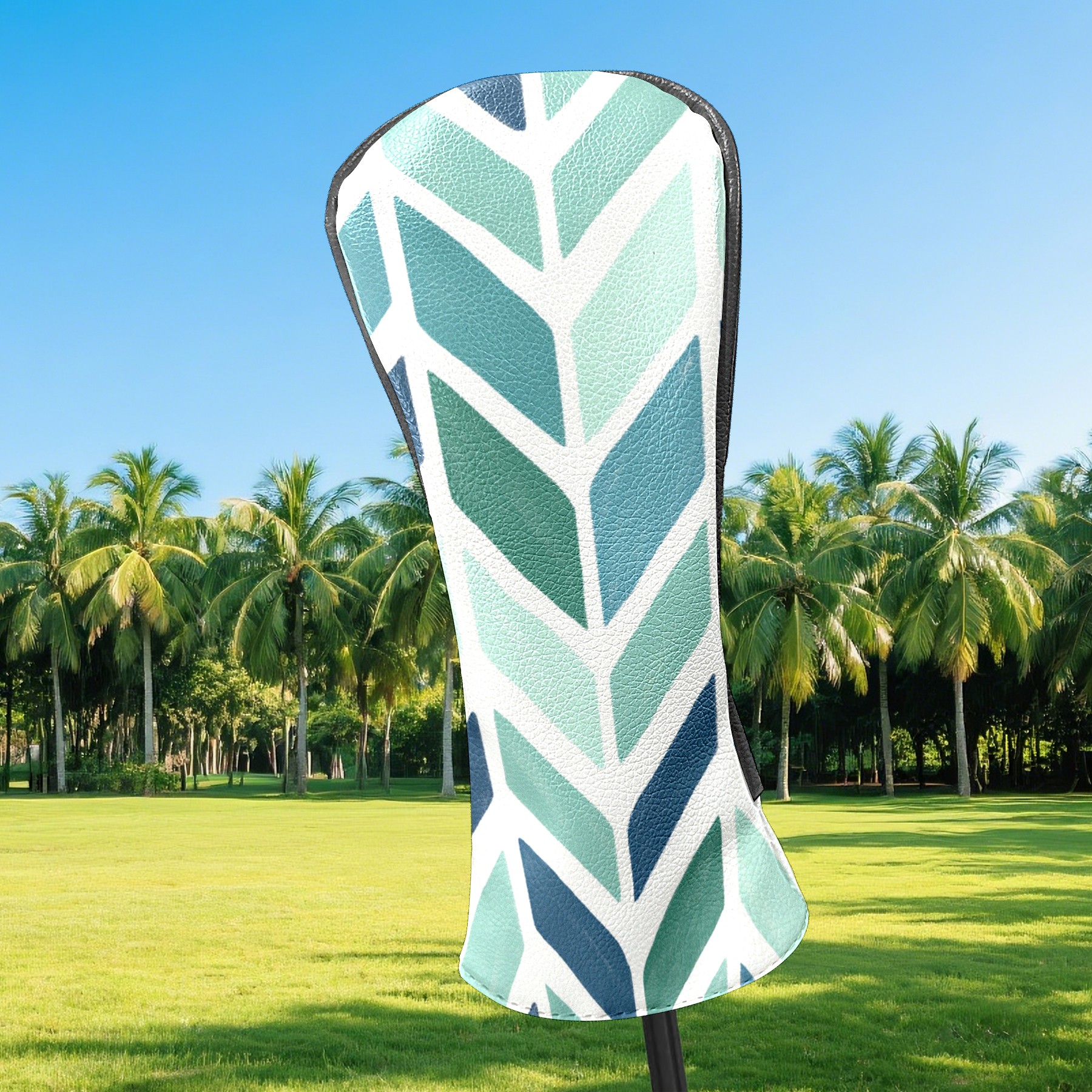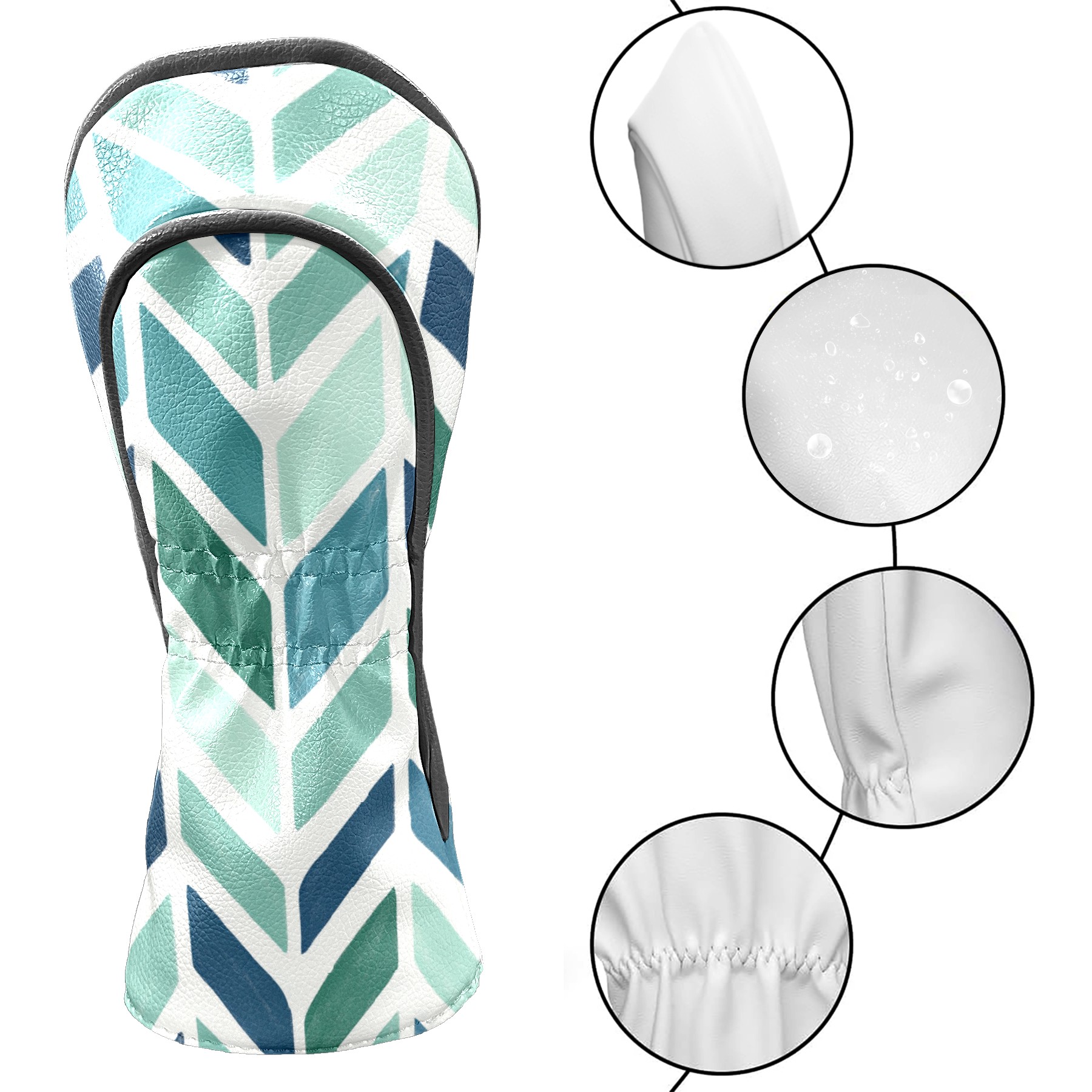 Golf Club Covers PU Leather Waterproof,Golf Club Head Covers for Fairway Woods and Hybrids Blue Herringbone Pattern Unisex Suitable for Most Brands