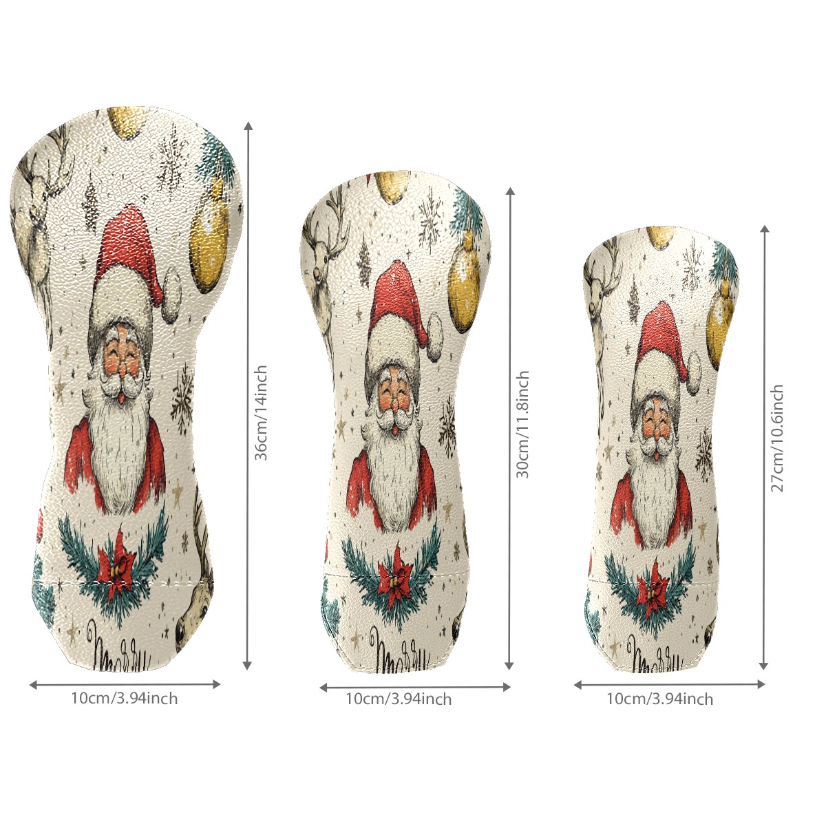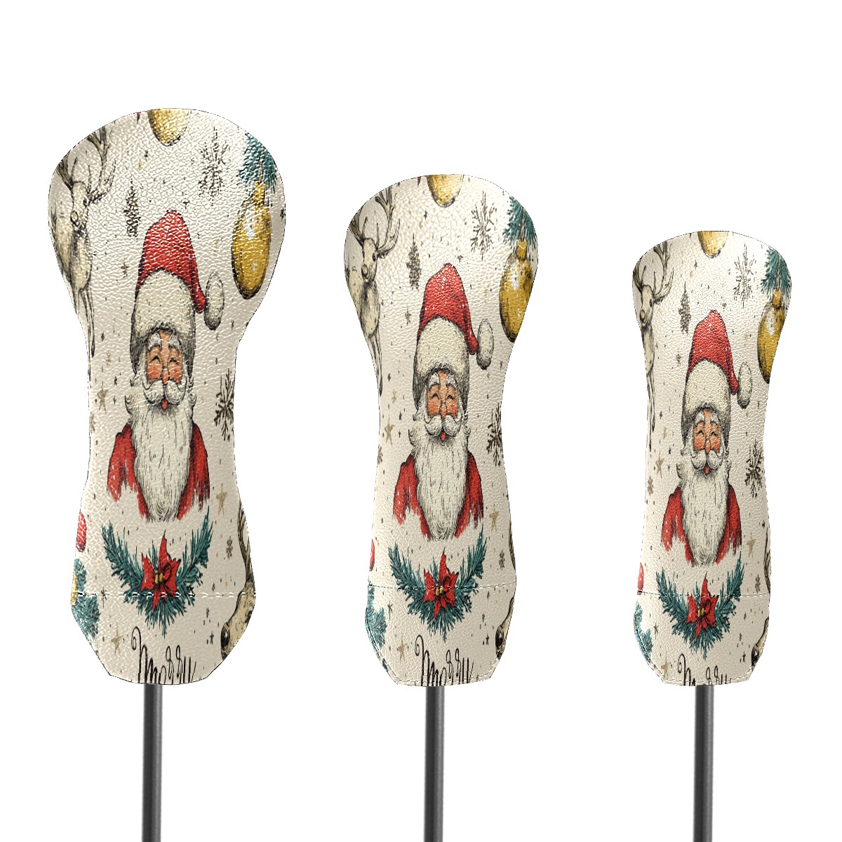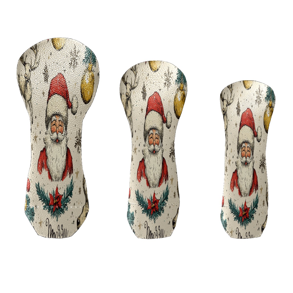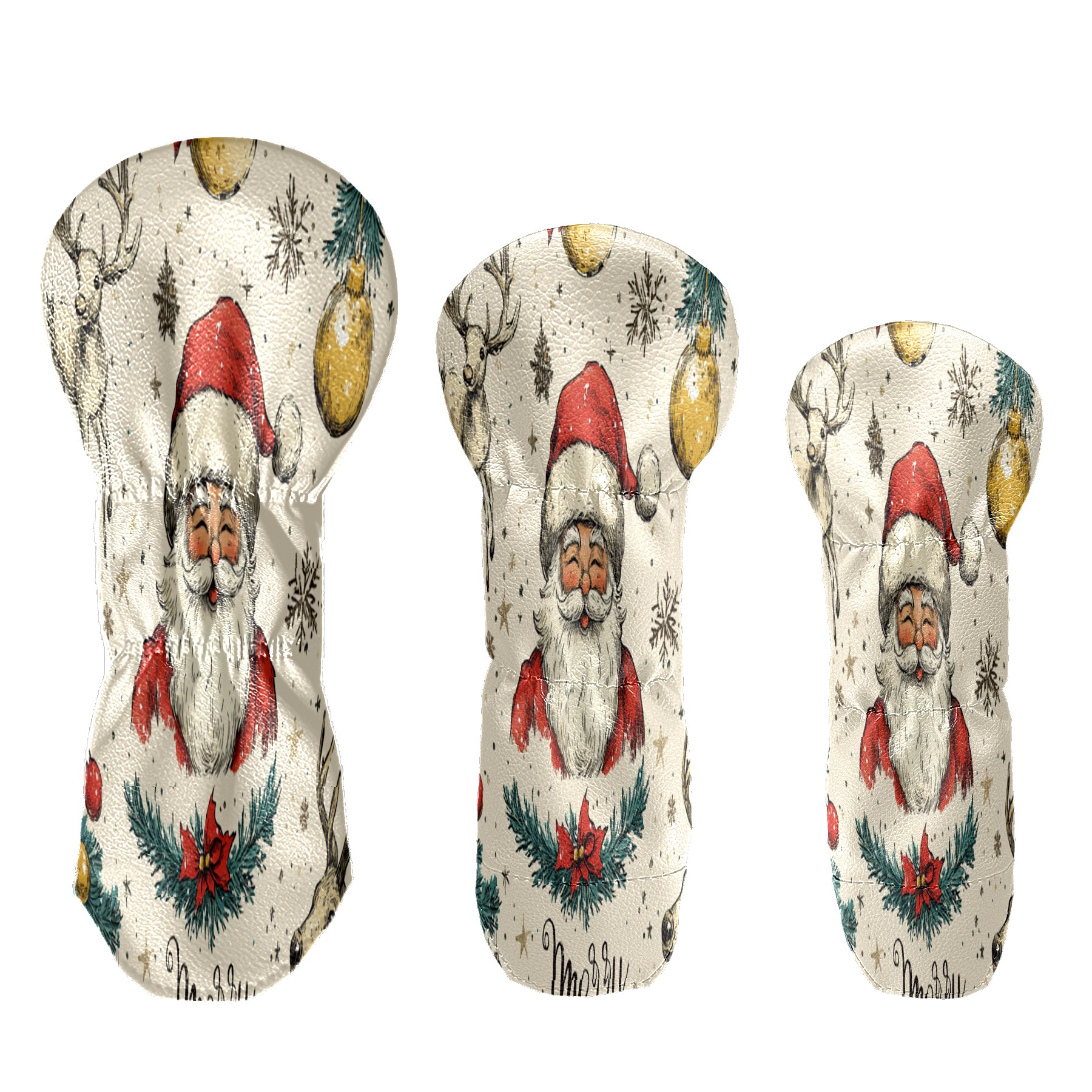 Golf Club Cover, Velvet Lining, High-Quality Leather, Suitable for the First Wood, Fairway Wood and Hybrid Club Head Cover, Suitable for Men and Women Golf Enthusiasts Santa Claus Reindeer