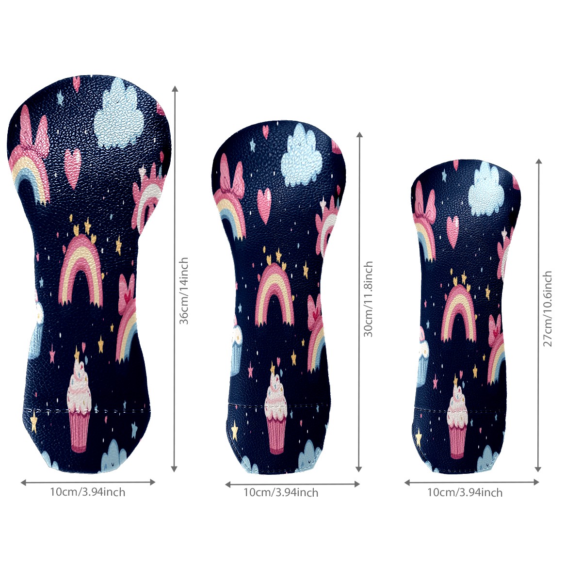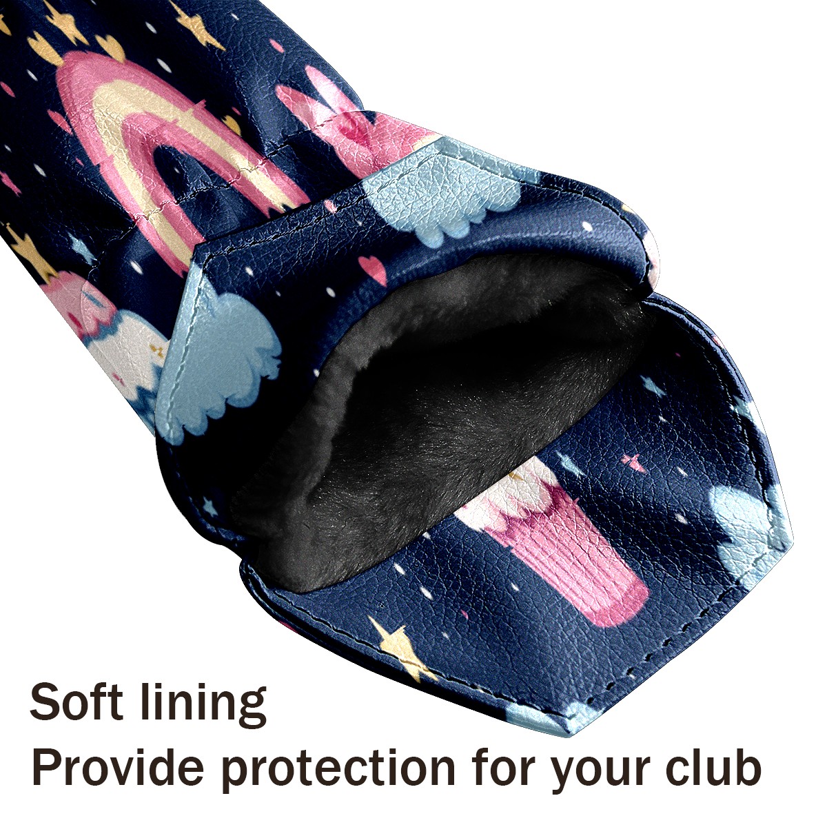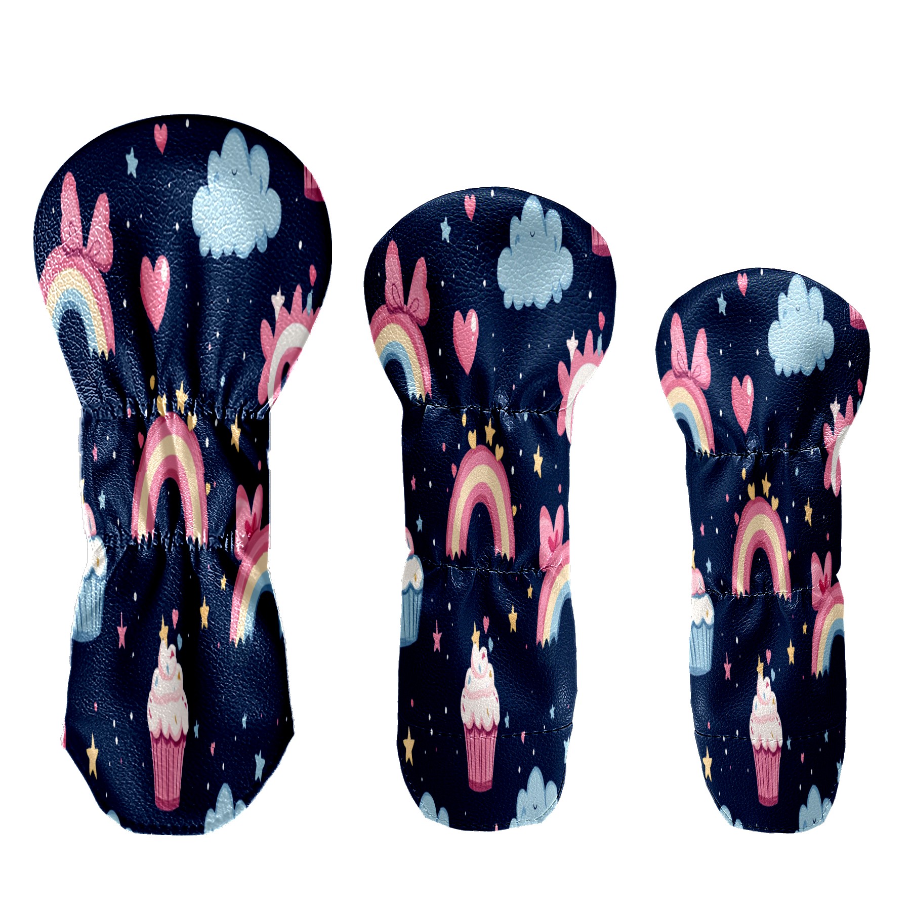Golf Club Cover, Velvet Lining, High-Quality Leather, Suitable for the First Wood, Fairway Wood and Hybrid Club Head Cover, Suitable for Men and Women Golf Enthusiasts Rainbow Cake
