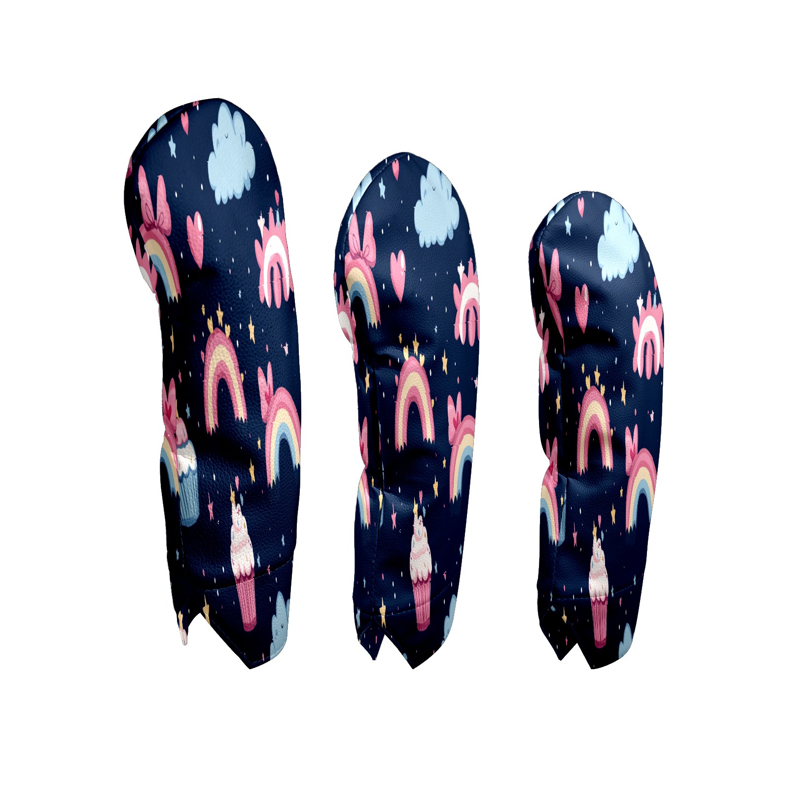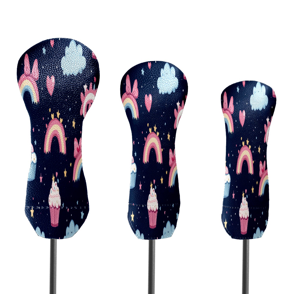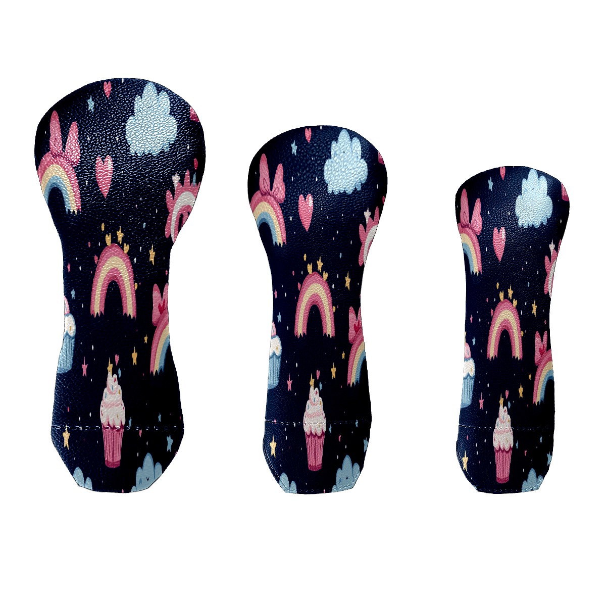Golf Club Cover, Velvet Lining, High-Quality Leather, Suitable for the First Wood, Fairway Wood and Hybrid Club Head Cover, Suitable for Men and Women Golf Enthusiasts Rainbow Cake