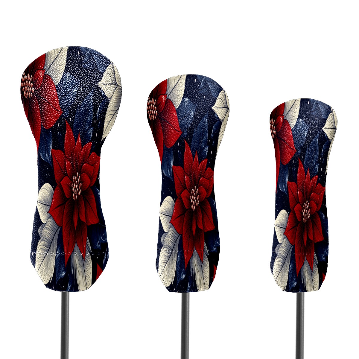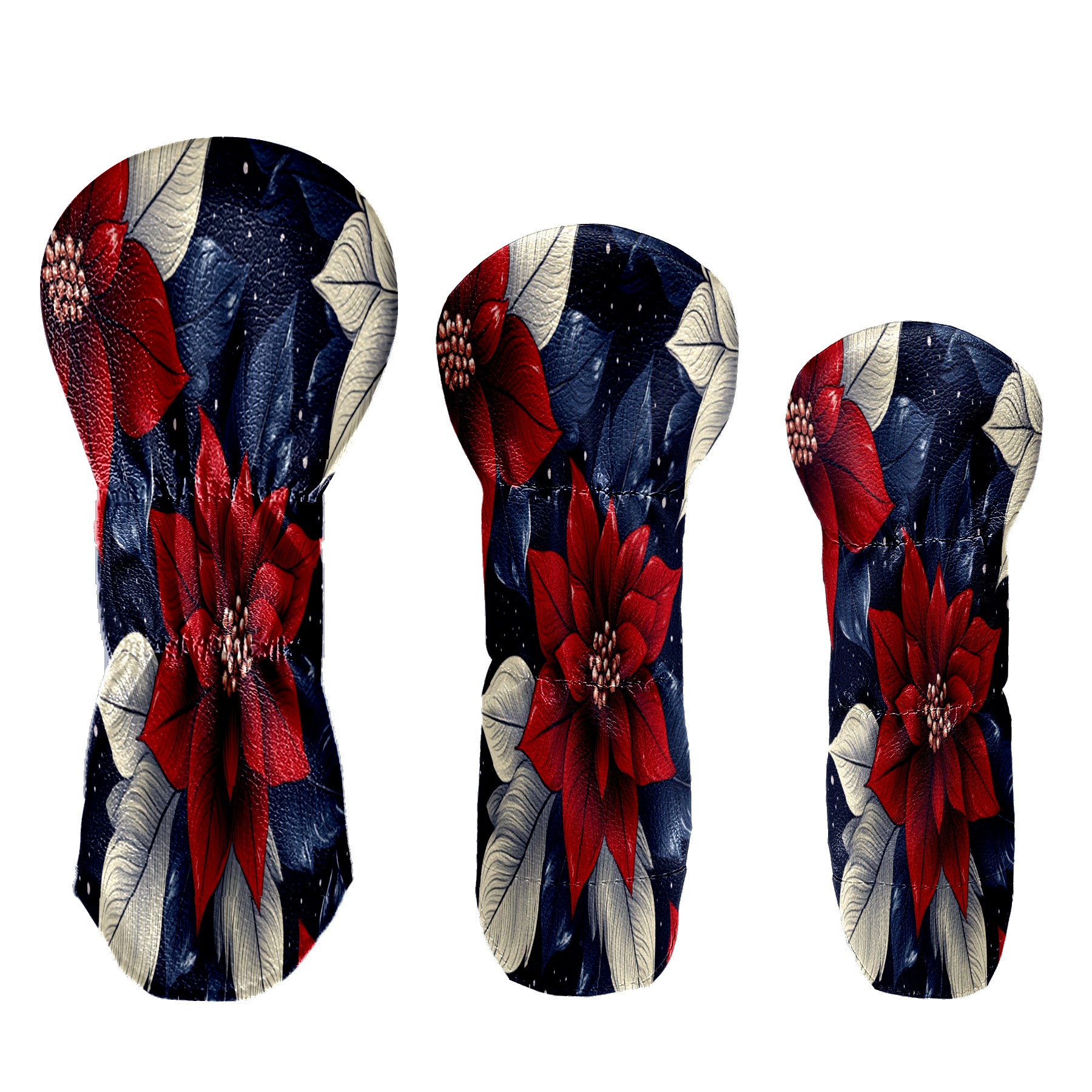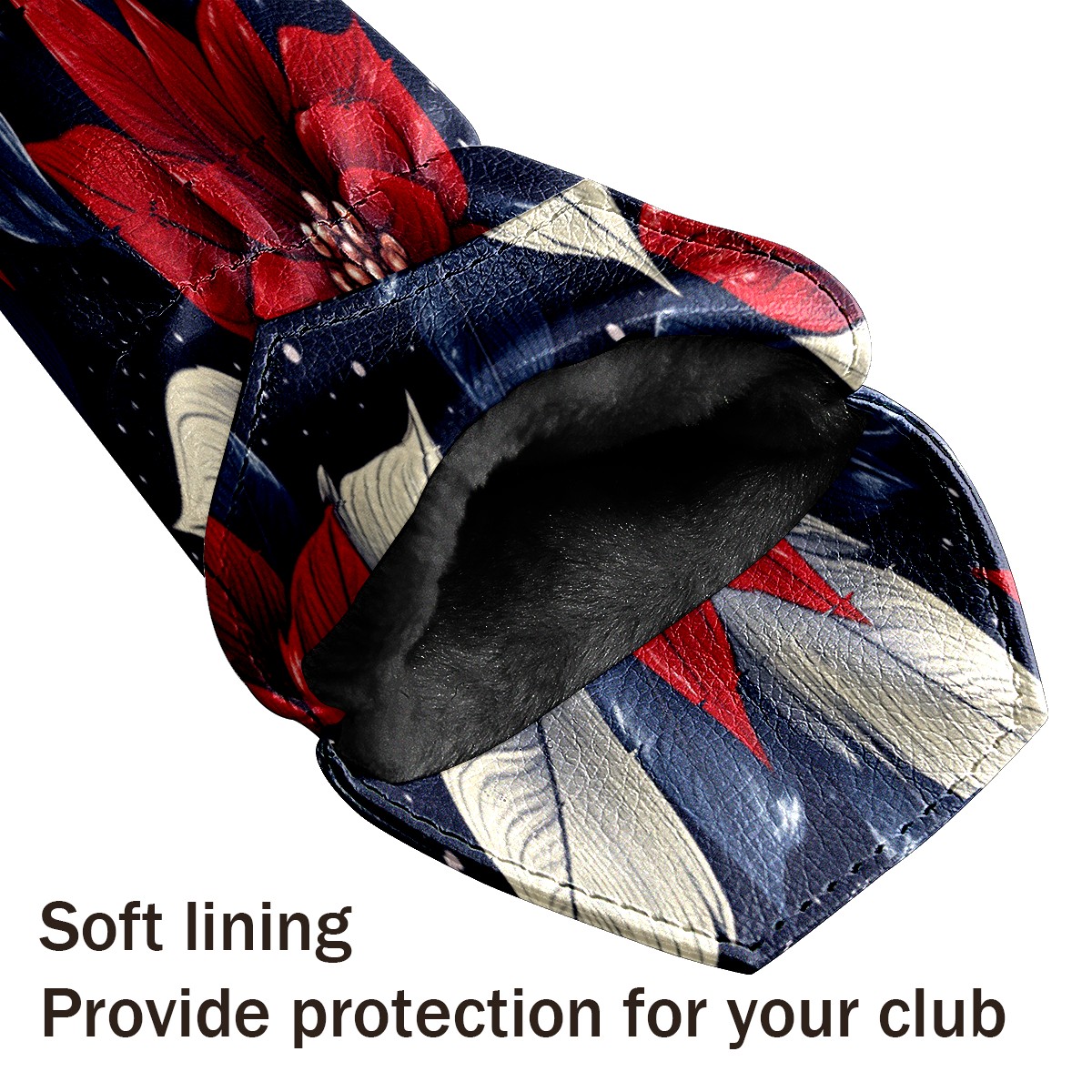 Golf Club Cover, Velvet Lining, High-Quality Leather, Suitable for the First Wood, Fairway Wood and Hybrid Club Head Cover, Suitable for Men and Women Golf Enthusiasts Amaryllis