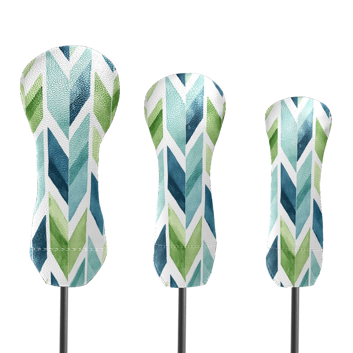 Golf Club Cover, Velvet Lining, High-Quality Leather, Suitable for the First Wood, Fairway Wood and Hybrid Club Head Cover, Suitable for Men and Women Golf Enthusiasts Blue-green Lines