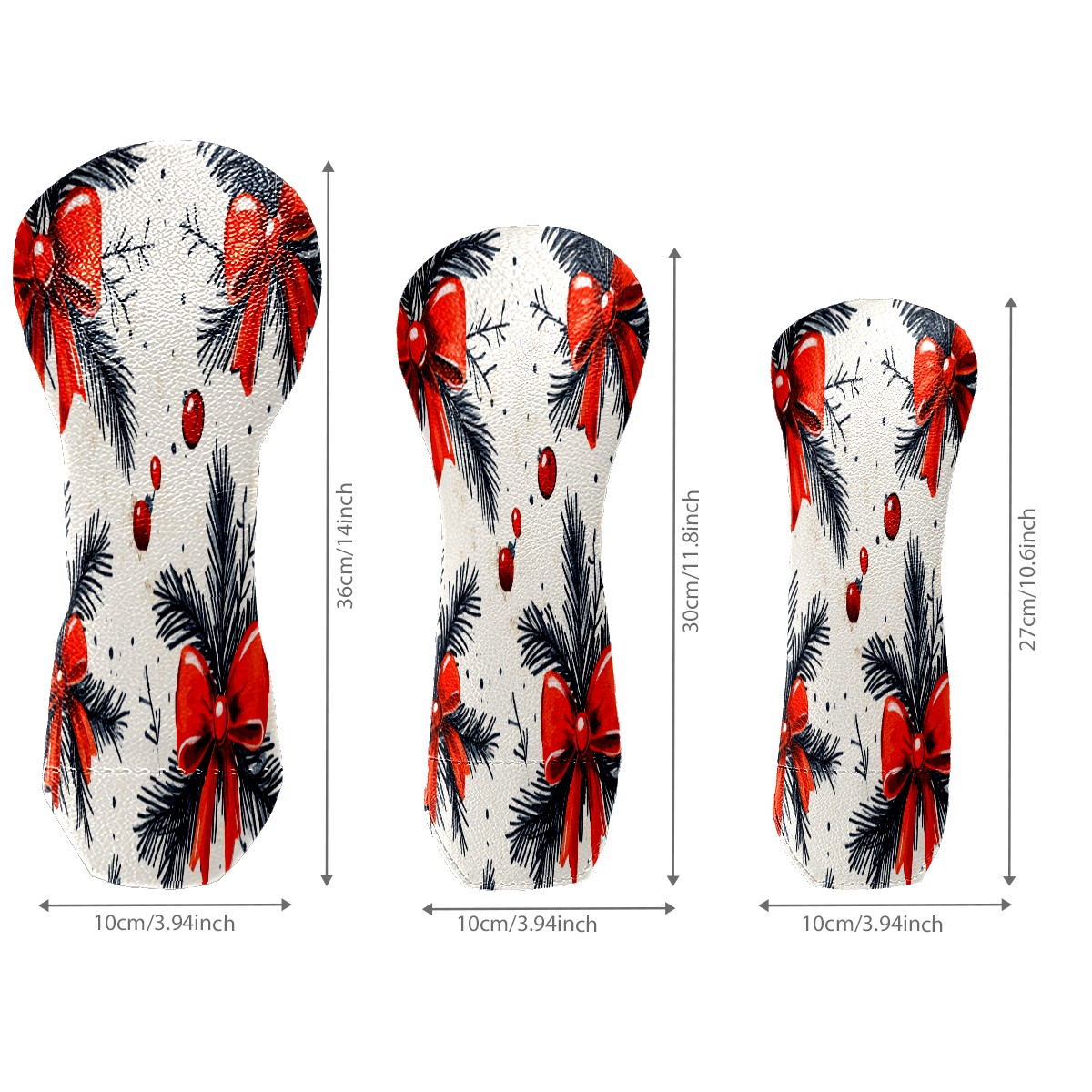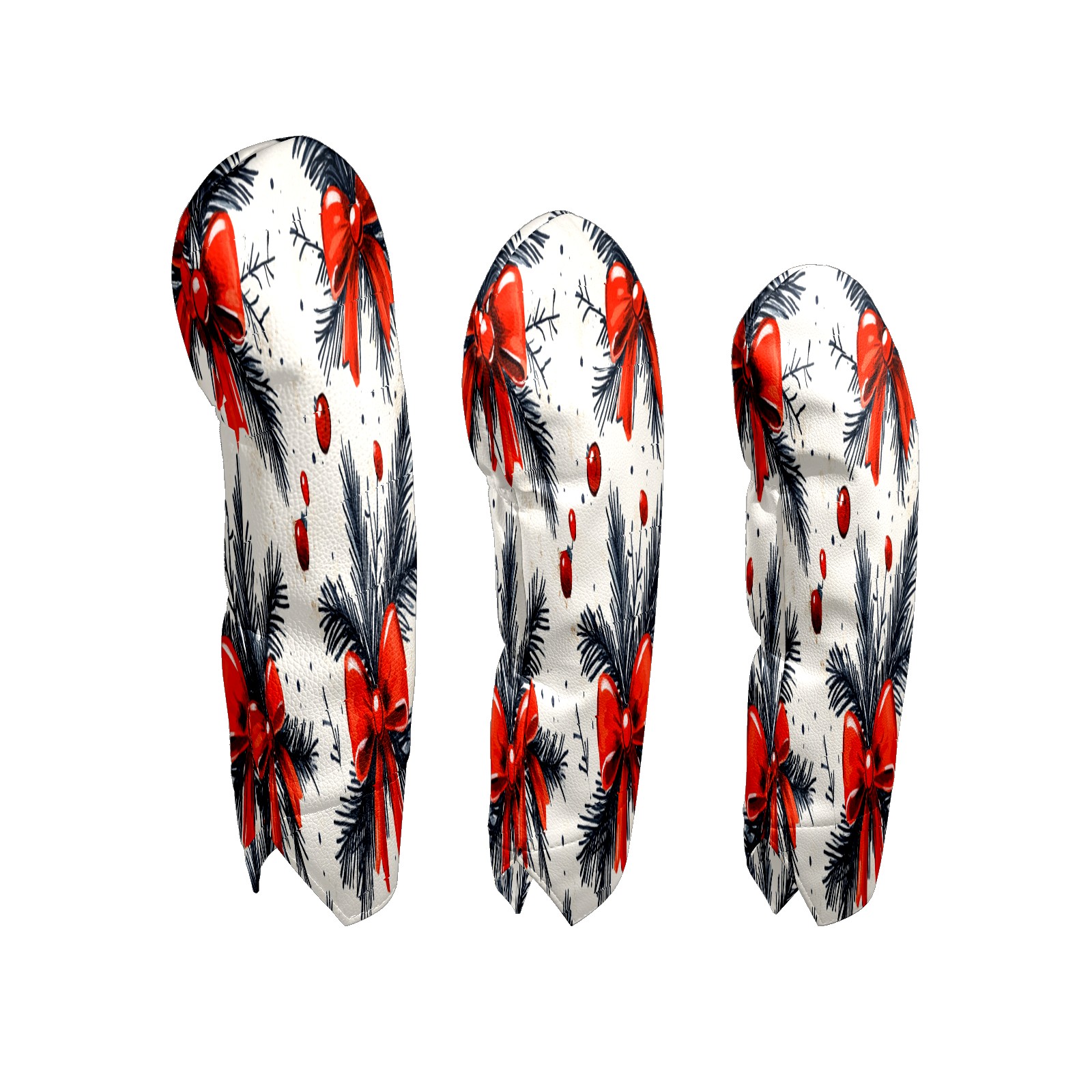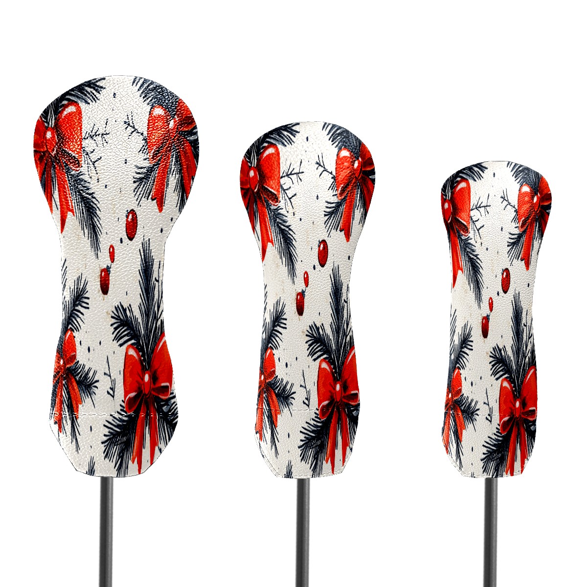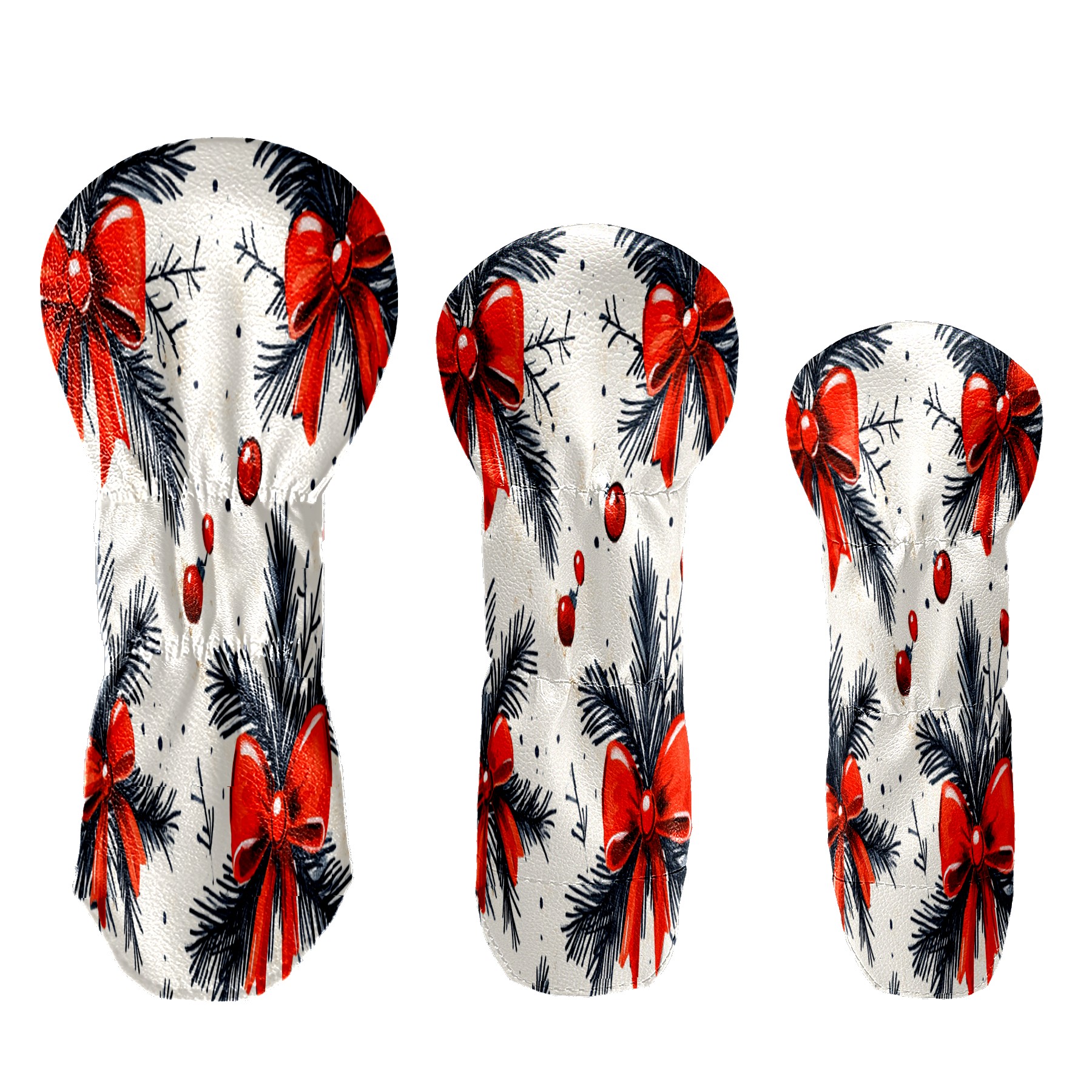 Golf Club Cover, Velvet Lining, High-Quality Leather, Suitable for the First Wood, Fairway Wood and Hybrid Club Head Cover, Suitable for Men and Women Golf Enthusiasts Pine Branches Red Bow