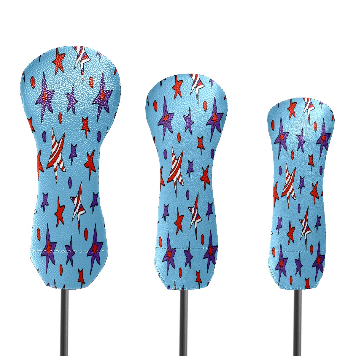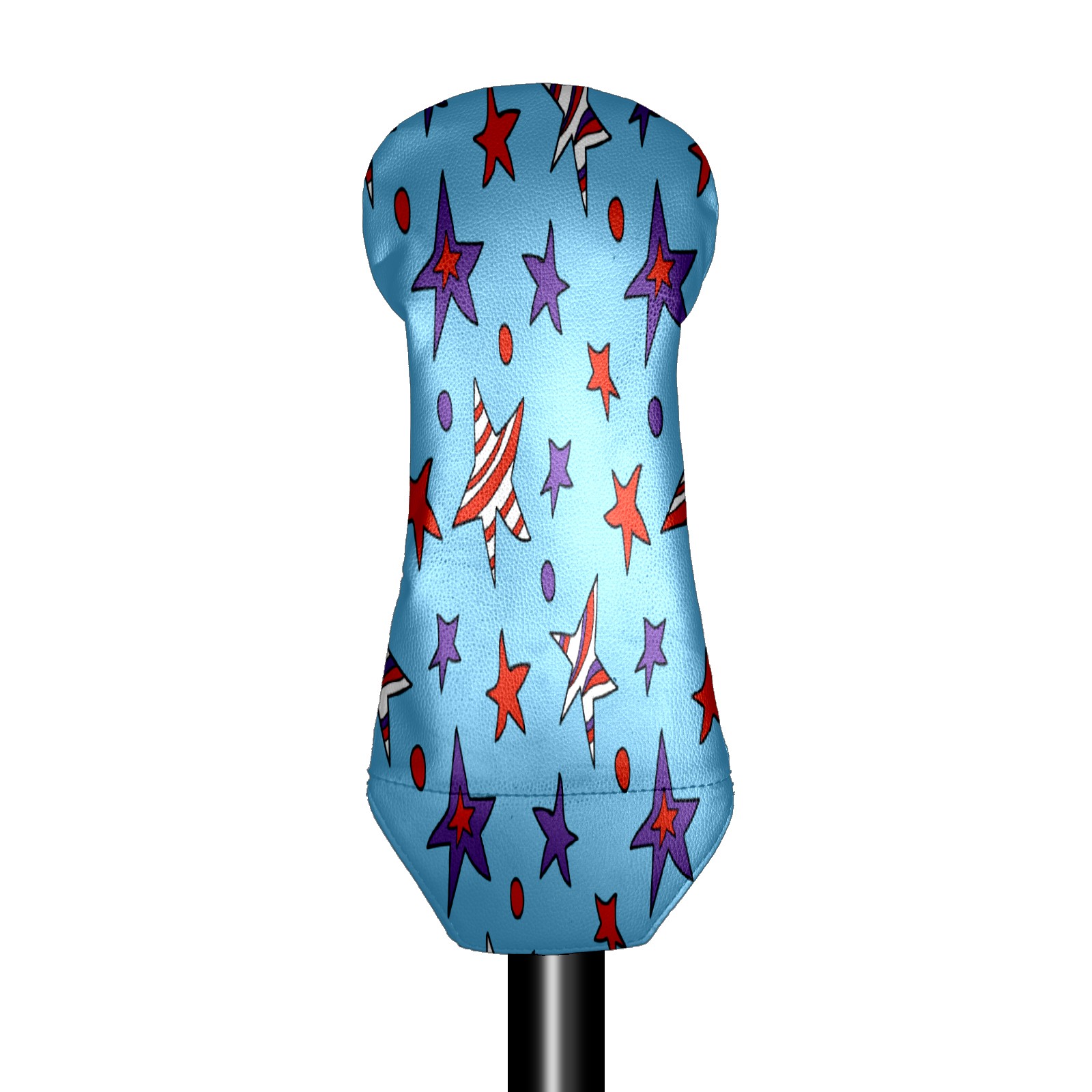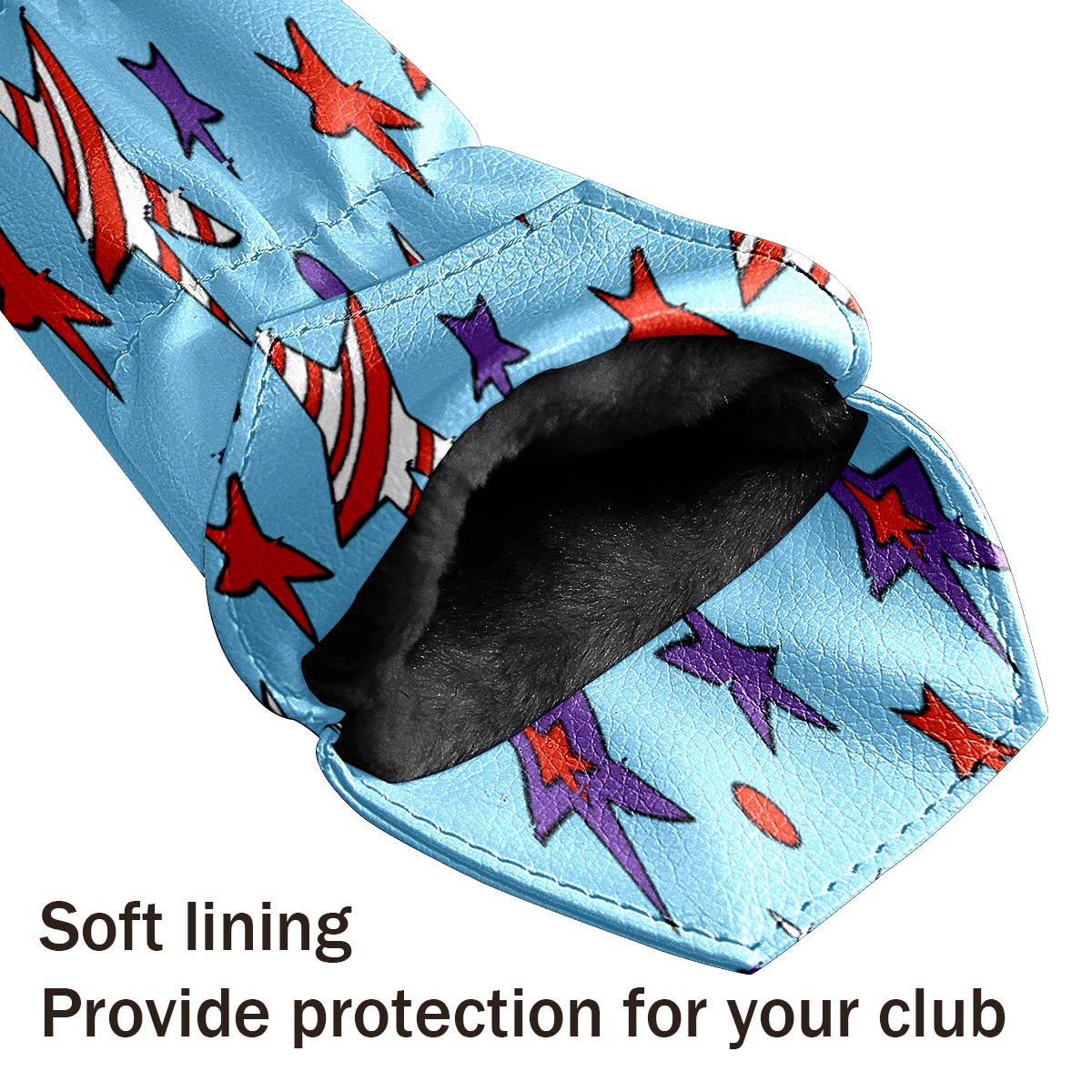 PU Leather Golf Putter Head Covers for Driver, Fairway Wood & Hybrid Clubs, Unisex, Fits All Brands American Stars On Blue Background
