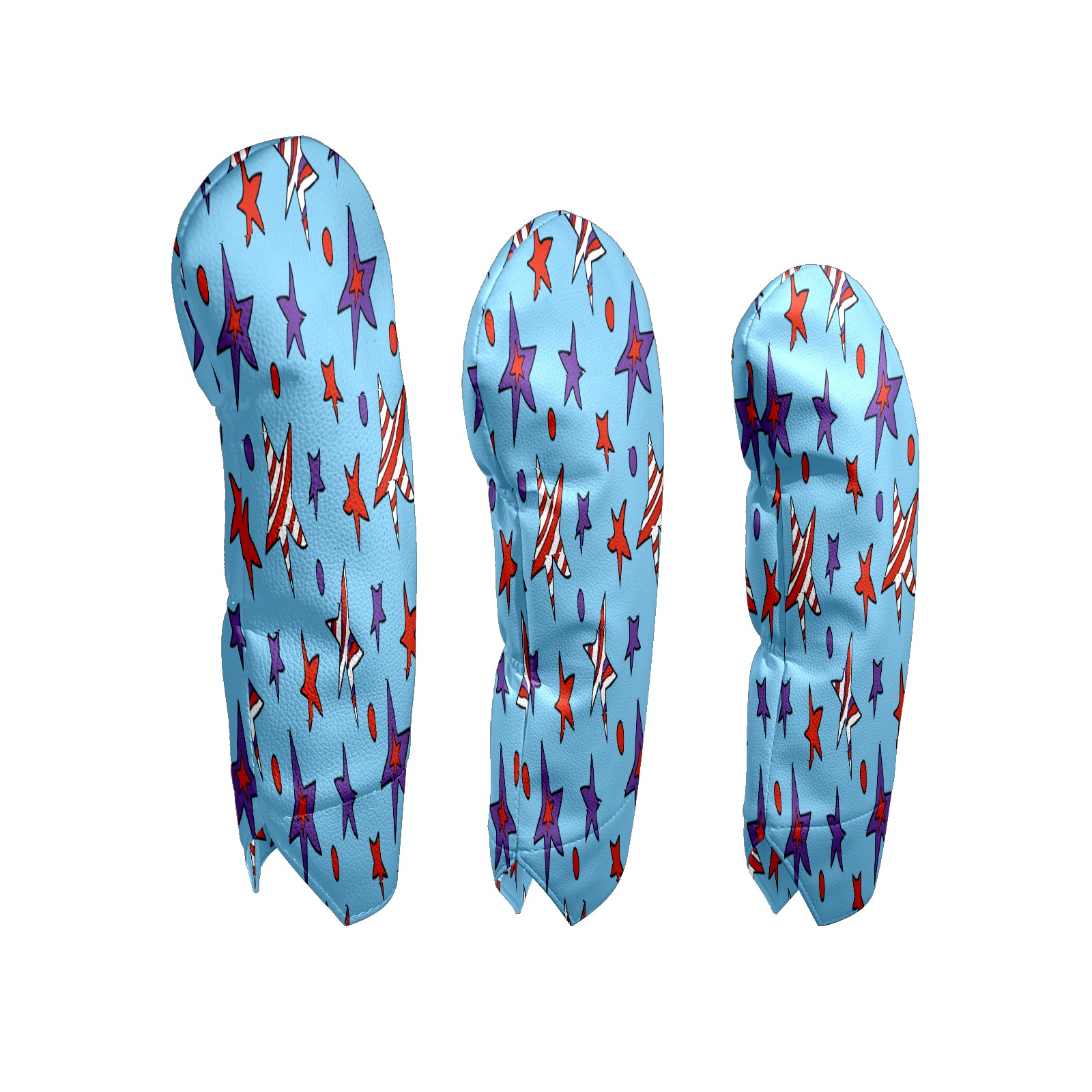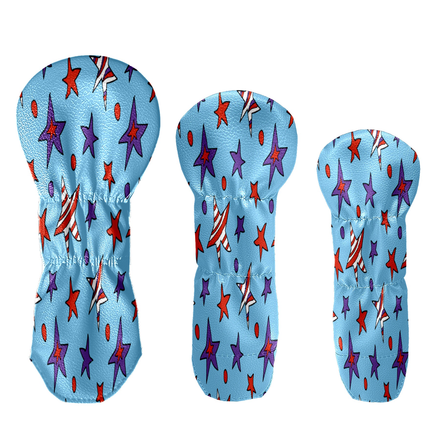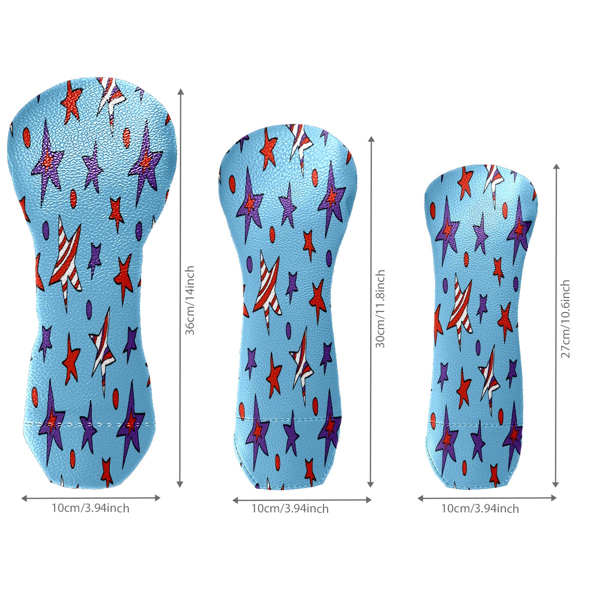 PU Leather Golf Putter Head Covers for Driver, Fairway Wood & Hybrid Clubs, Unisex, Fits All Brands American Stars On Blue Background