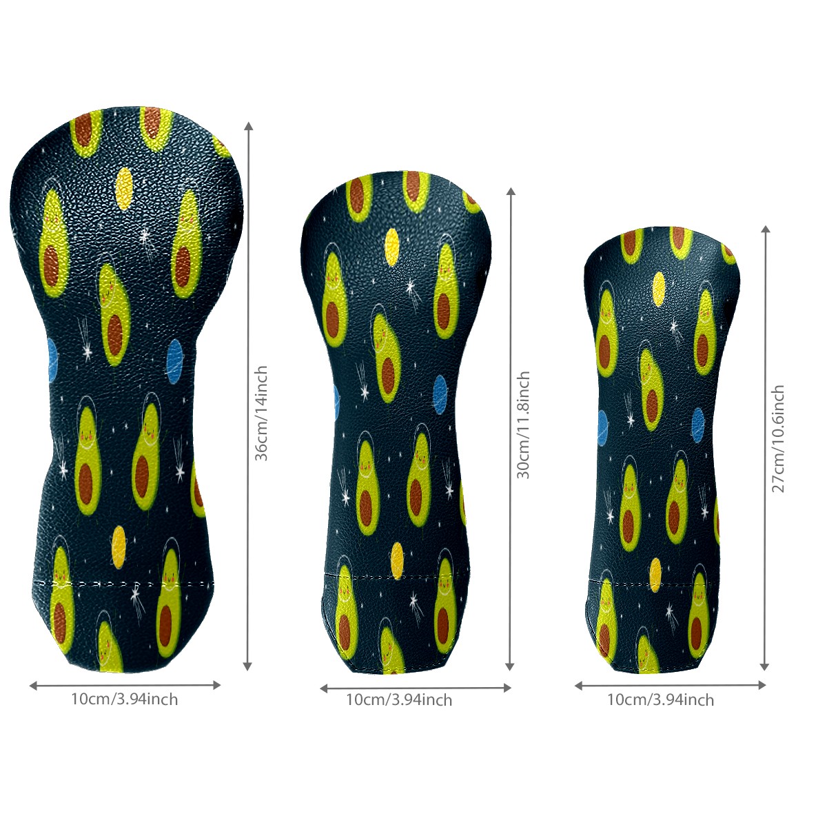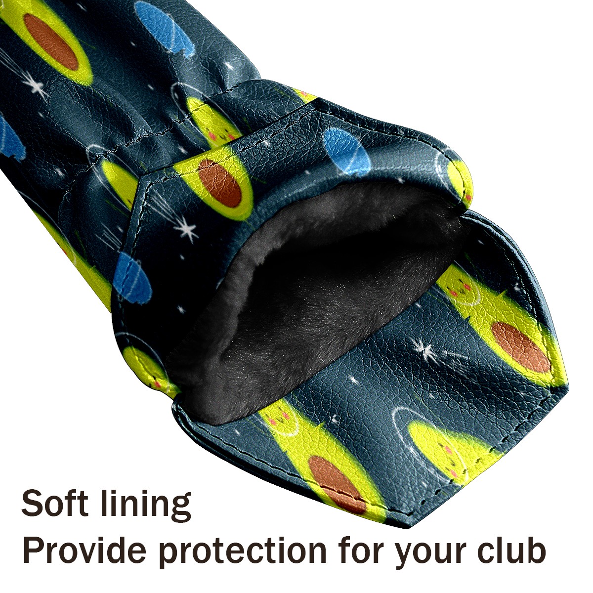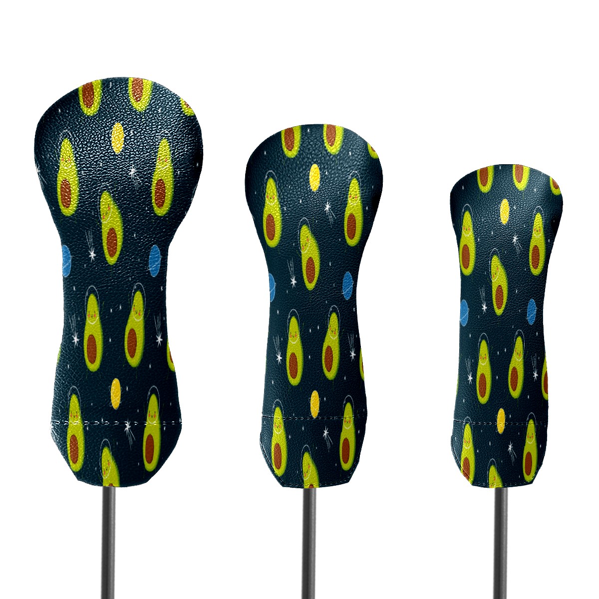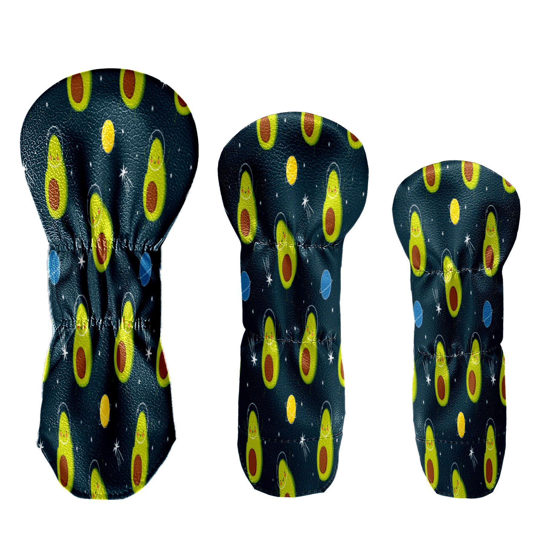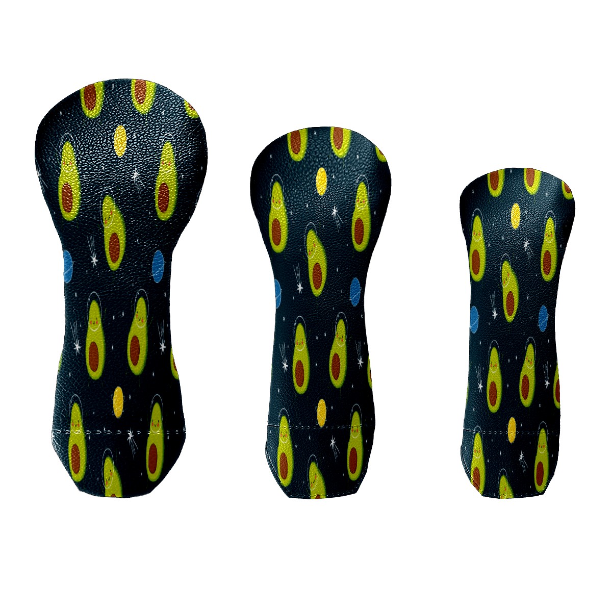 PU Leather Golf Putter Head Covers for Driver, Fairway Wood & Hybrid Clubs, Unisex, Fits All Brands Cute-Avocado-Cartoon-Space