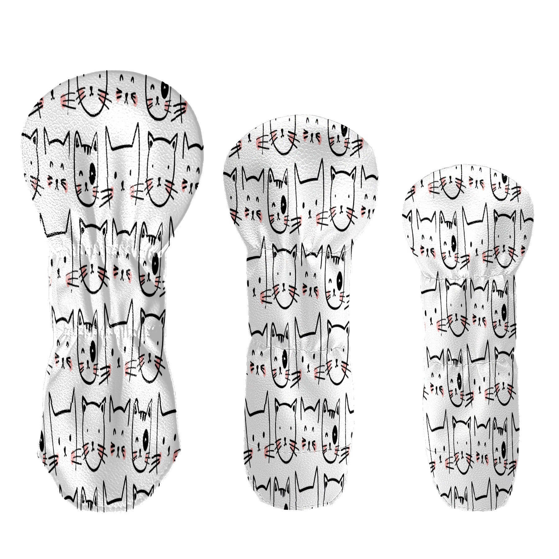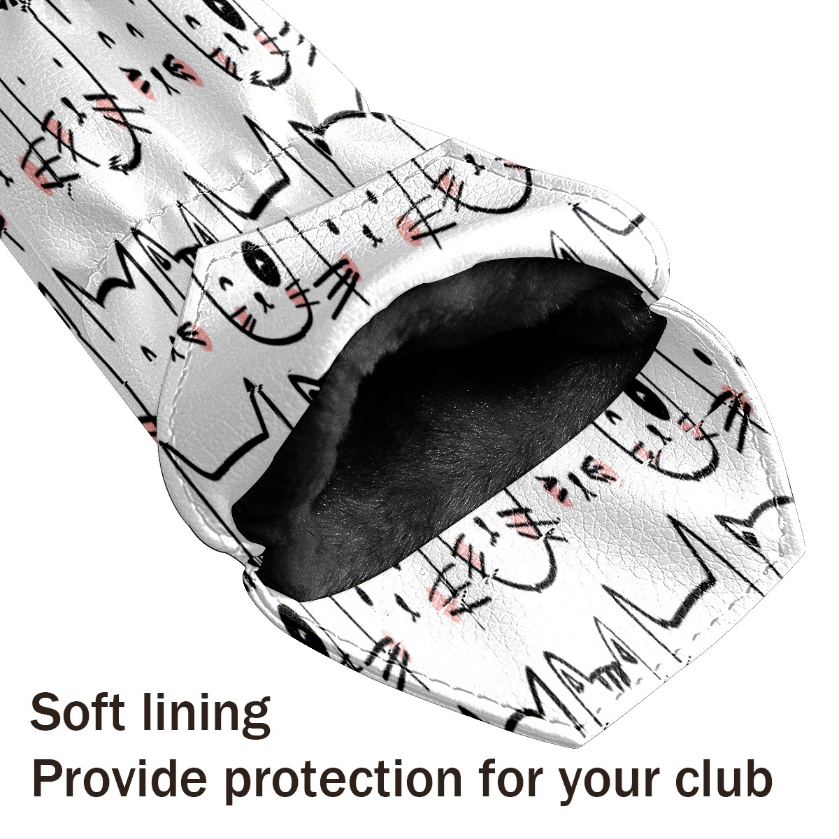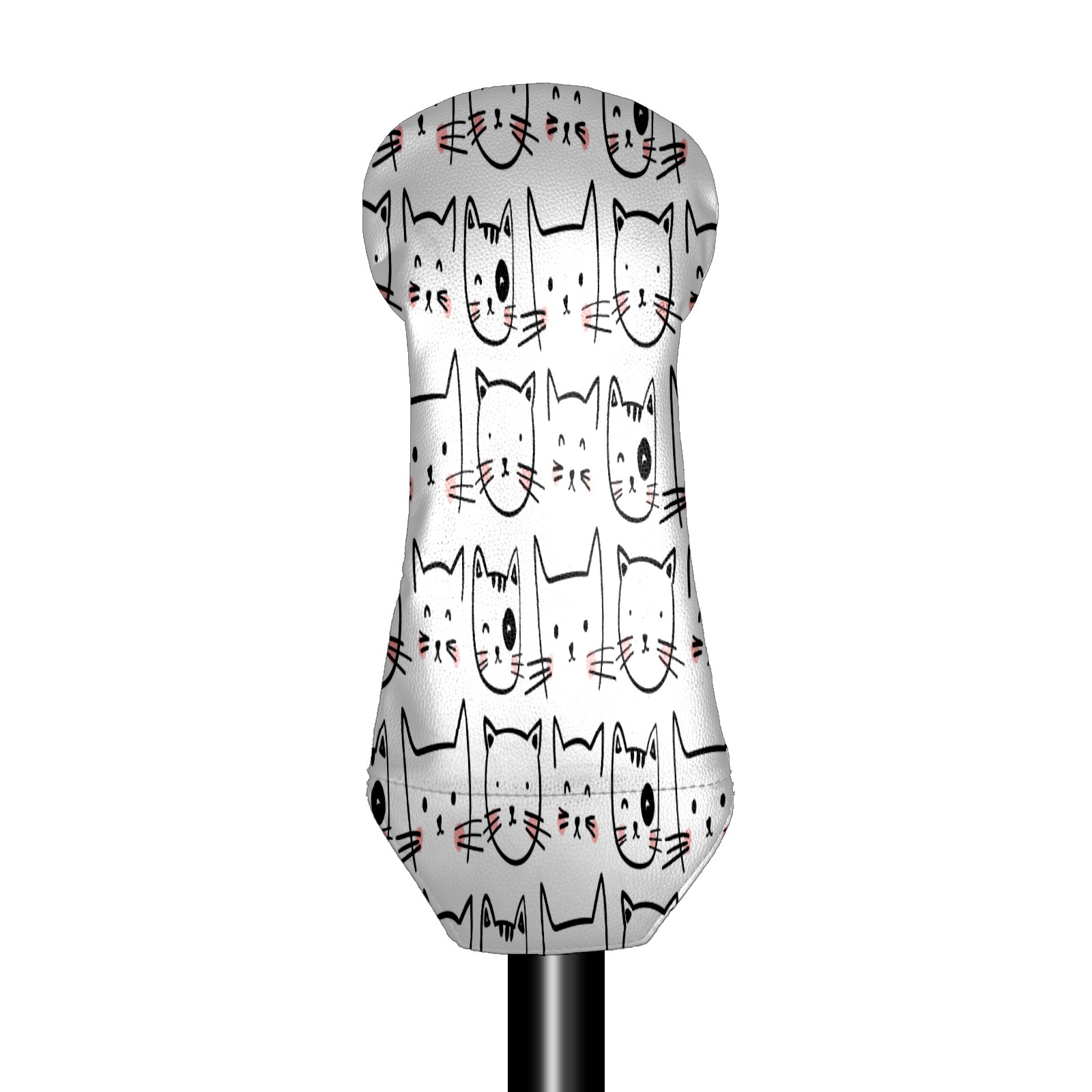 PU Leather Golf Putter Head Covers for Driver, Fairway Wood & Hybrid Clubs, Unisex, Fits All Brands Black Outline Cat Faces Pattern
