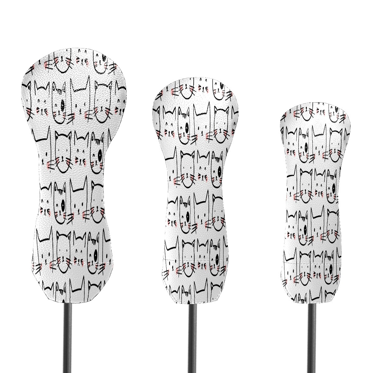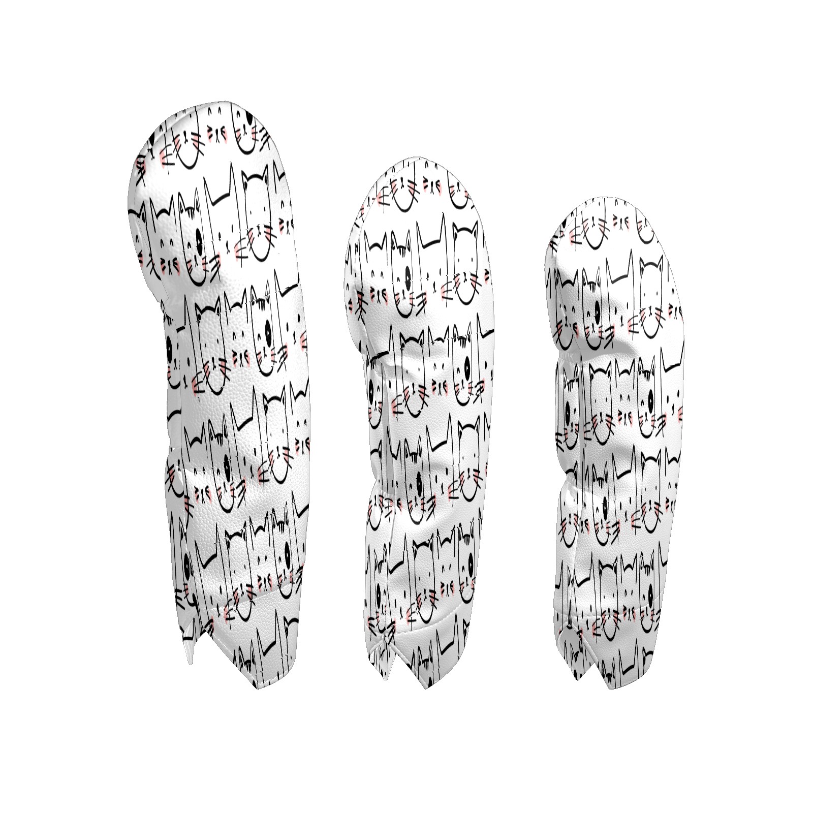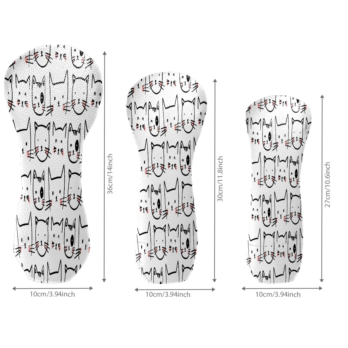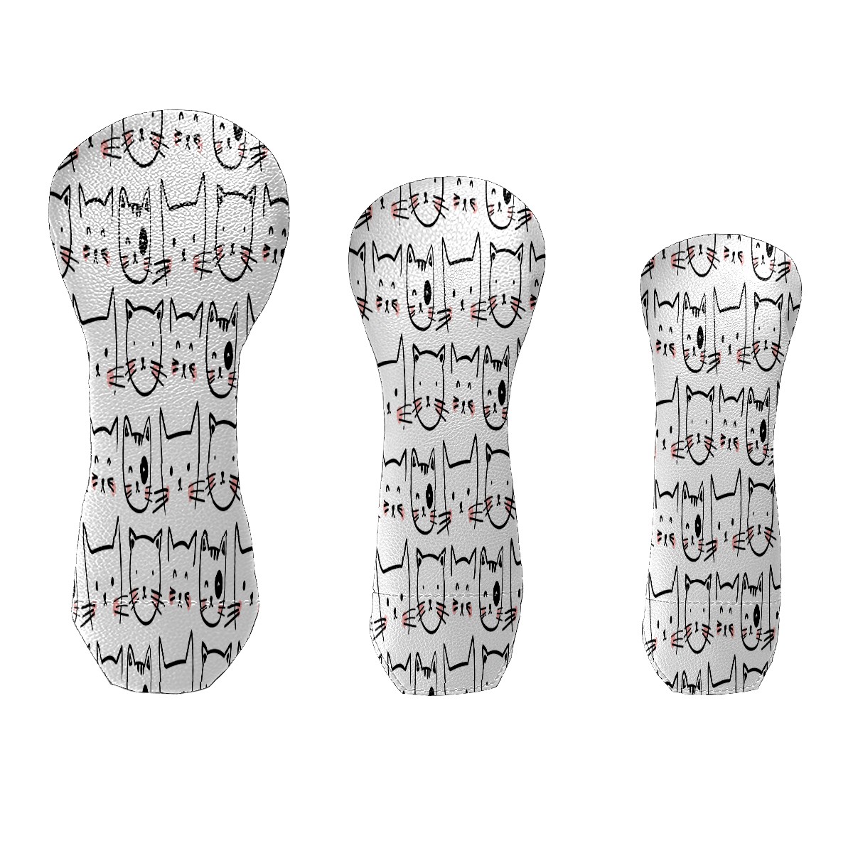 PU Leather Golf Putter Head Covers for Driver, Fairway Wood & Hybrid Clubs, Unisex, Fits All Brands Black Outline Cat Faces Pattern
