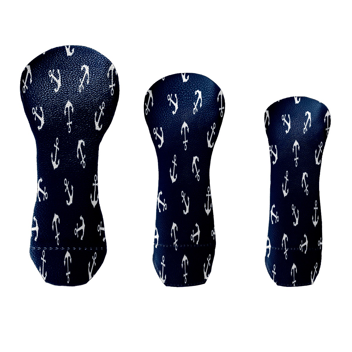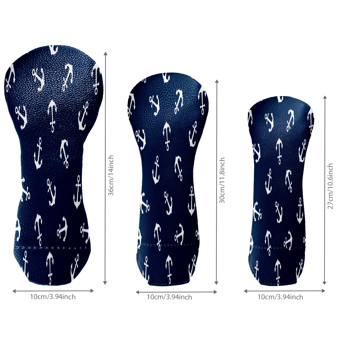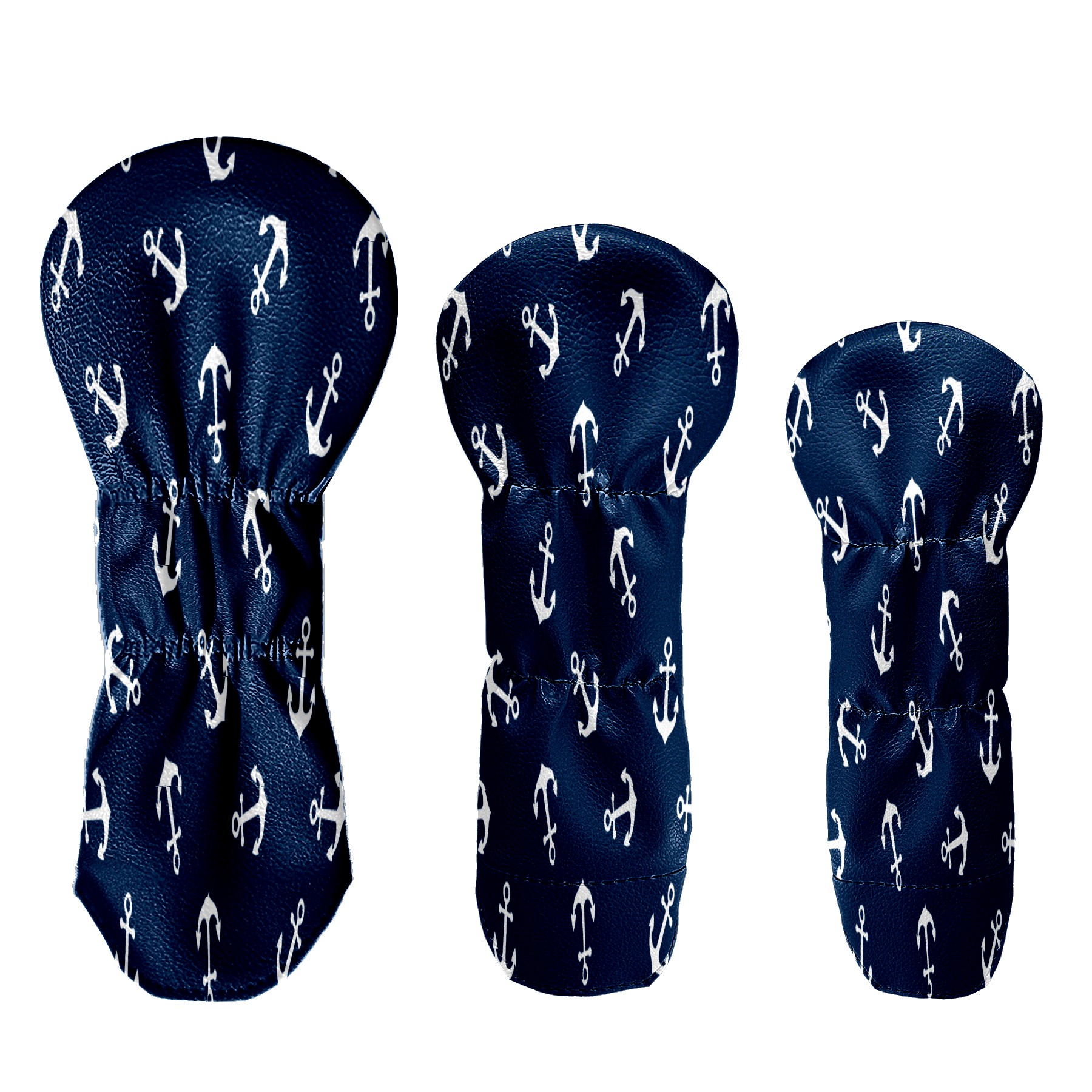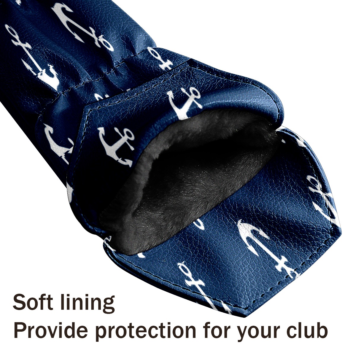 PU Leather Golf Putter Head Covers for Driver, Fairway Wood & Hybrid Clubs, Unisex, Fits All Brands Nautical Anchor Navy Blue