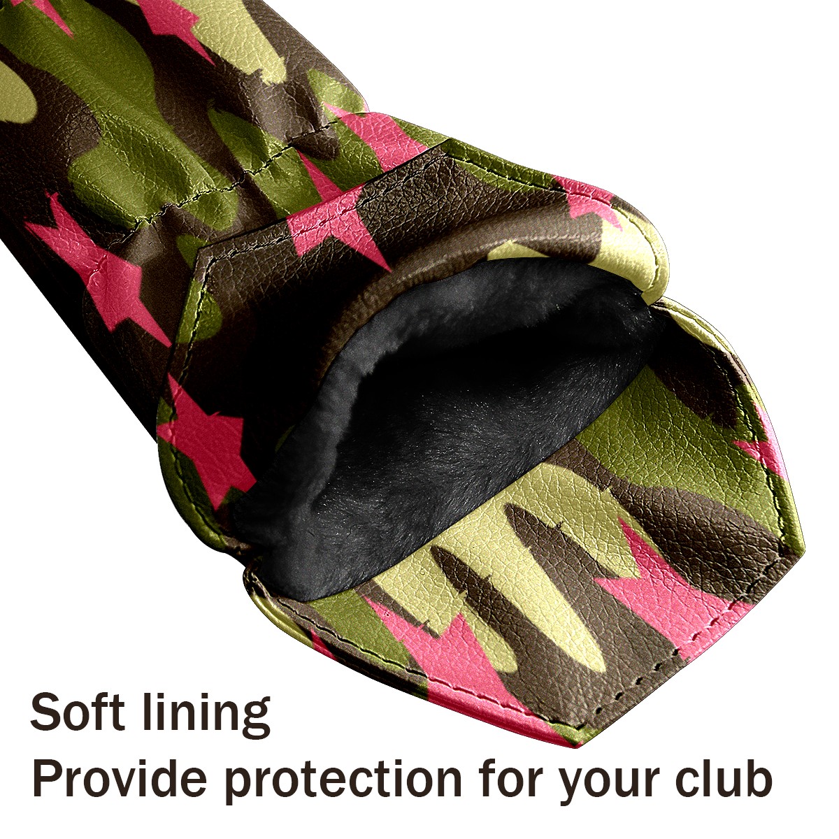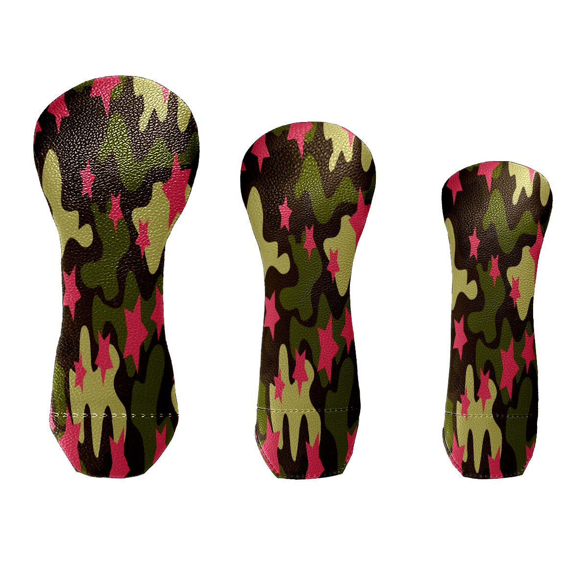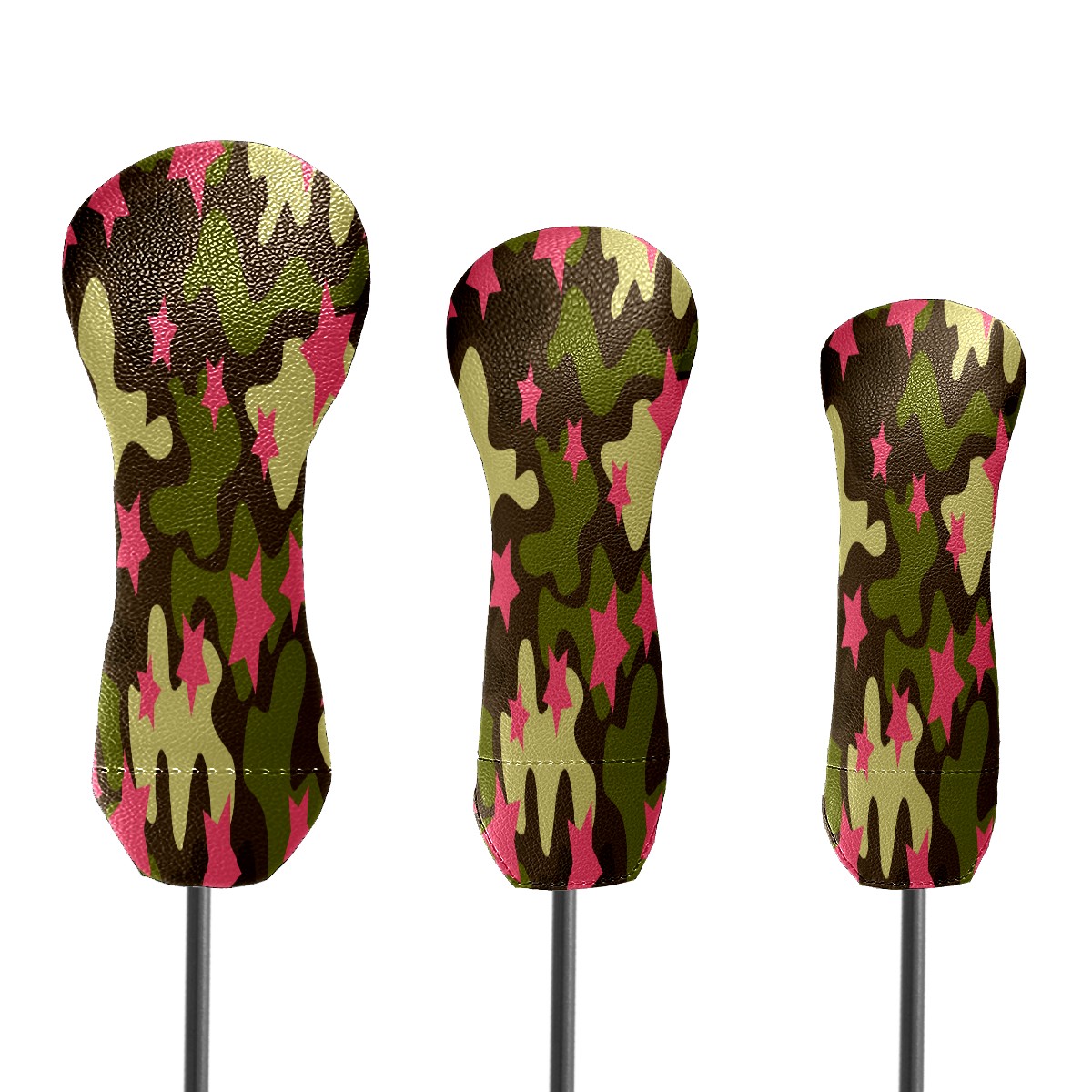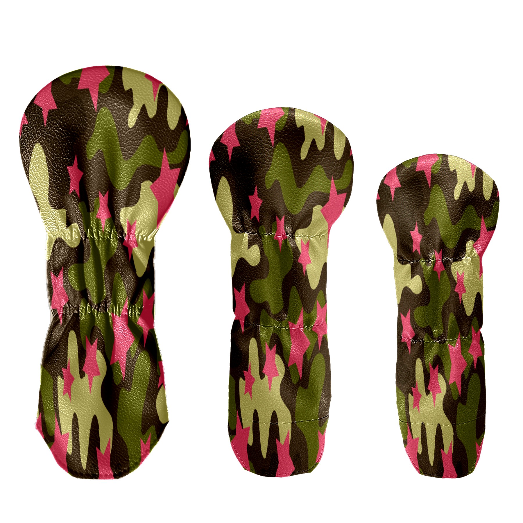 PU Leather Golf Putter Head Covers for Driver, Fairway Wood & Hybrid Clubs, Unisex, Fits All Brands Pink Star Pattern Camouflage Color
