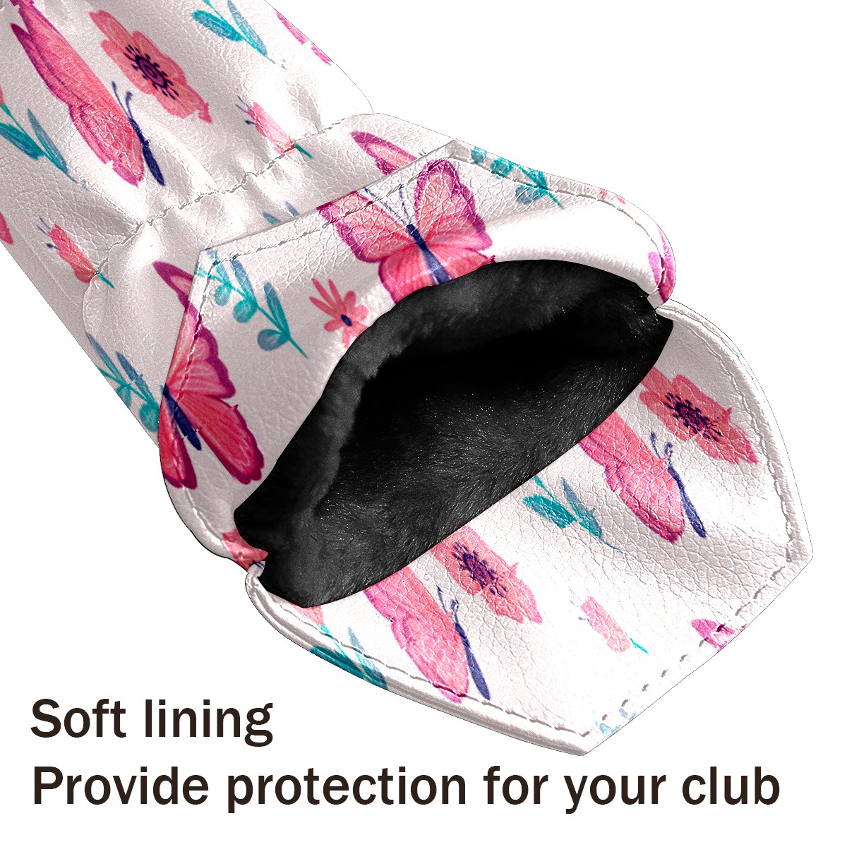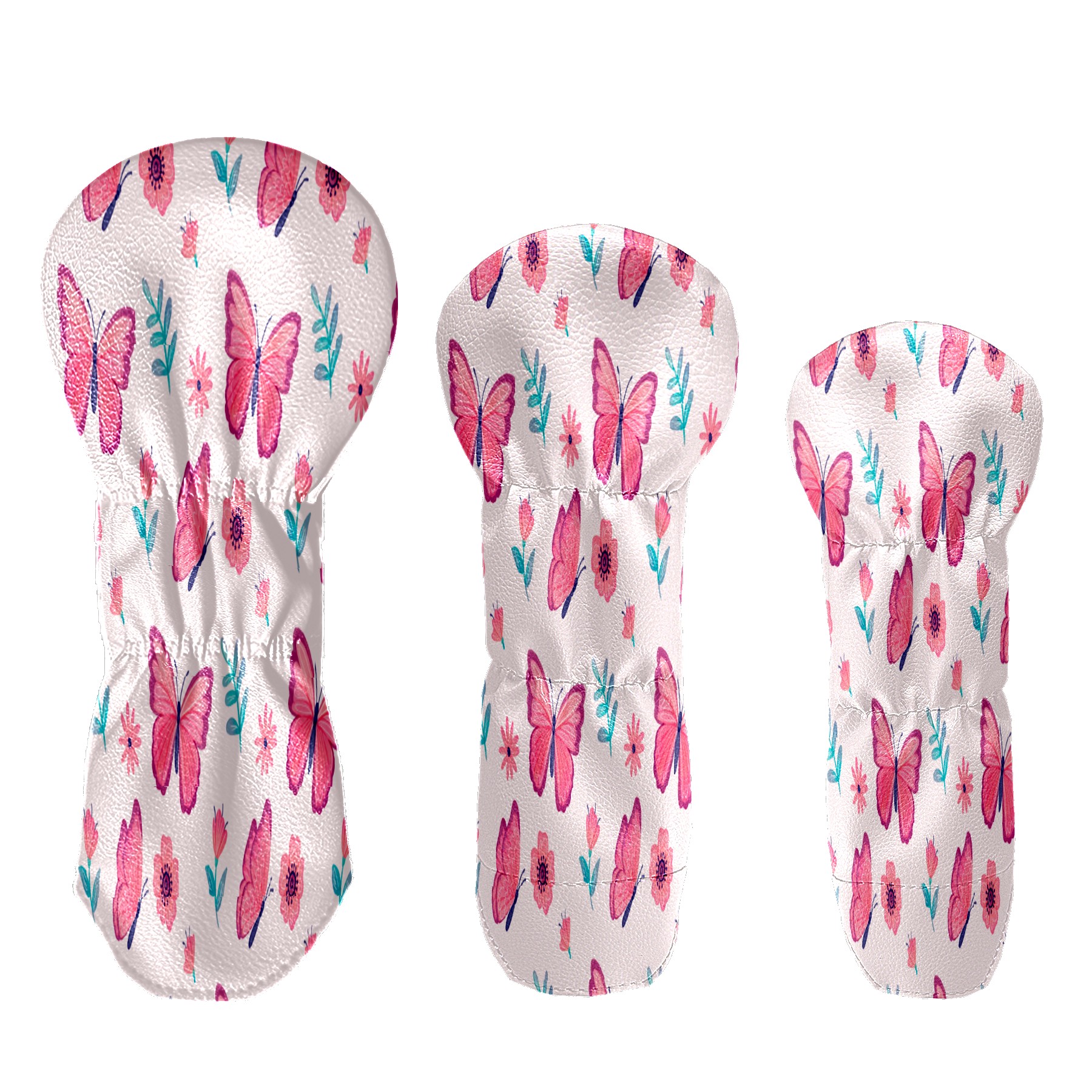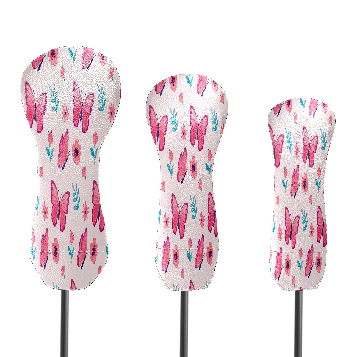 PU Leather Golf Putter Head Covers for Driver, Fairway Wood & Hybrid Clubs, Unisex, Fits All Brands Pink Butterfly & Flower