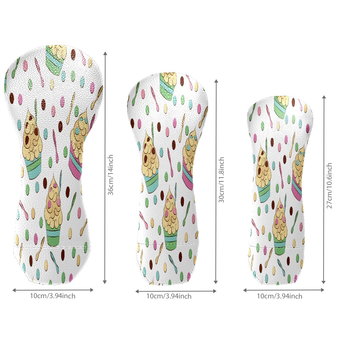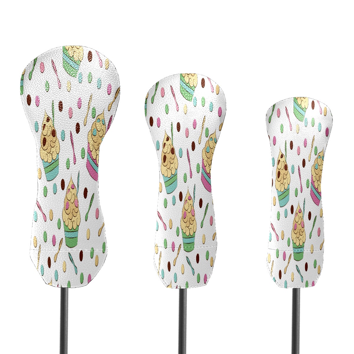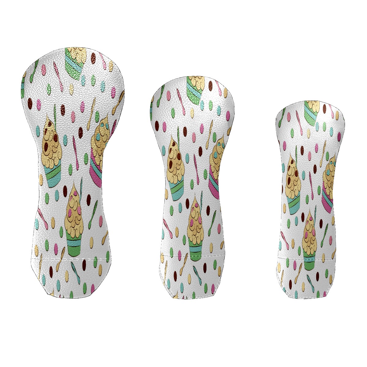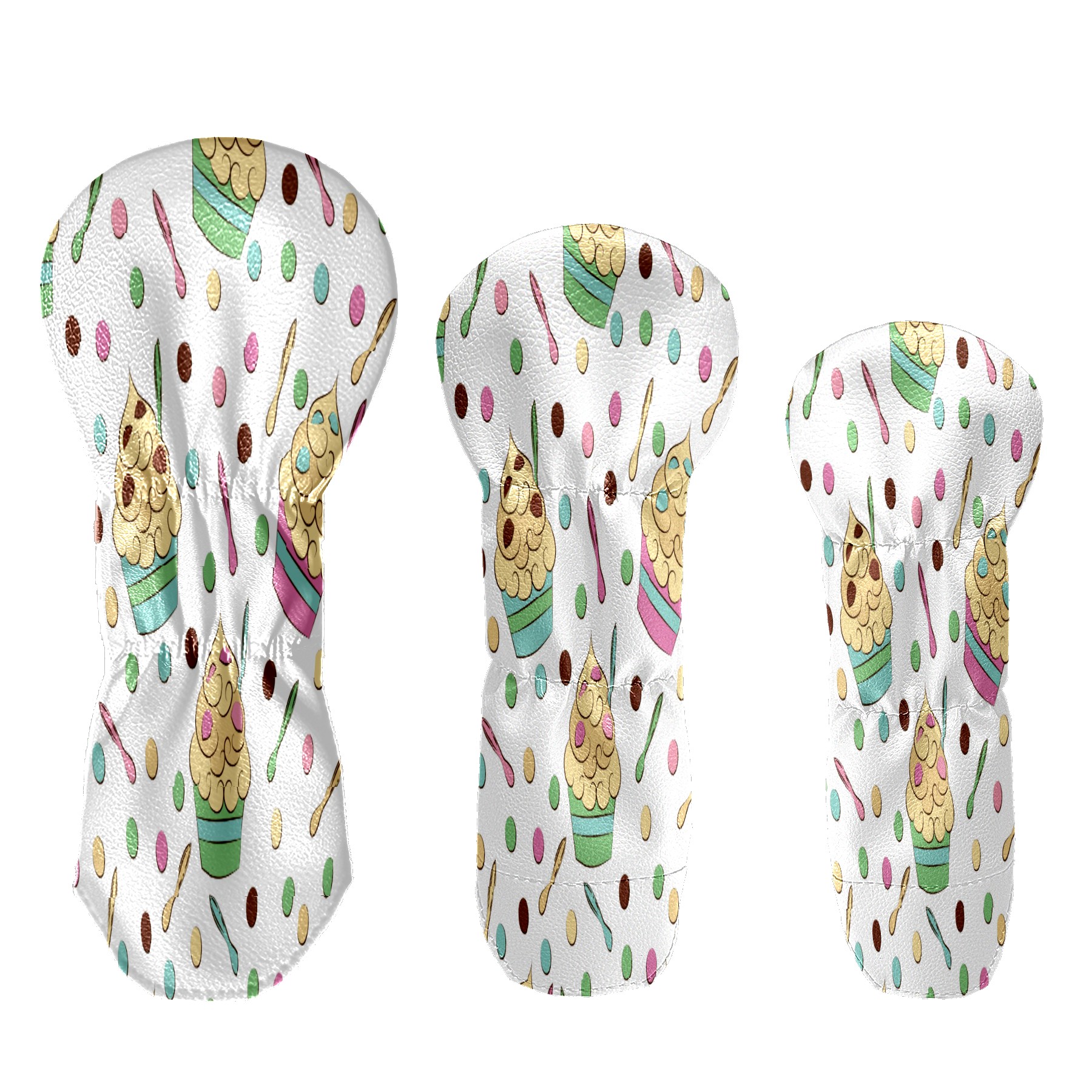 PU Leather Golf Putter Head Covers for Driver, Fairway Wood & Hybrid Clubs, Unisex, Fits All Brands Cute Seamless Frozen Yogurt Pattern Sweet Cold Desserts