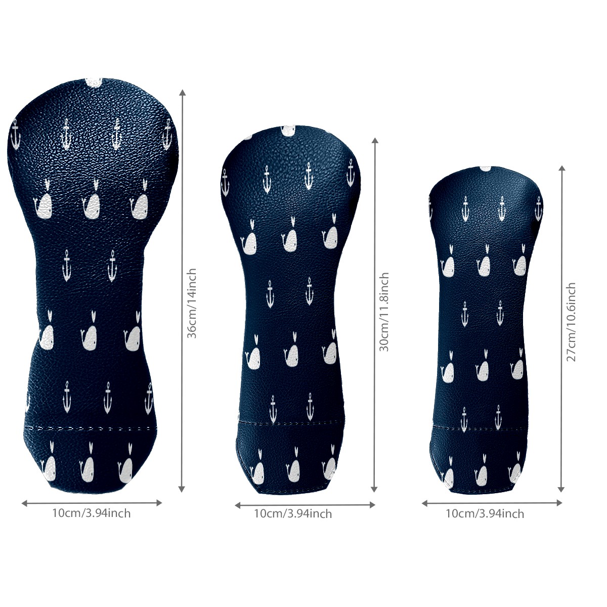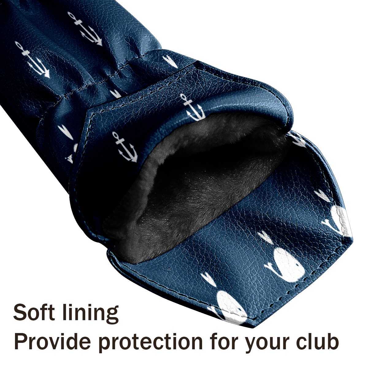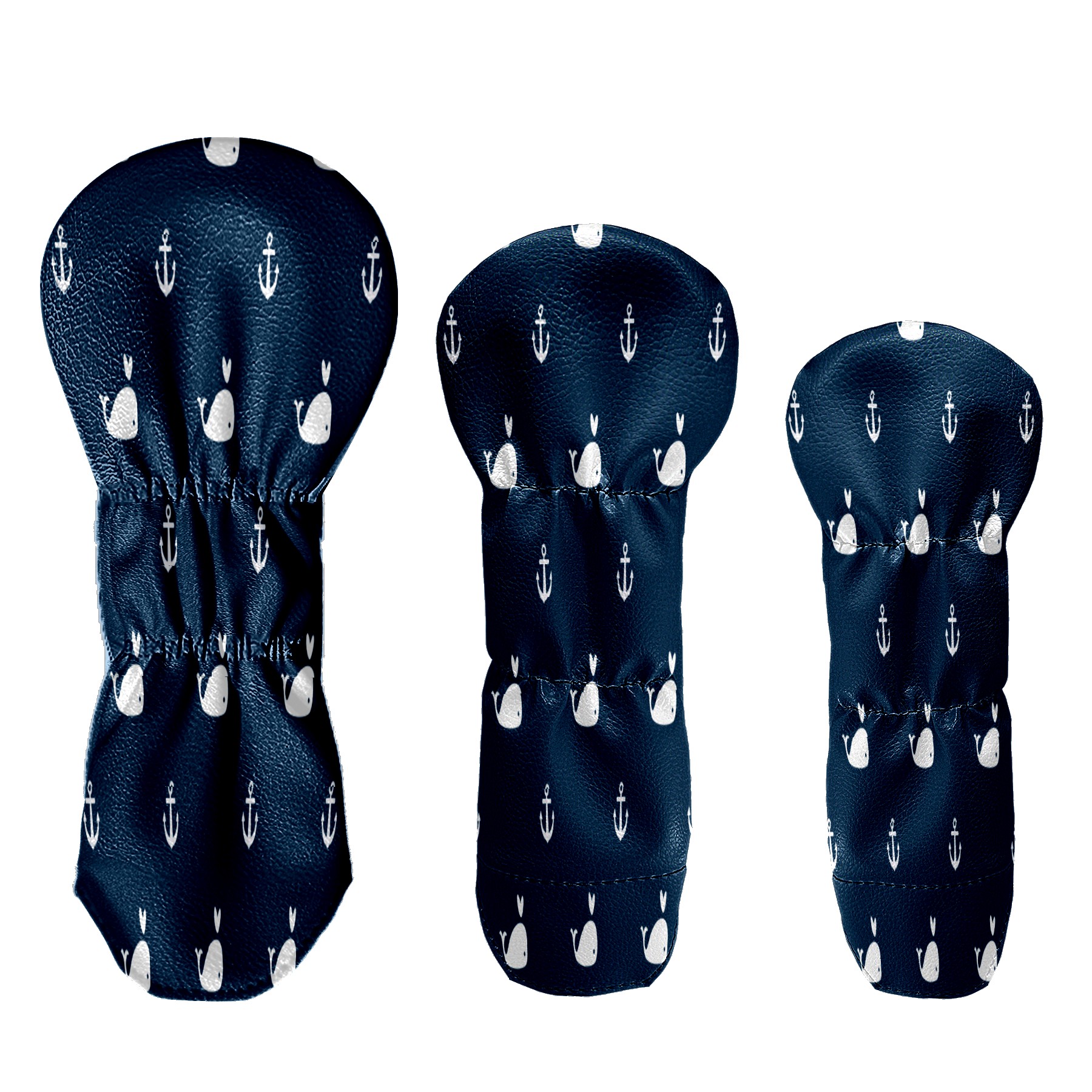 PU Leather Golf Putter Head Covers for Driver, Fairway Wood & Hybrid Clubs, Unisex, Fits All Brands Sealife Whale Anchor Pattern