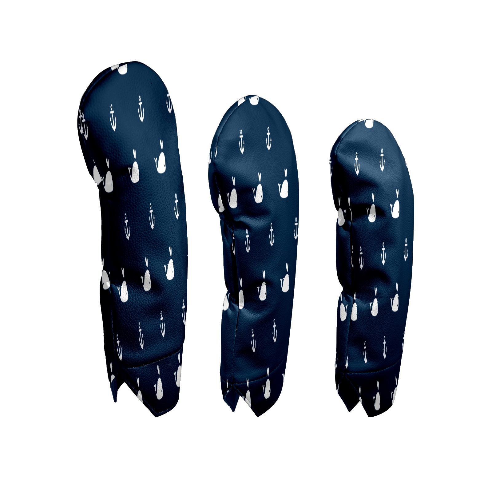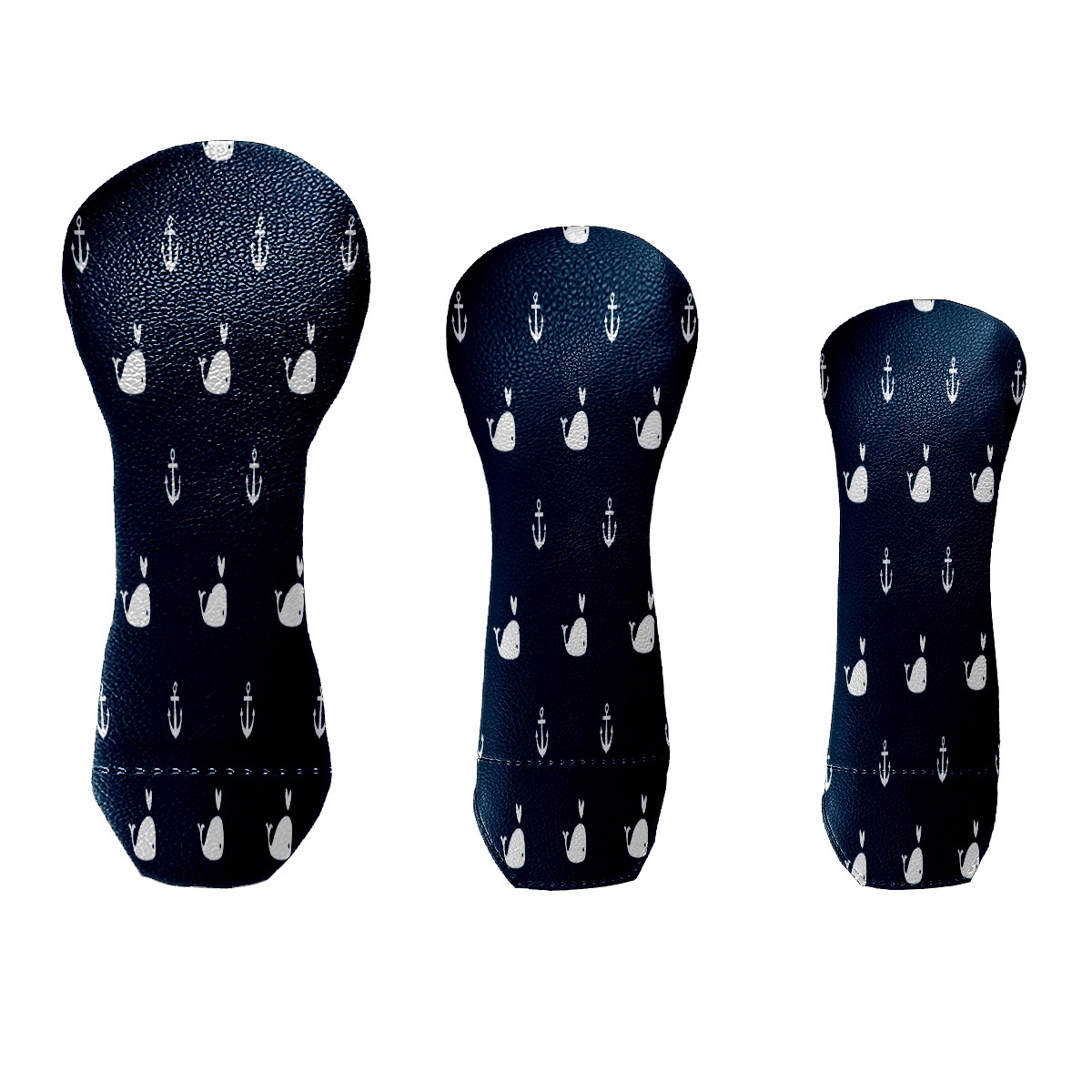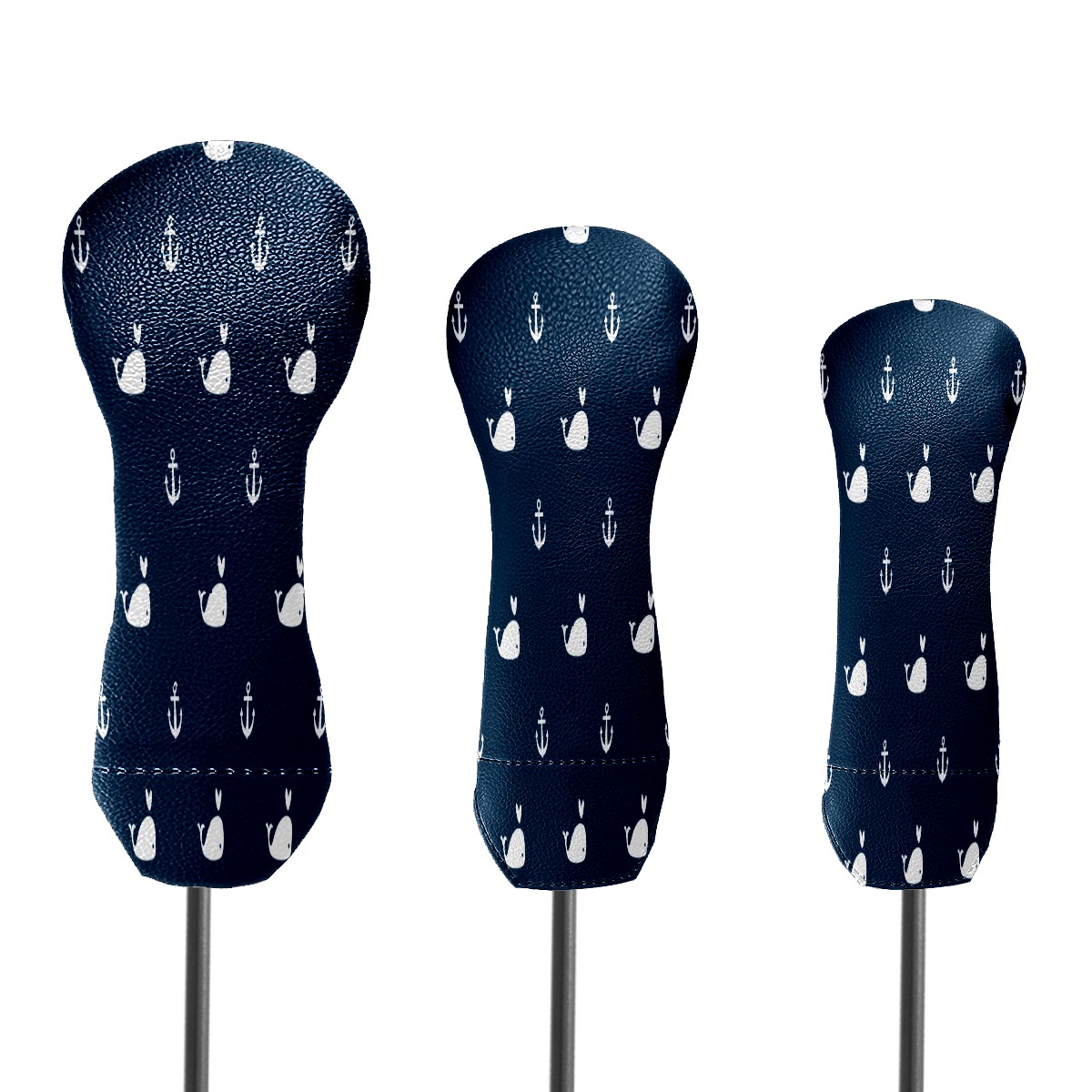 PU Leather Golf Putter Head Covers for Driver, Fairway Wood & Hybrid Clubs, Unisex, Fits All Brands Sealife Whale Anchor Pattern