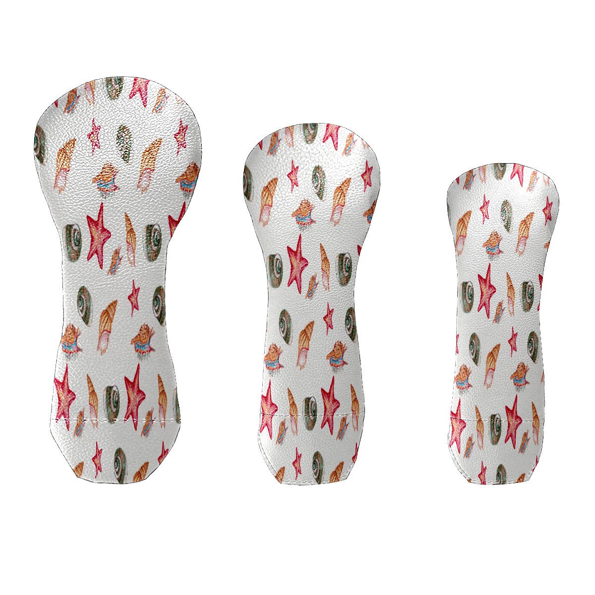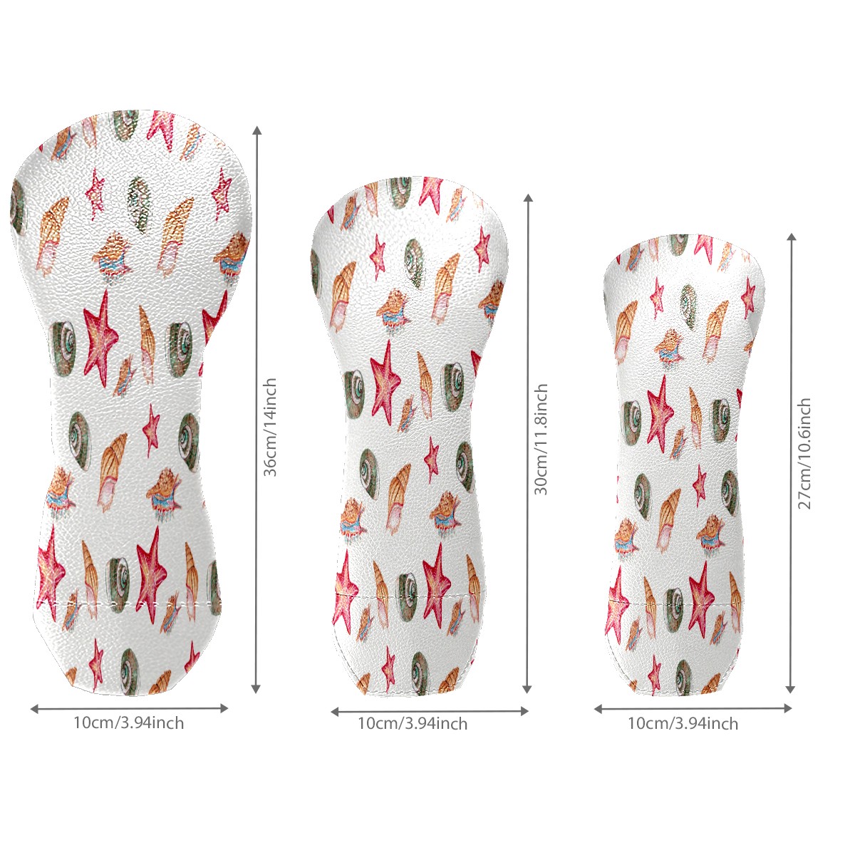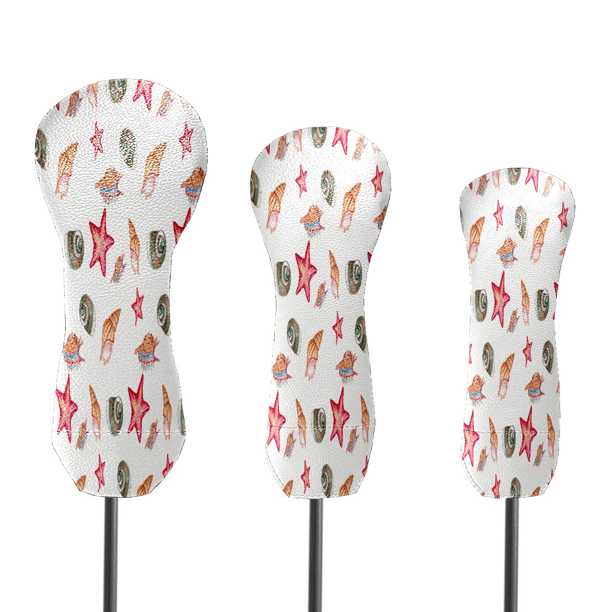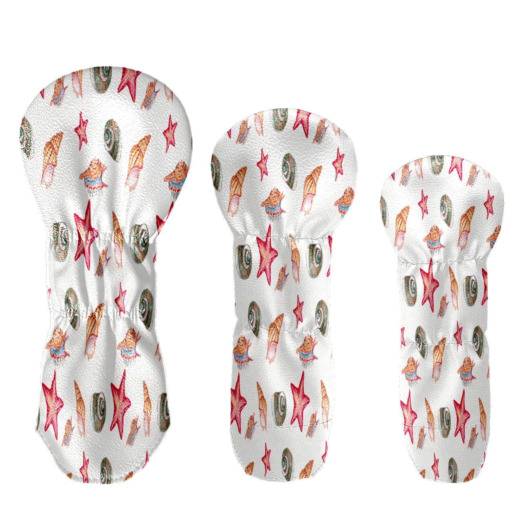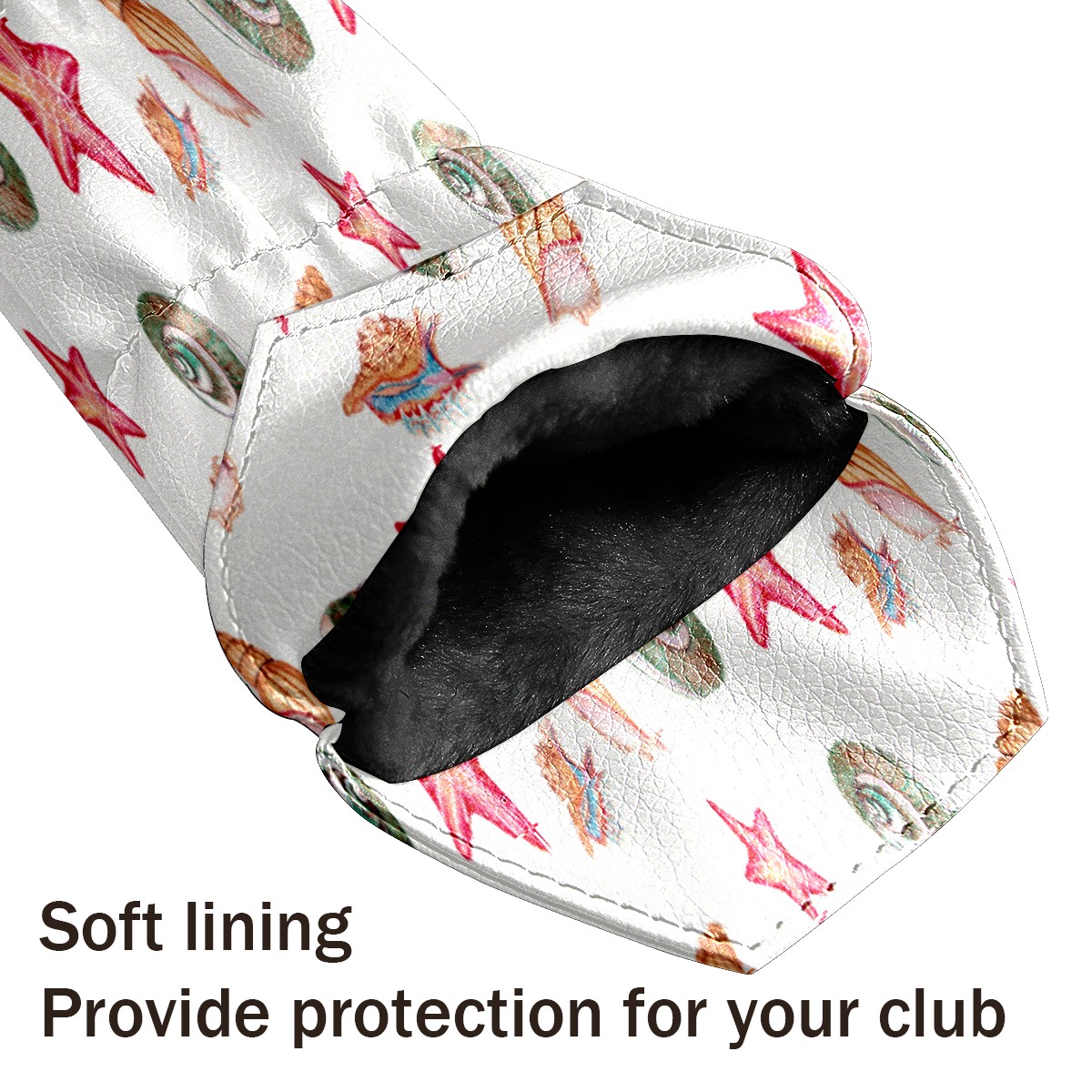 PU Leather Golf Putter Head Covers for Driver, Fairway Wood & Hybrid Clubs, Unisex, Fits All Brands Watercolor Seashell Starfish Pattern