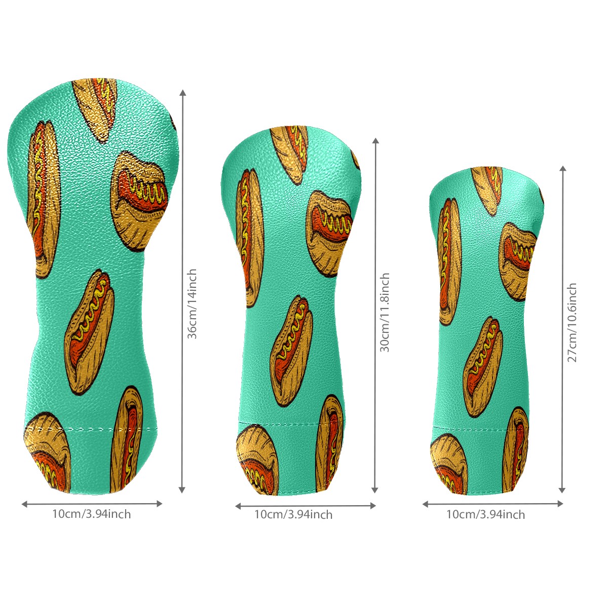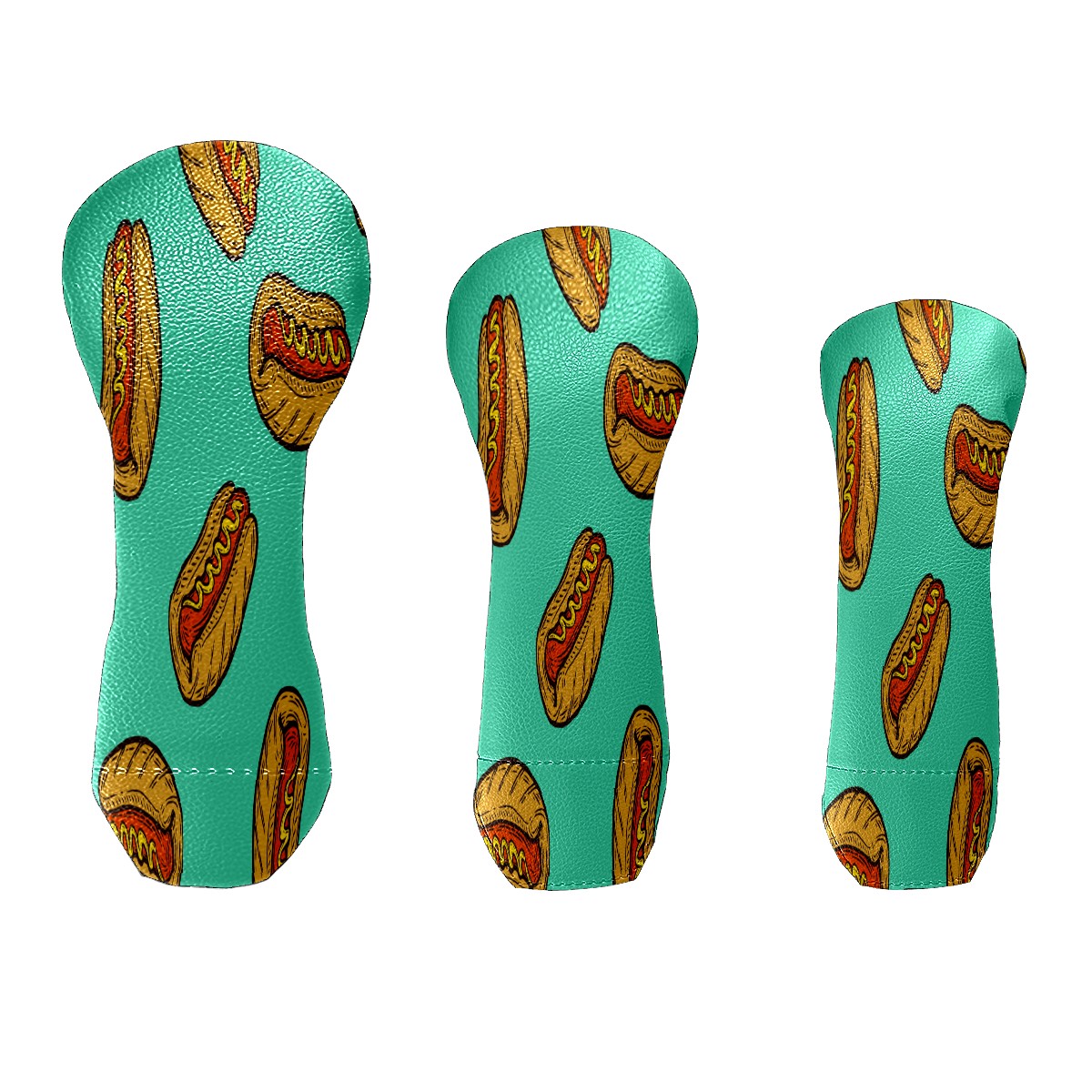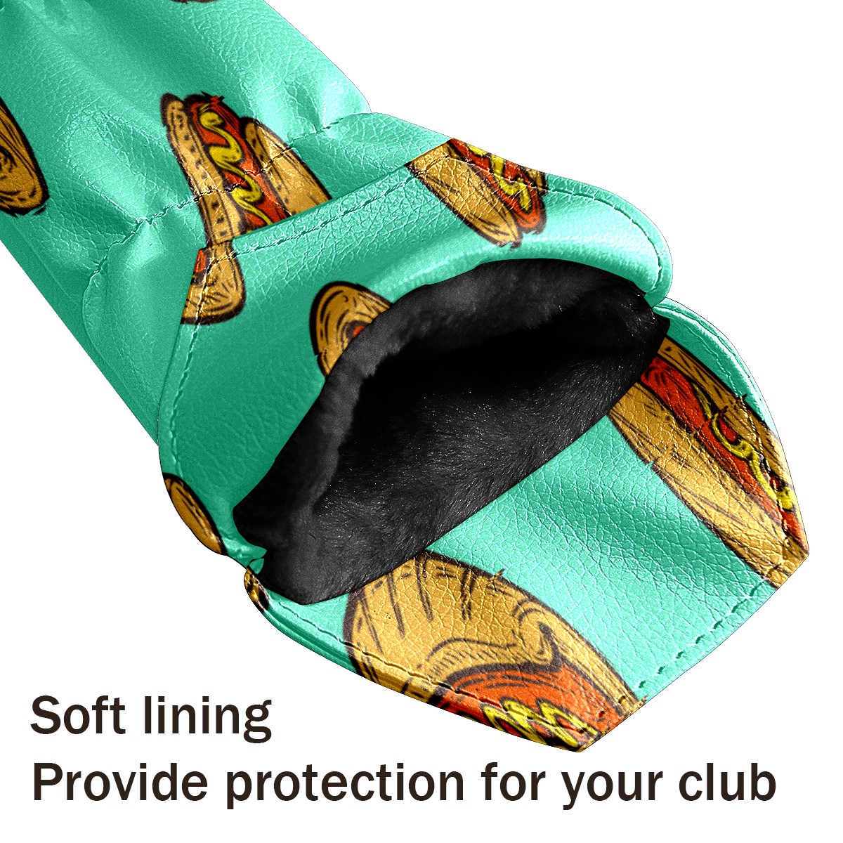 PU Leather Golf Putter Head Covers for Driver, Fairway Wood & Hybrid Clubs, Unisex, Fits All Brands Fast Food Hot Dog Pattern Green