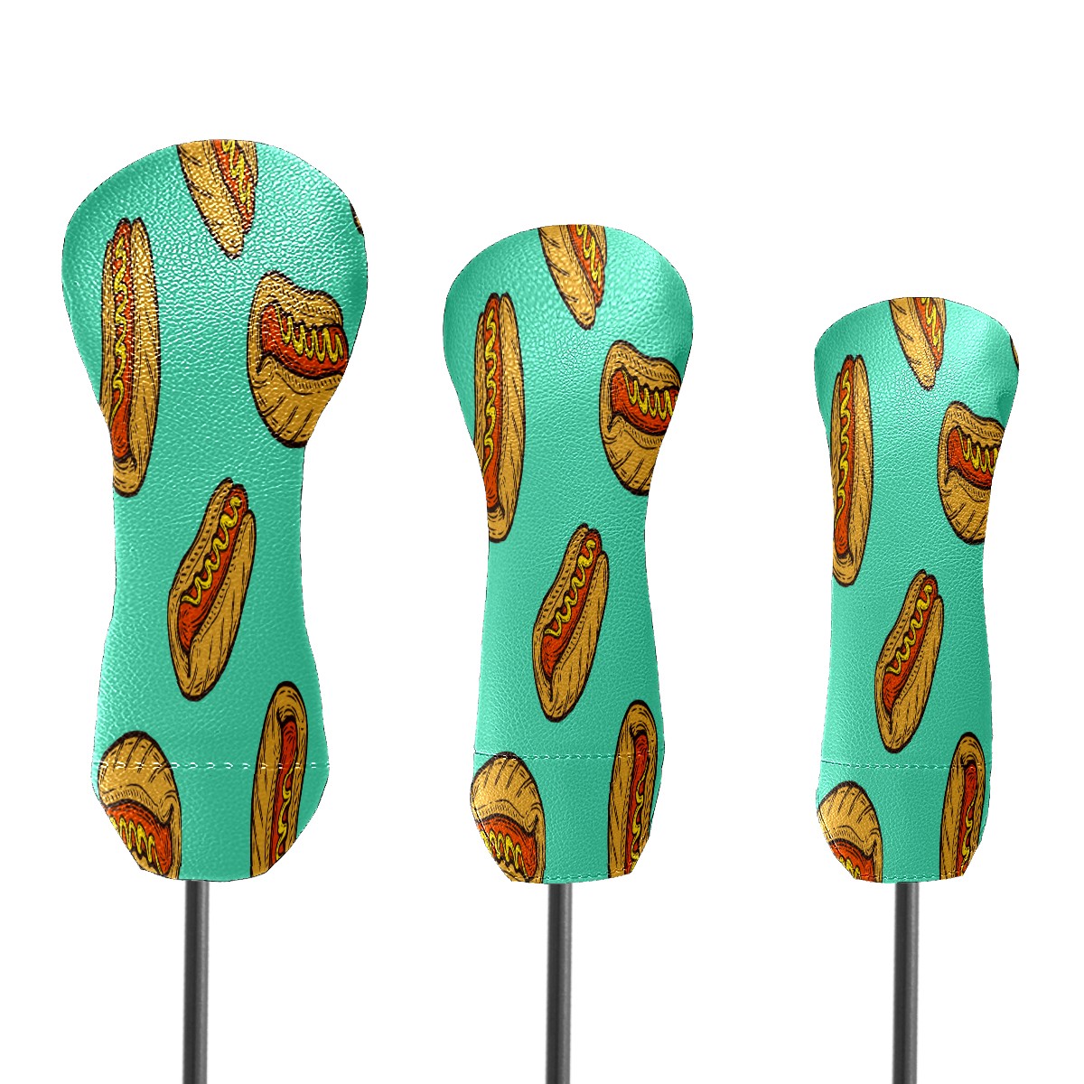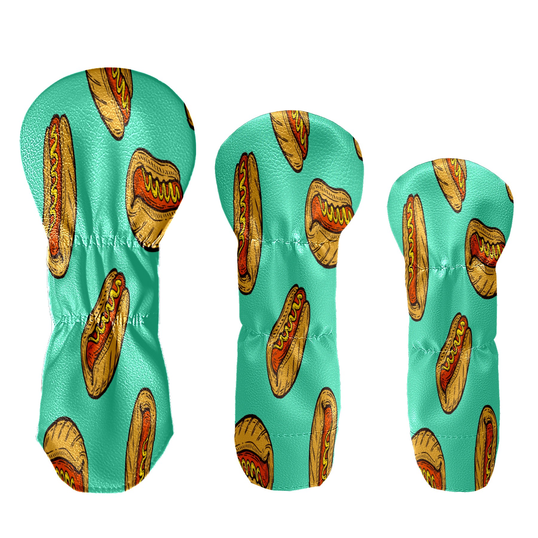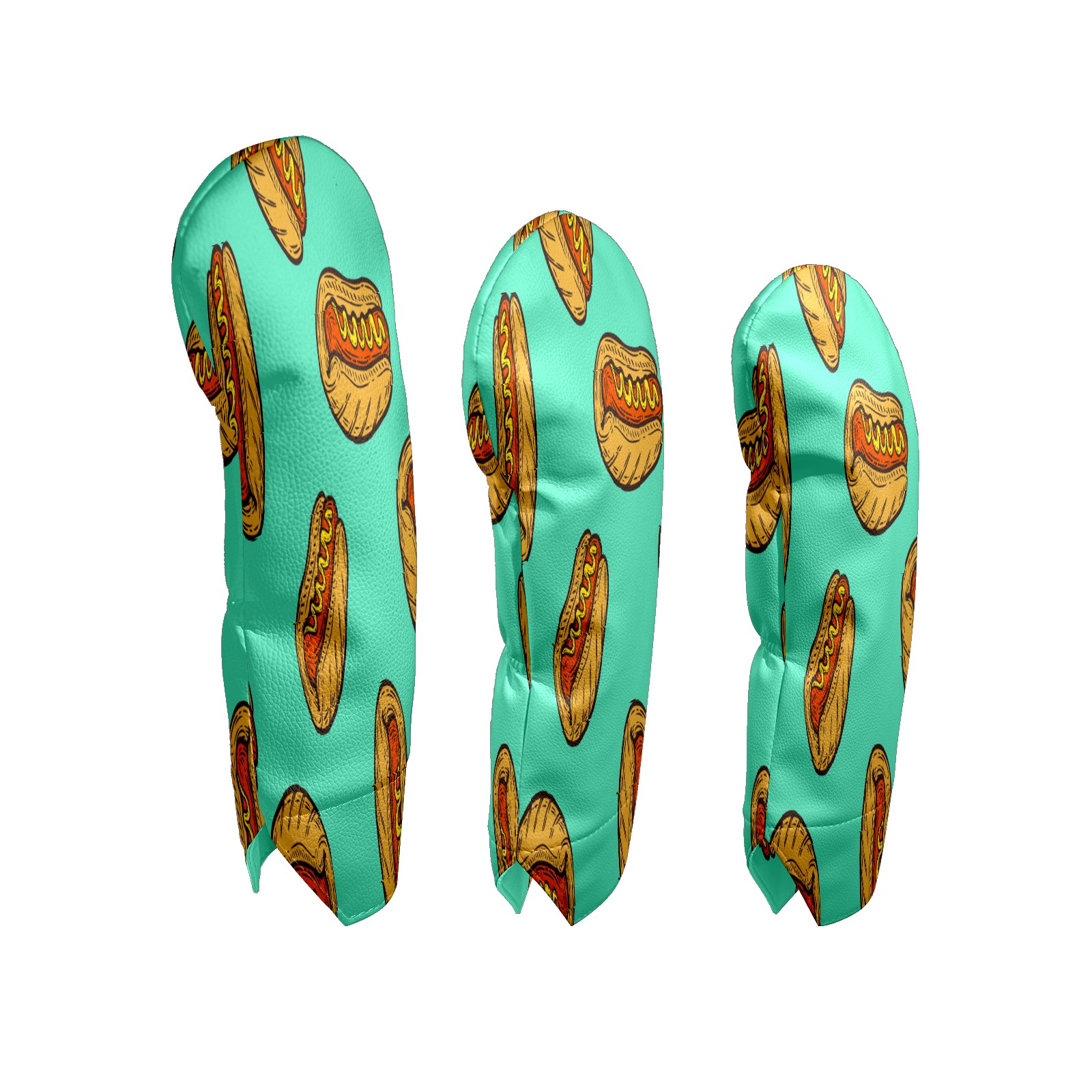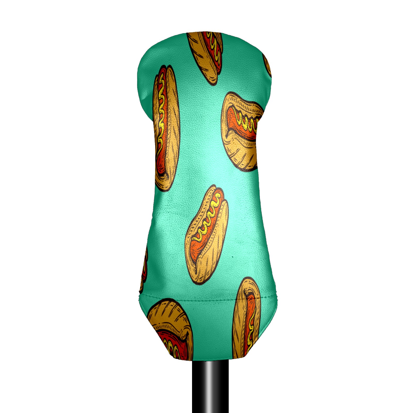PU Leather Golf Putter Head Covers for Driver, Fairway Wood & Hybrid Clubs, Unisex, Fits All Brands Fast Food Hot Dog Pattern Green
