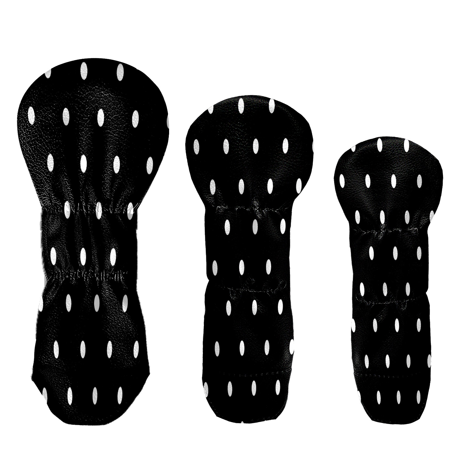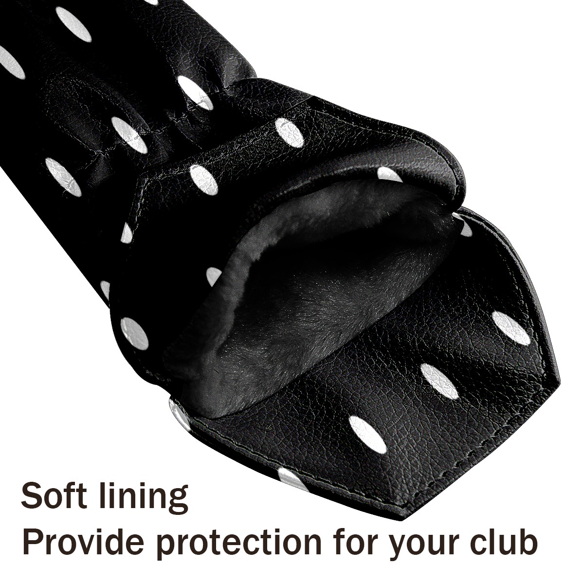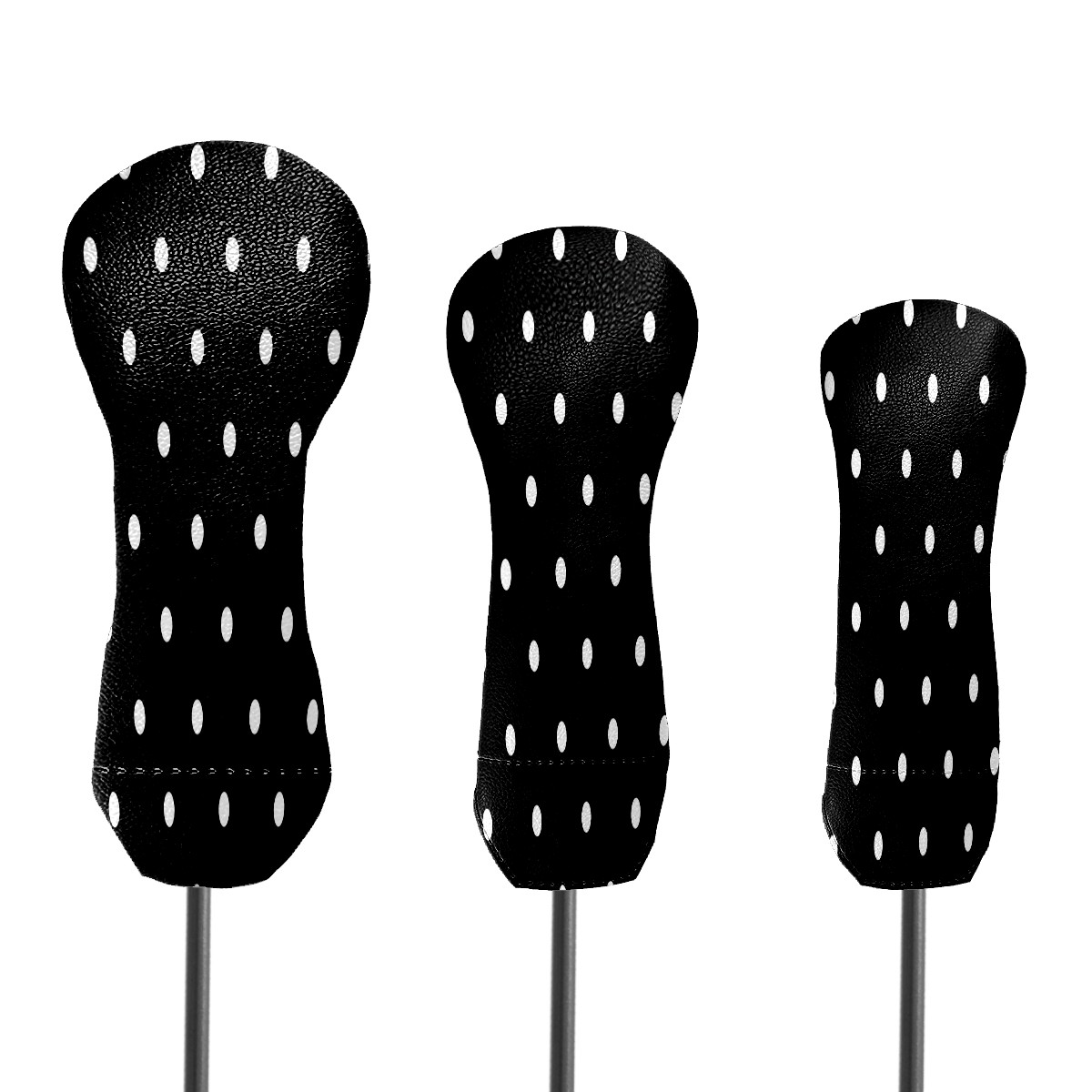 PU Leather Golf Putter Head Covers for Driver, Fairway Wood & Hybrid Clubs, Unisex, Fits All Brands White Black Polka Dot