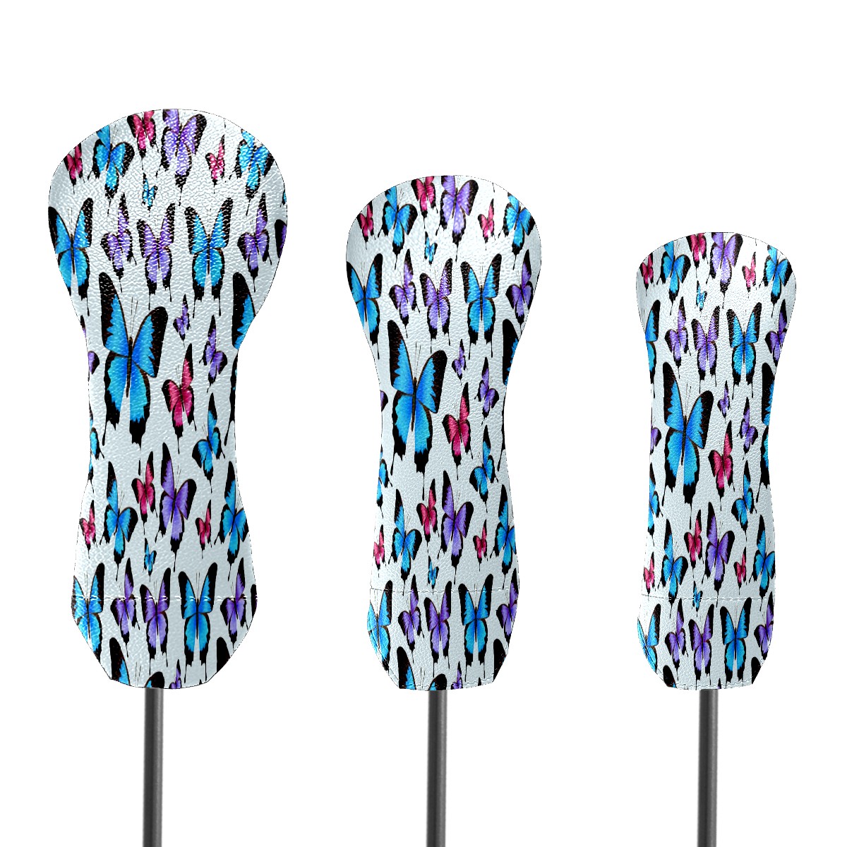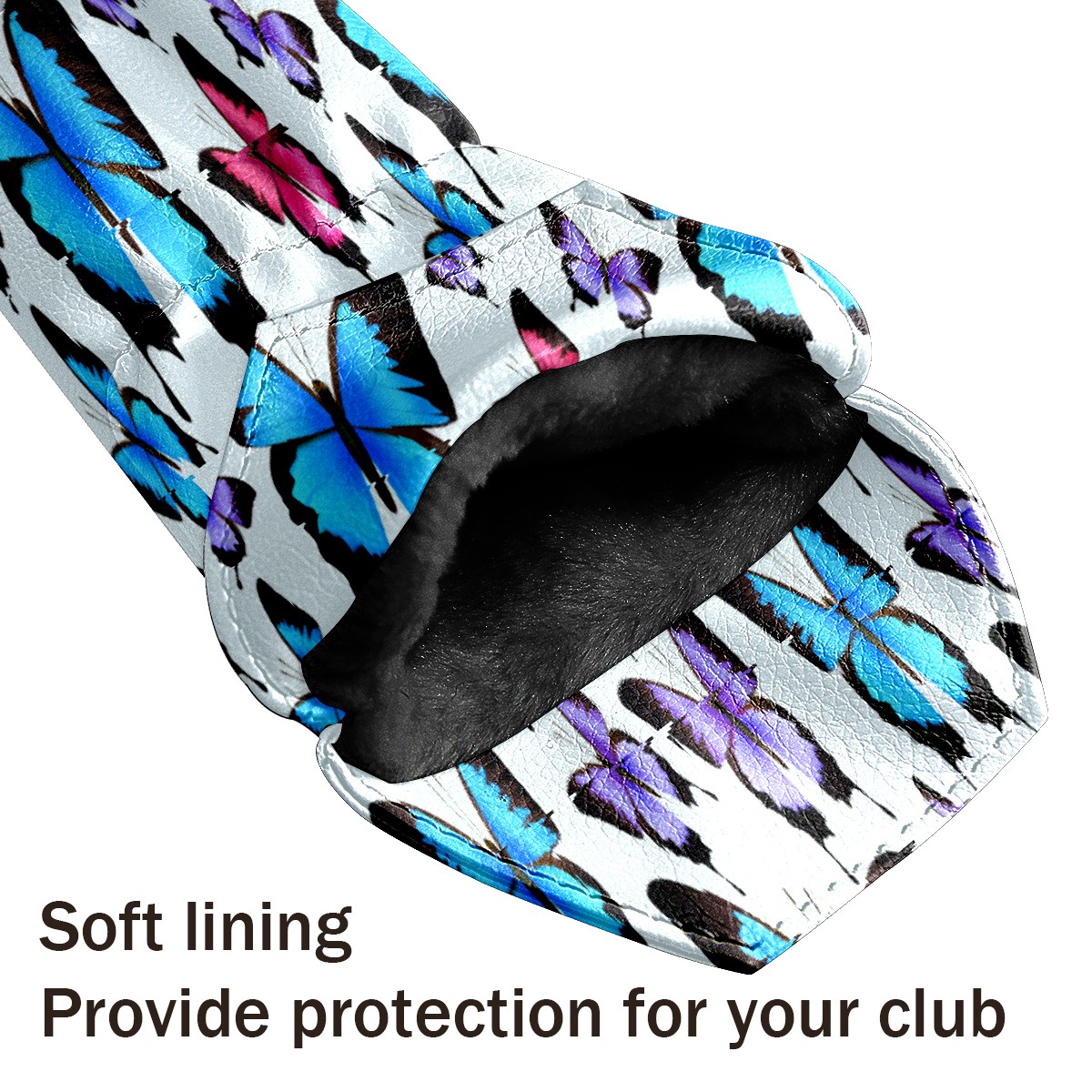 PU Leather Golf Putter Head Covers for Driver, Fairway Wood & Hybrid Clubs, Unisex, Fits All Brands Colorful Butterflies