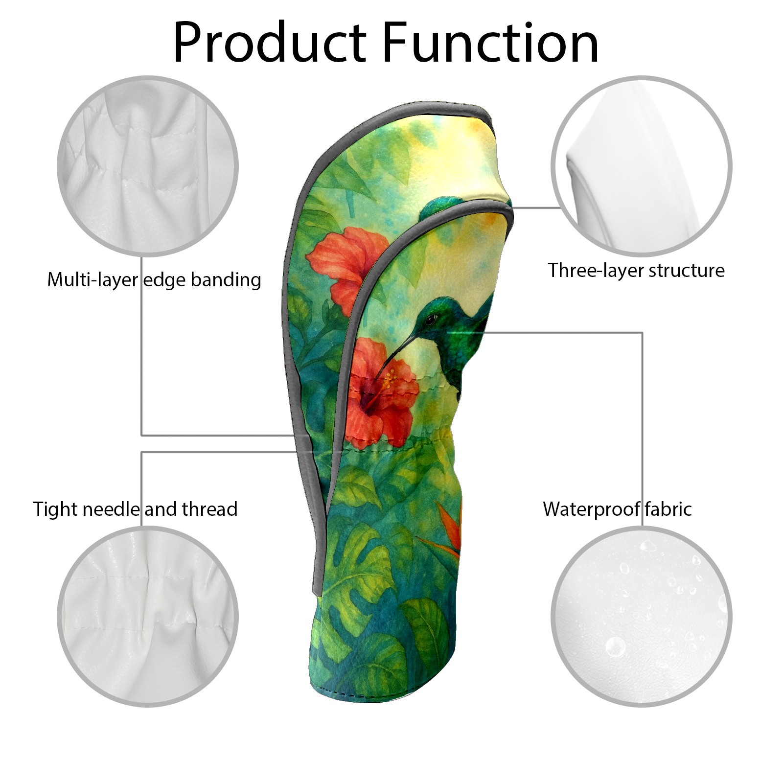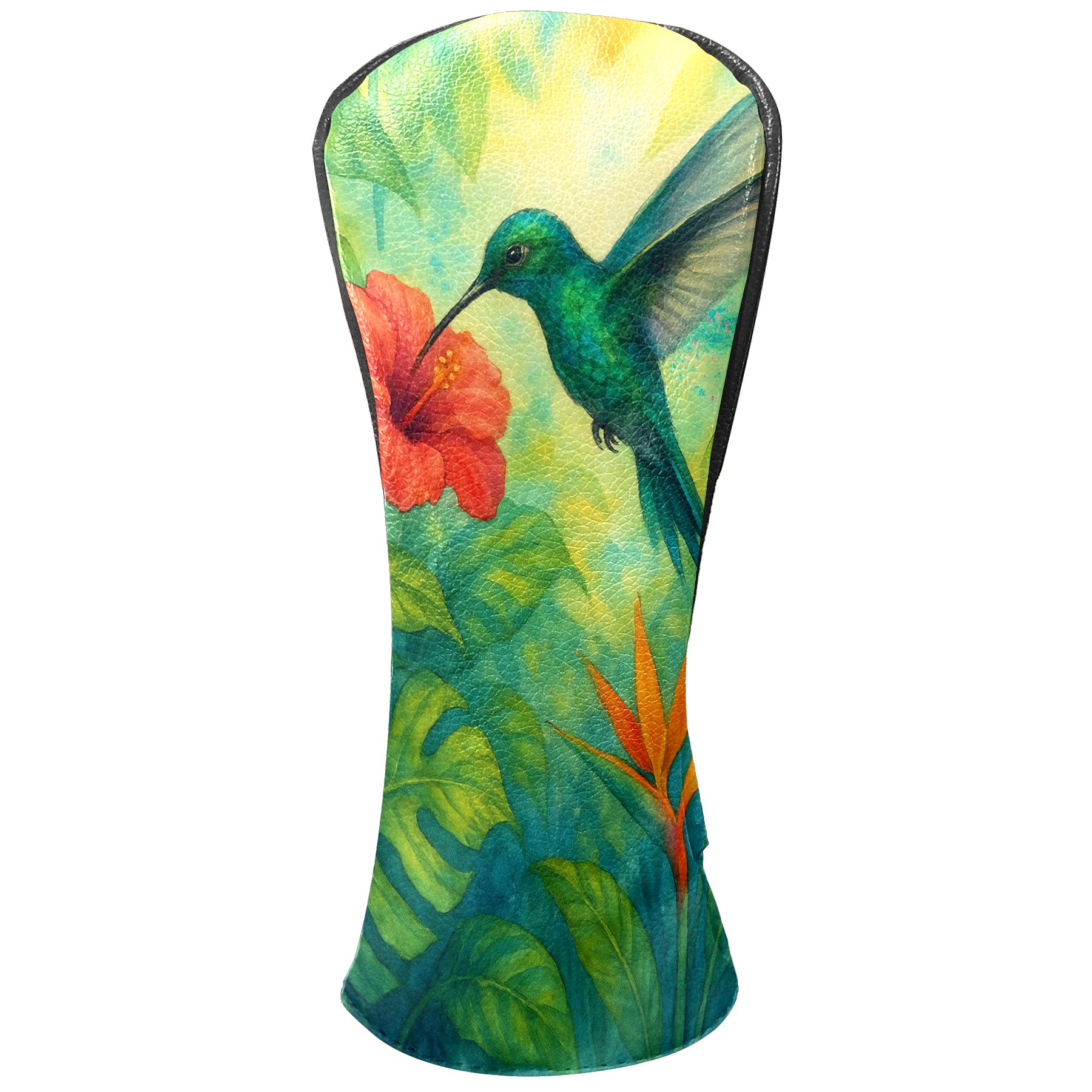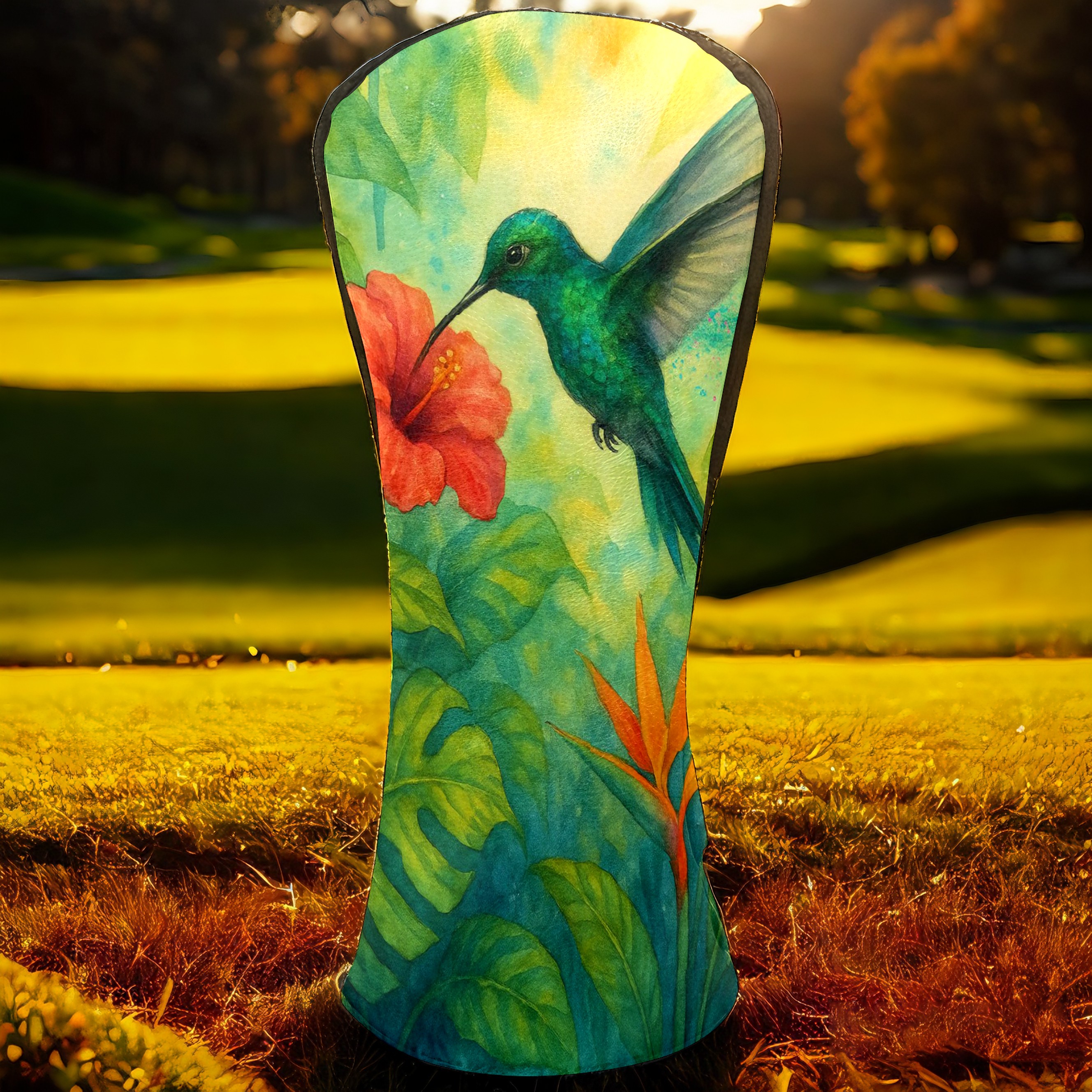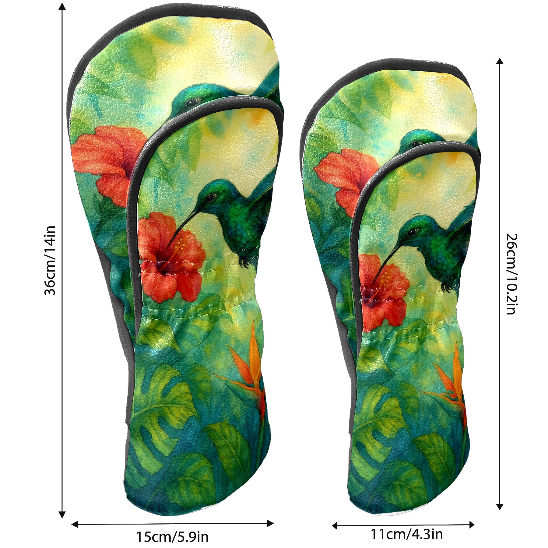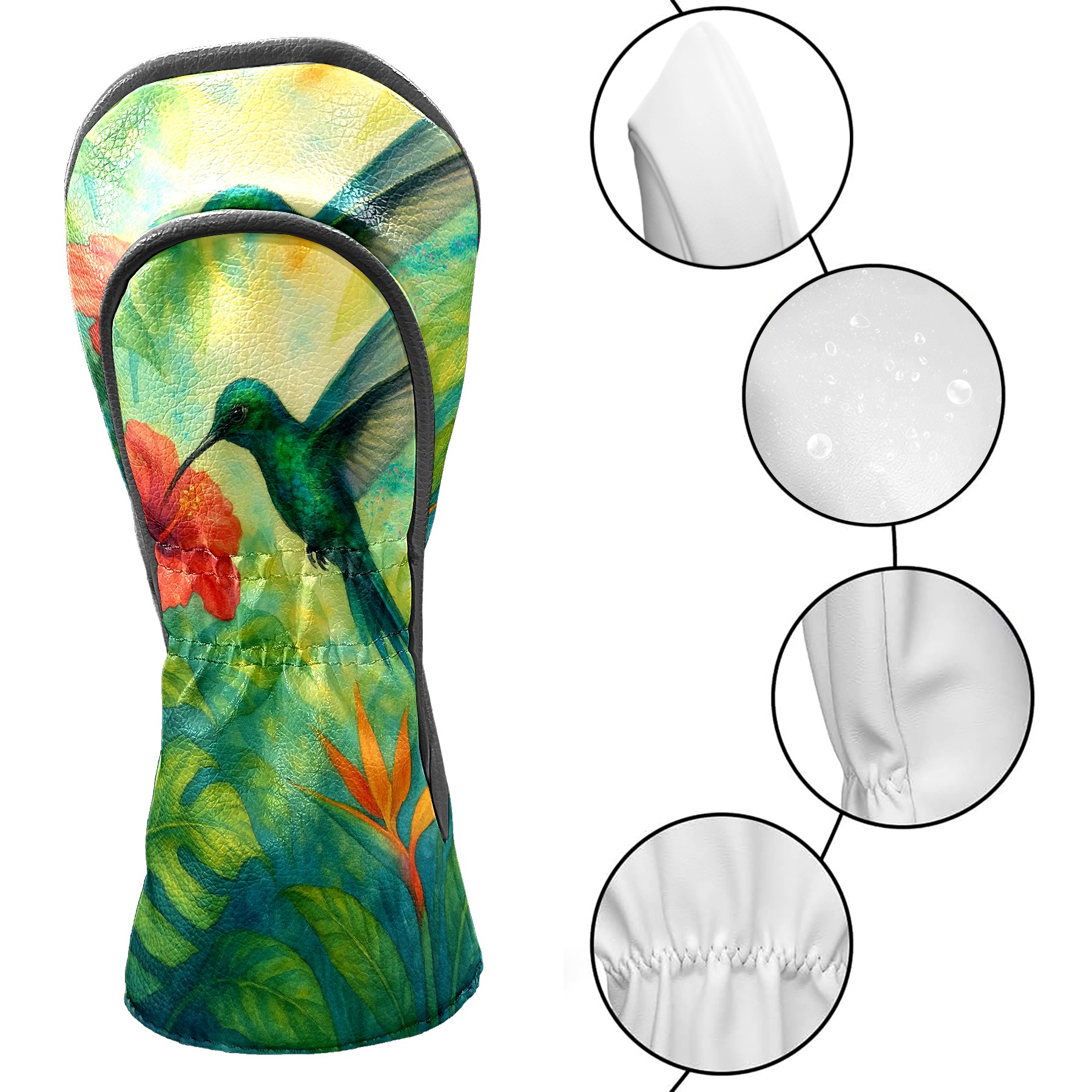 Golf Driver Head Covers Fairway Wood Headcovers, Premium Leather Golf Club Covers with Anti-Scratch Lining 1/3/5 Wood Cover for golf clubs for Women Men (Green Hummingbird Watercolor)