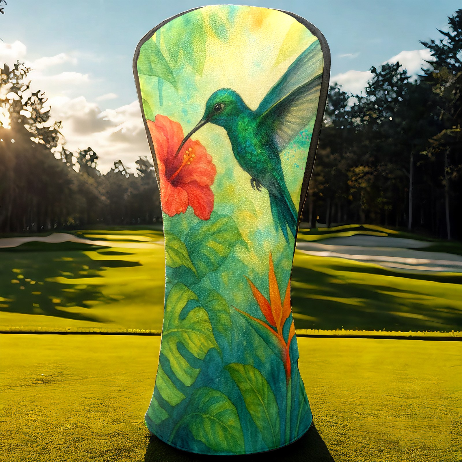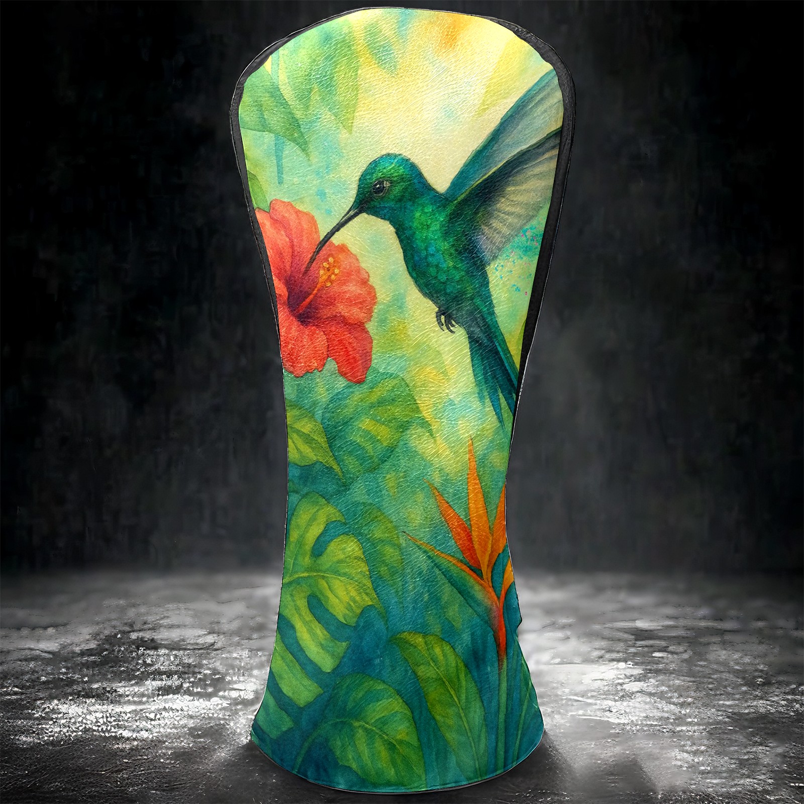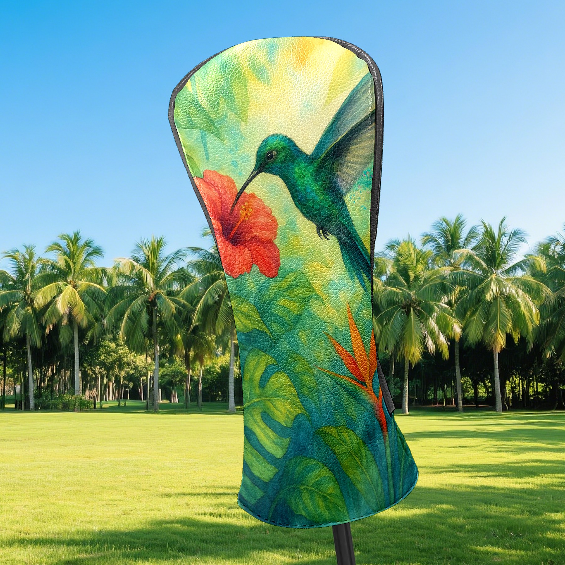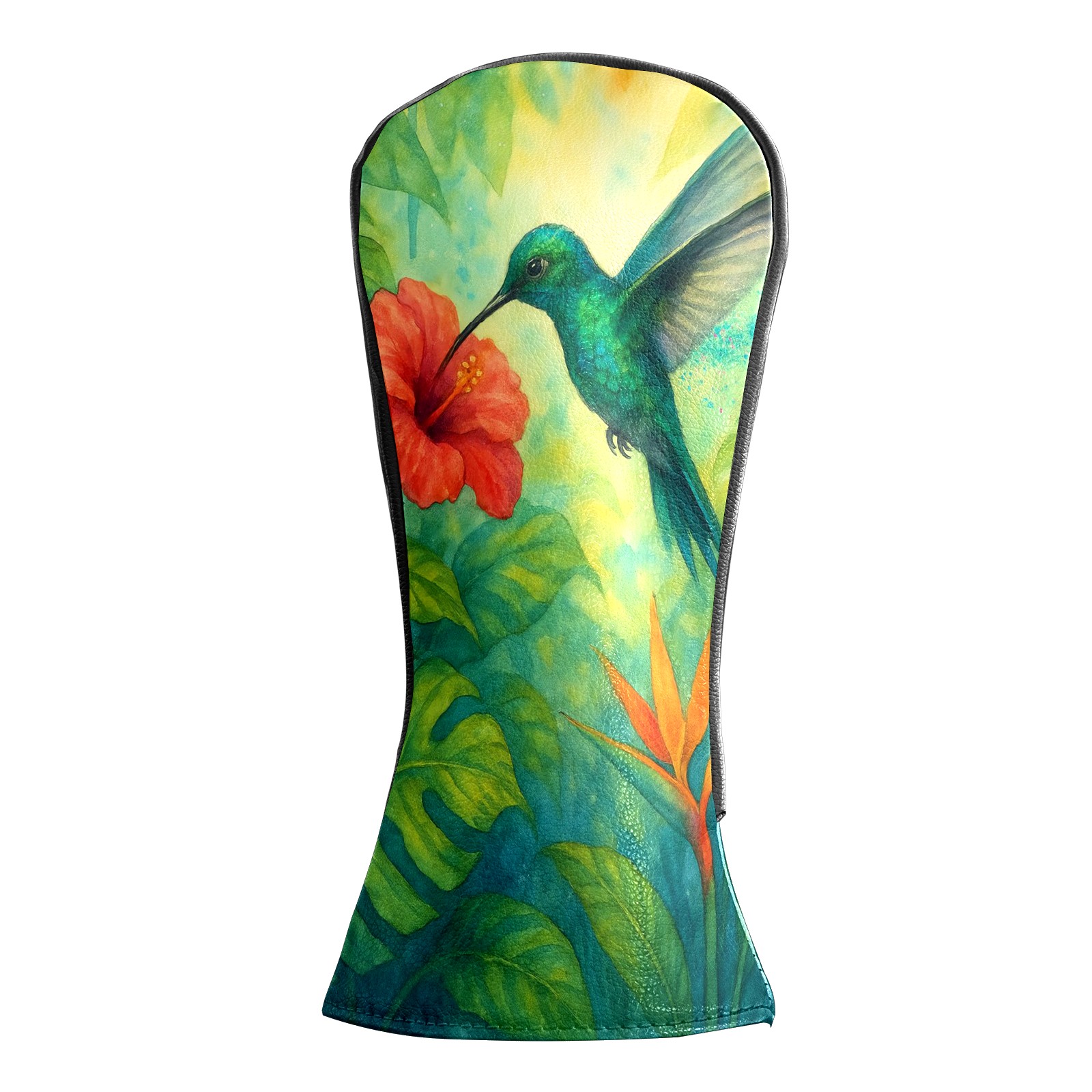 Golf Driver Head Covers Fairway Wood Headcovers, Premium Leather Golf Club Covers with Anti-Scratch Lining 1/3/5 Wood Cover for golf clubs for Women Men (Green Hummingbird Watercolor)