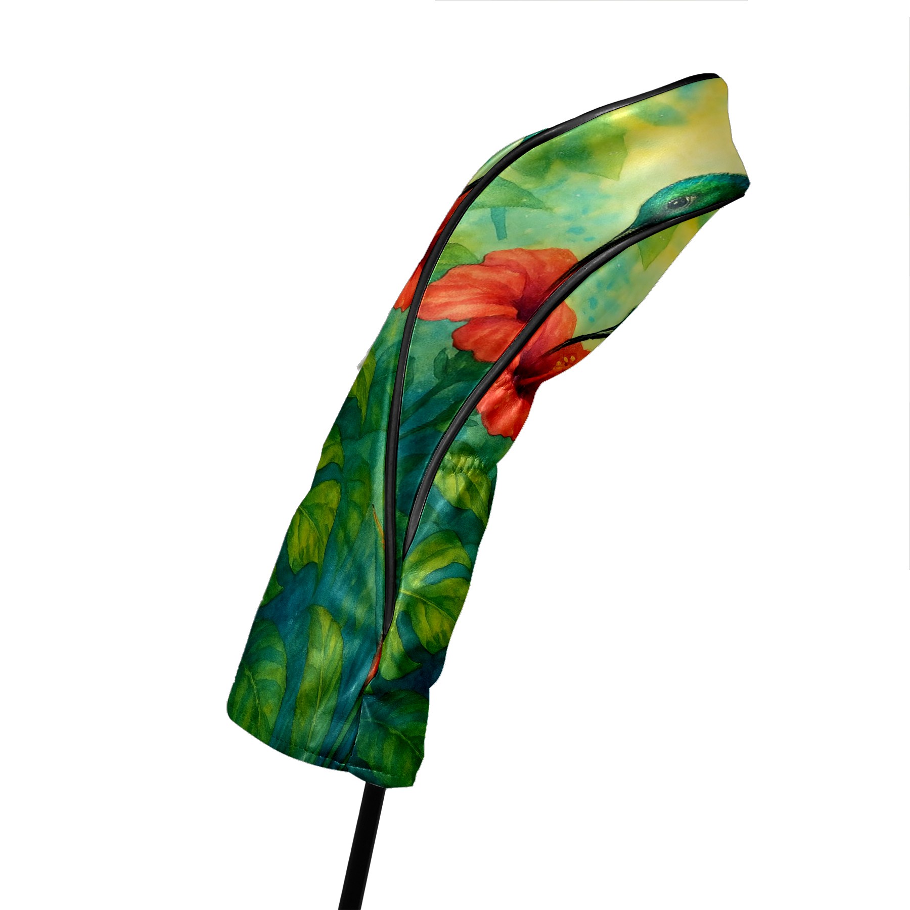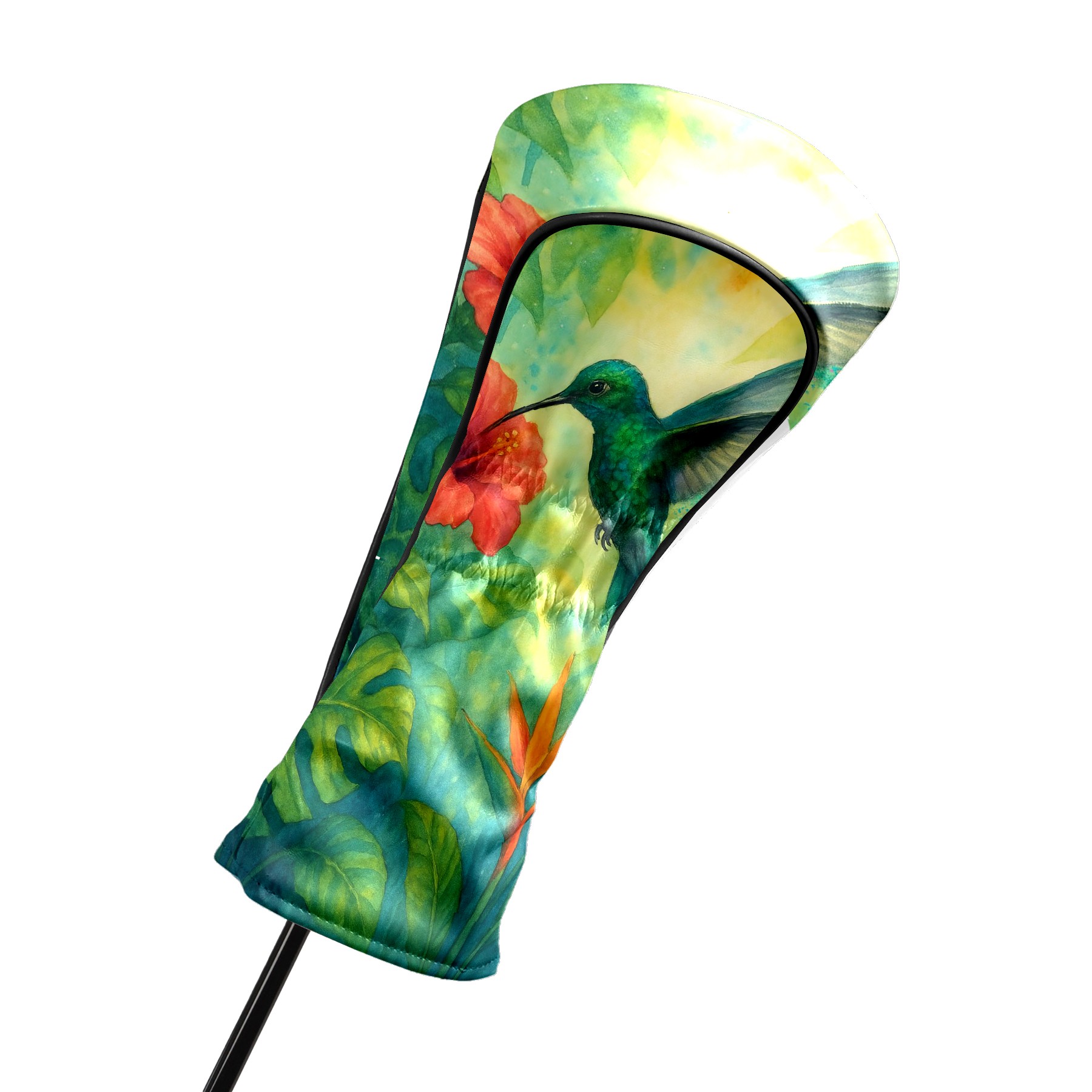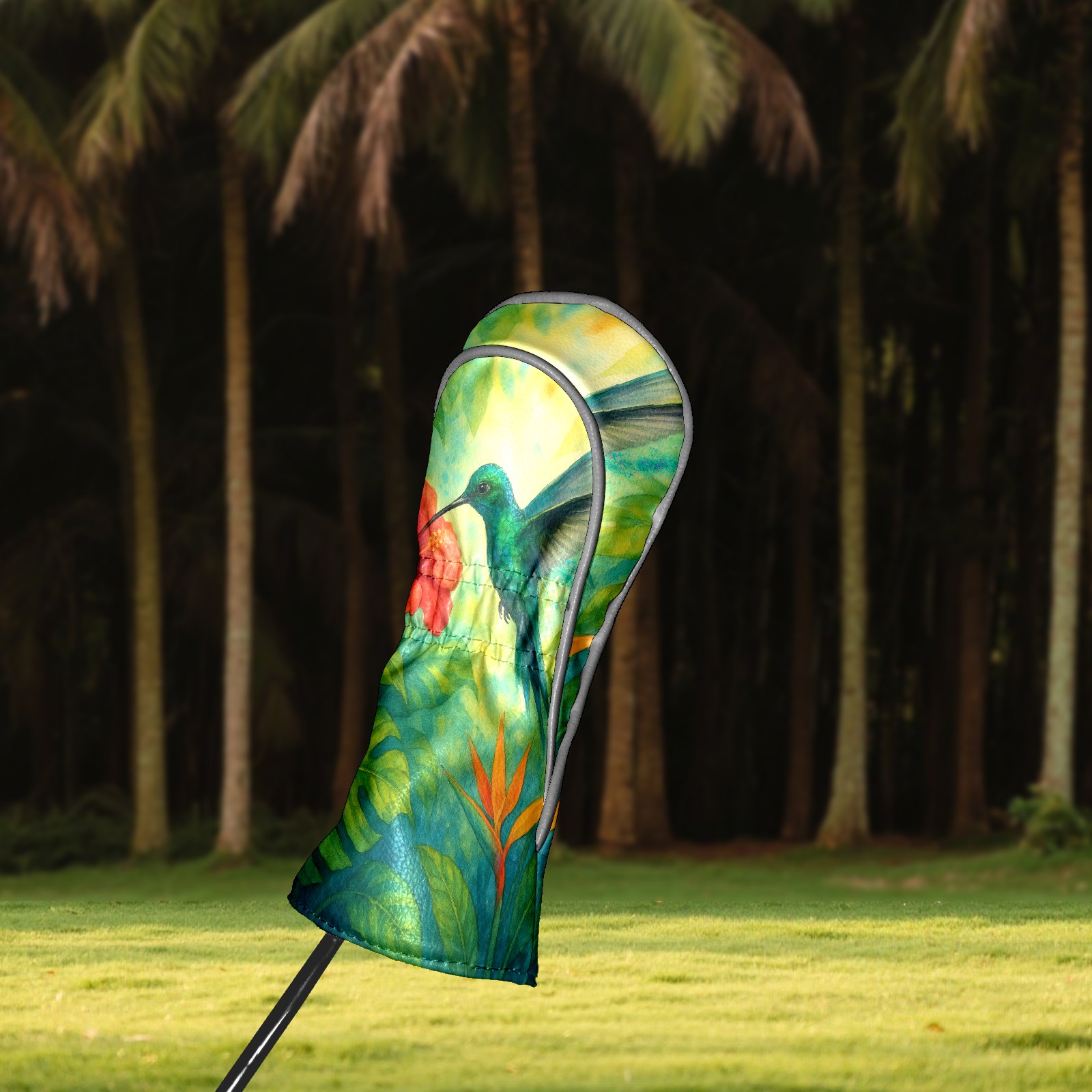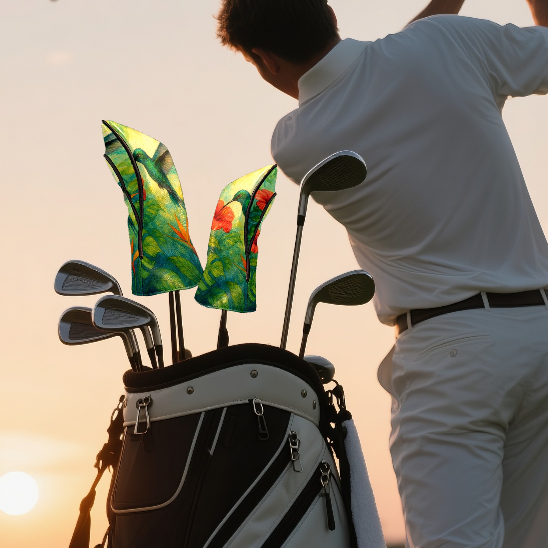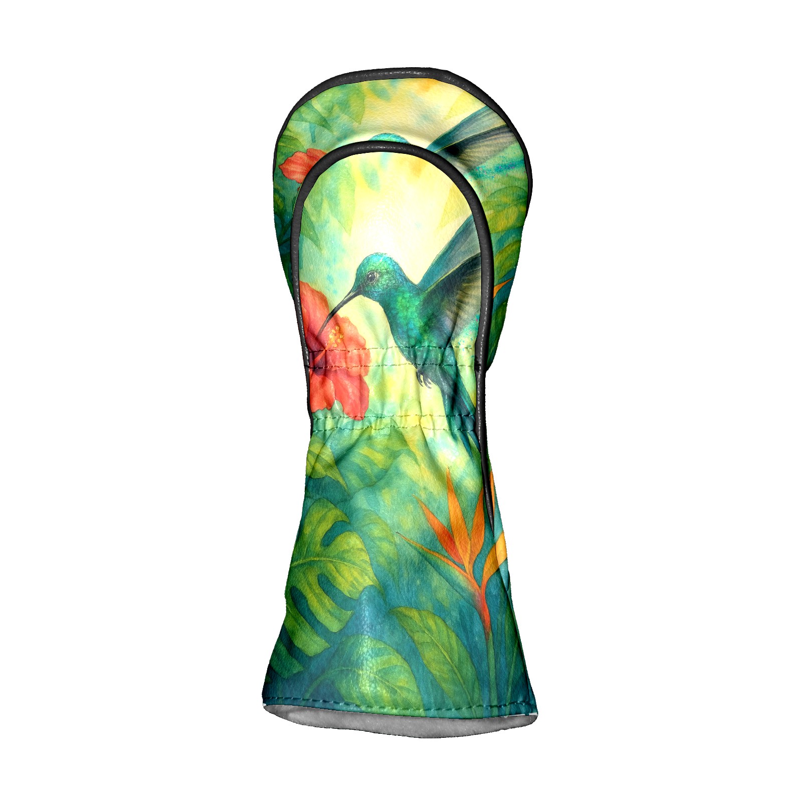 Golf Driver Head Covers Fairway Wood Headcovers, Premium Leather Golf Club Covers with Anti-Scratch Lining 1/3/5 Wood Cover for golf clubs for Women Men (Green Hummingbird Watercolor)