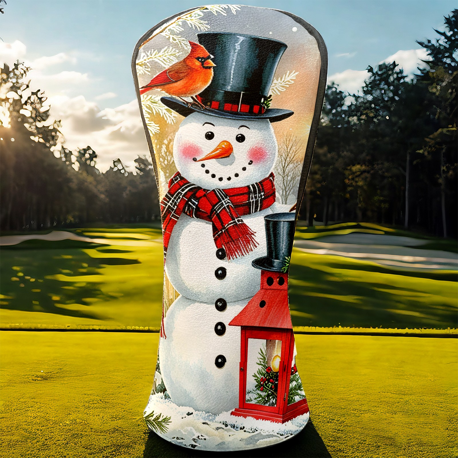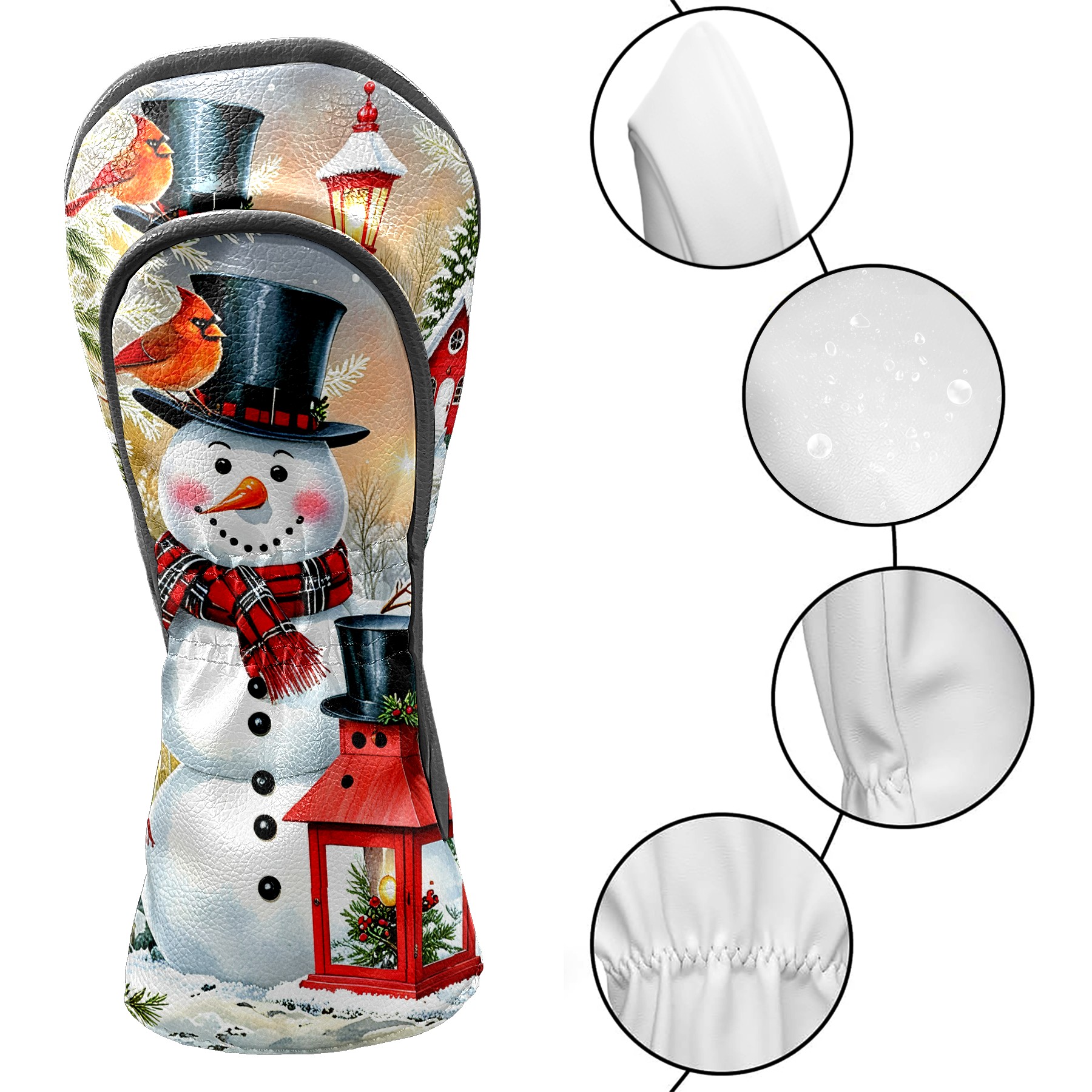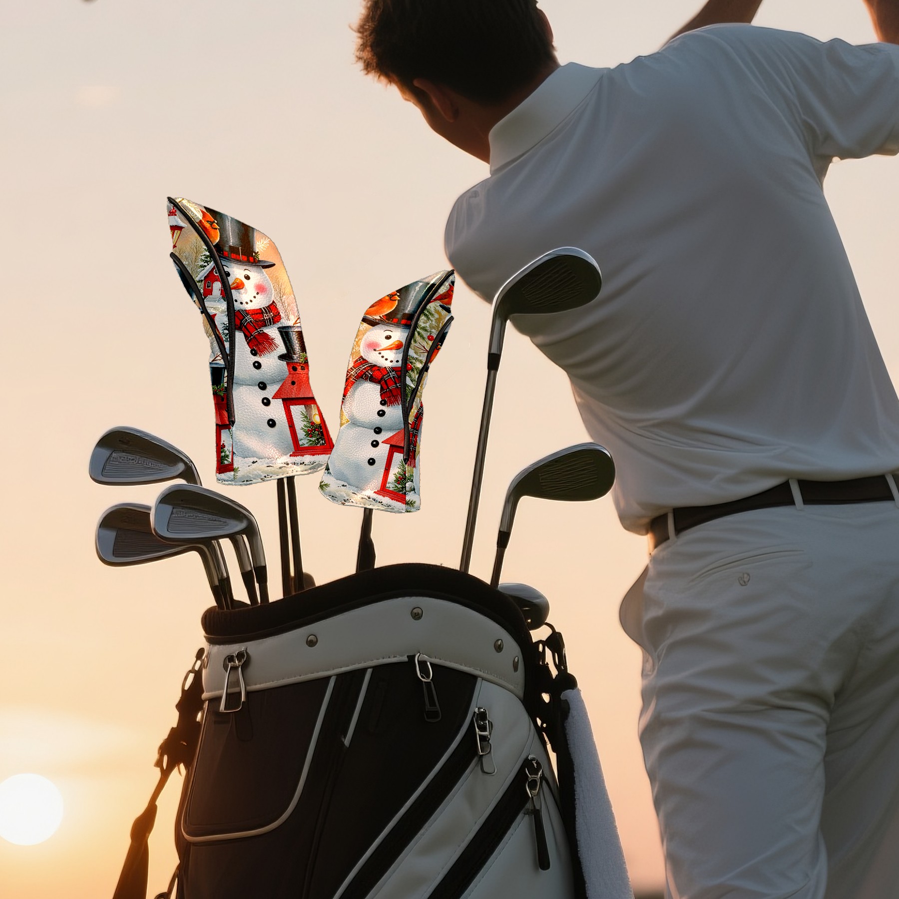 Golf Driver Head Covers Fairway Wood Headcovers, Premium Leather Golf Club Covers with Anti-Scratch Lining 1/3/5 Wood Cover for golf clubs for Women Men (Snowman Winter)