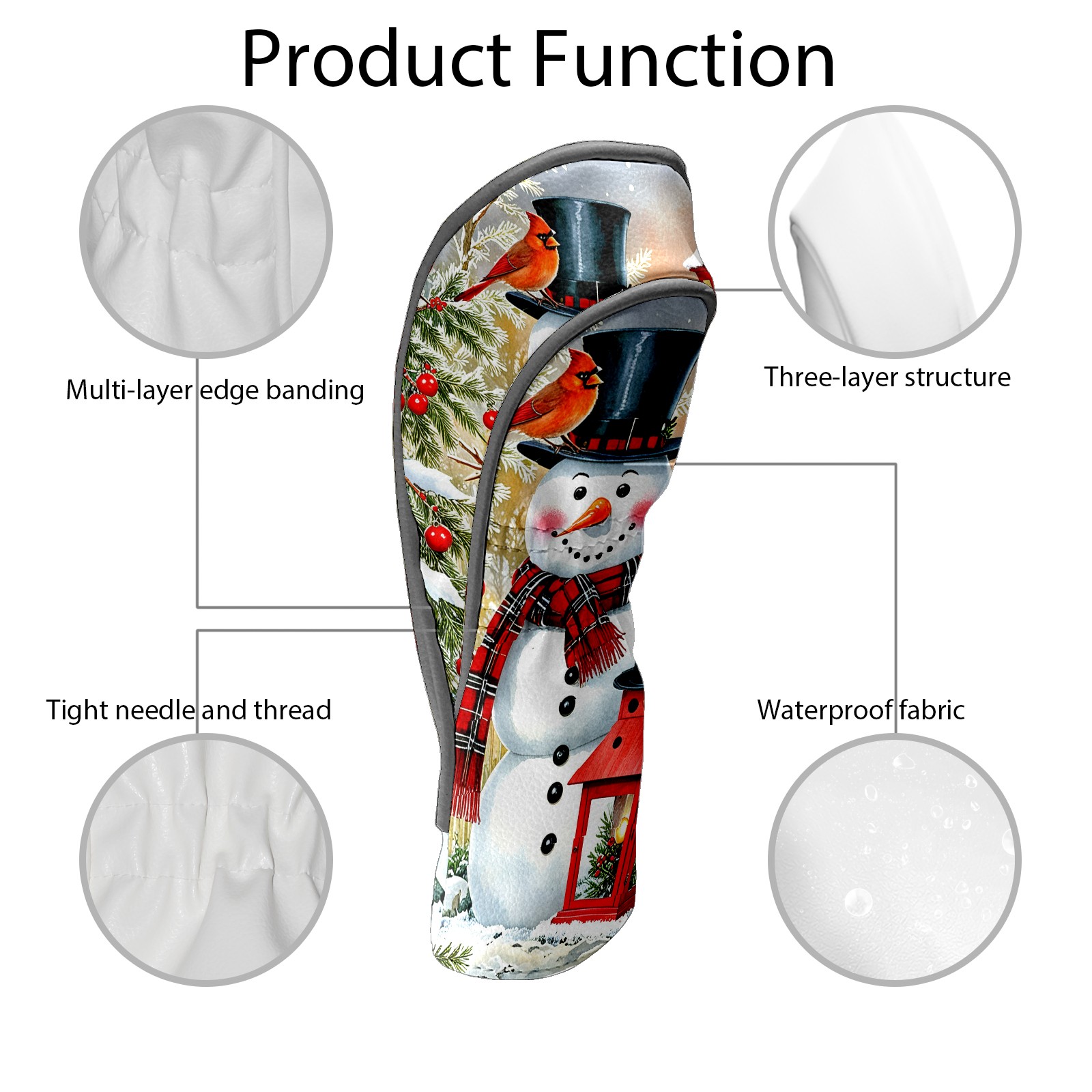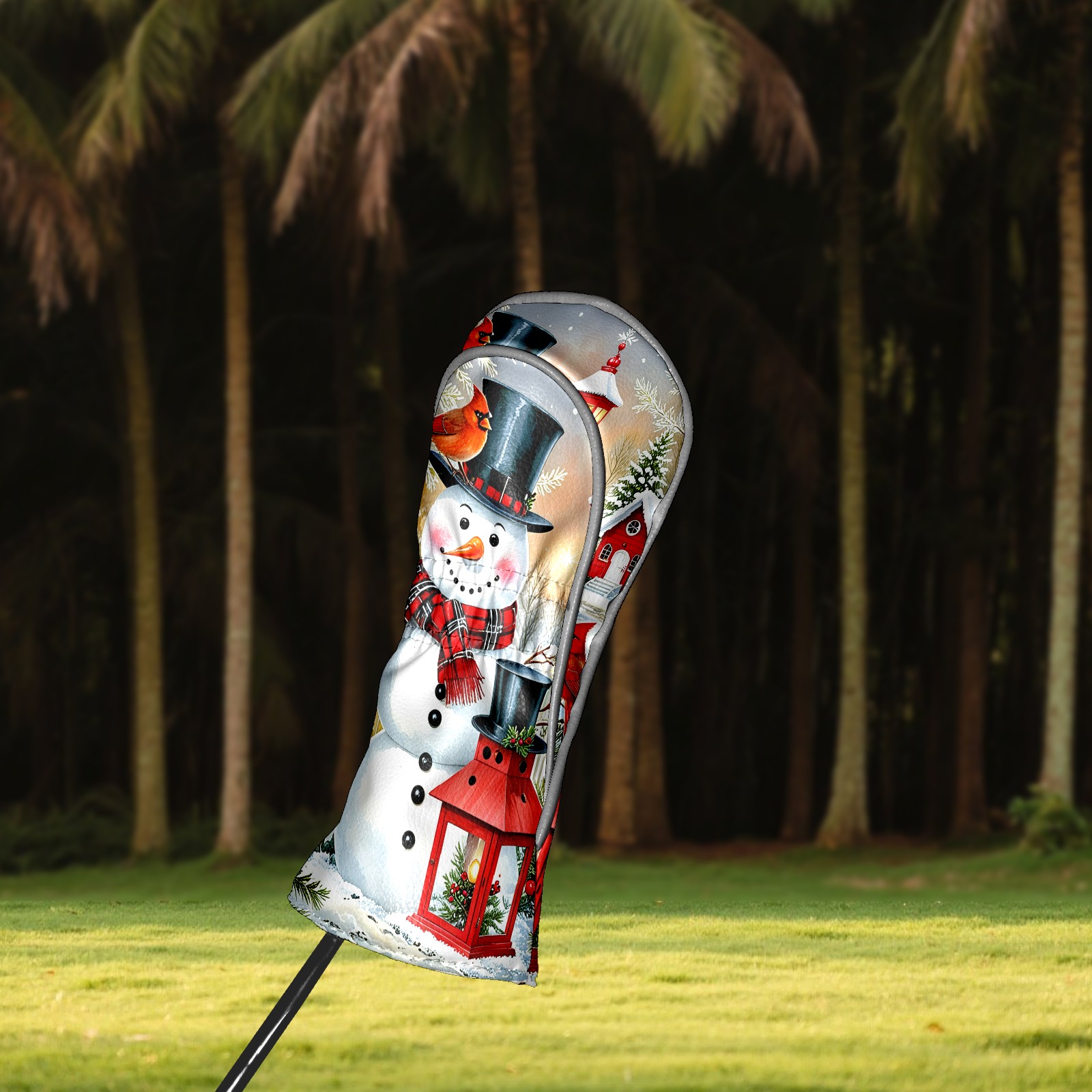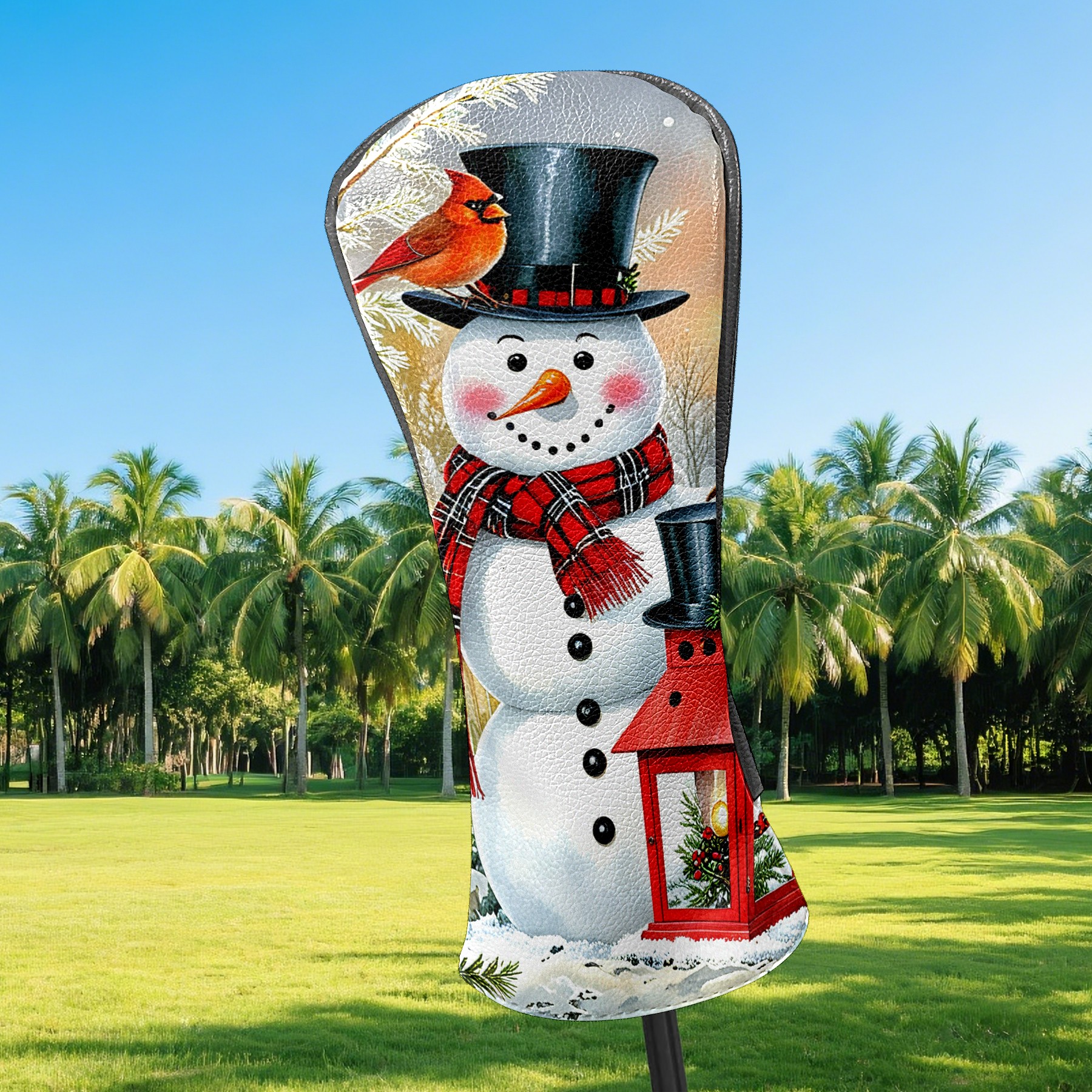 Golf Driver Head Covers Fairway Wood Headcovers, Premium Leather Golf Club Covers with Anti-Scratch Lining 1/3/5 Wood Cover for golf clubs for Women Men (Snowman Winter)