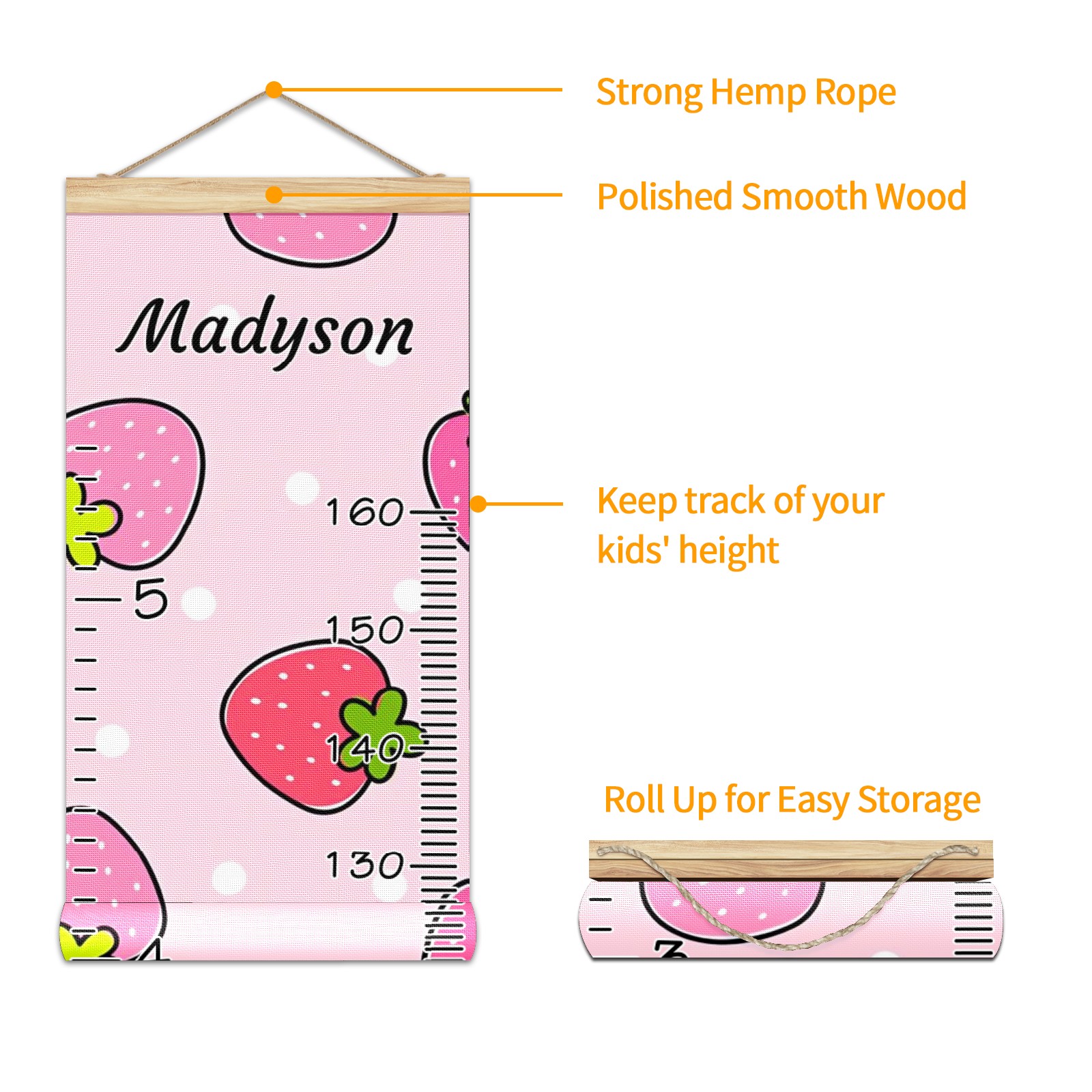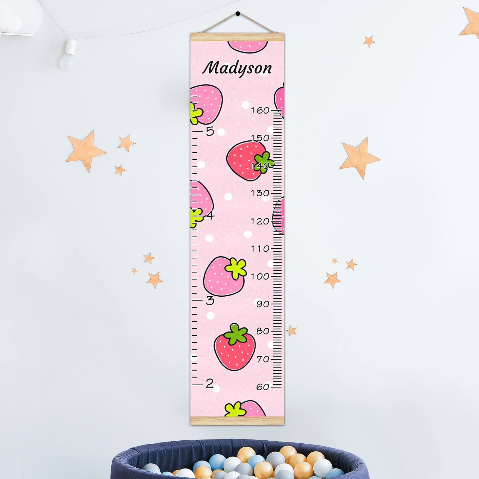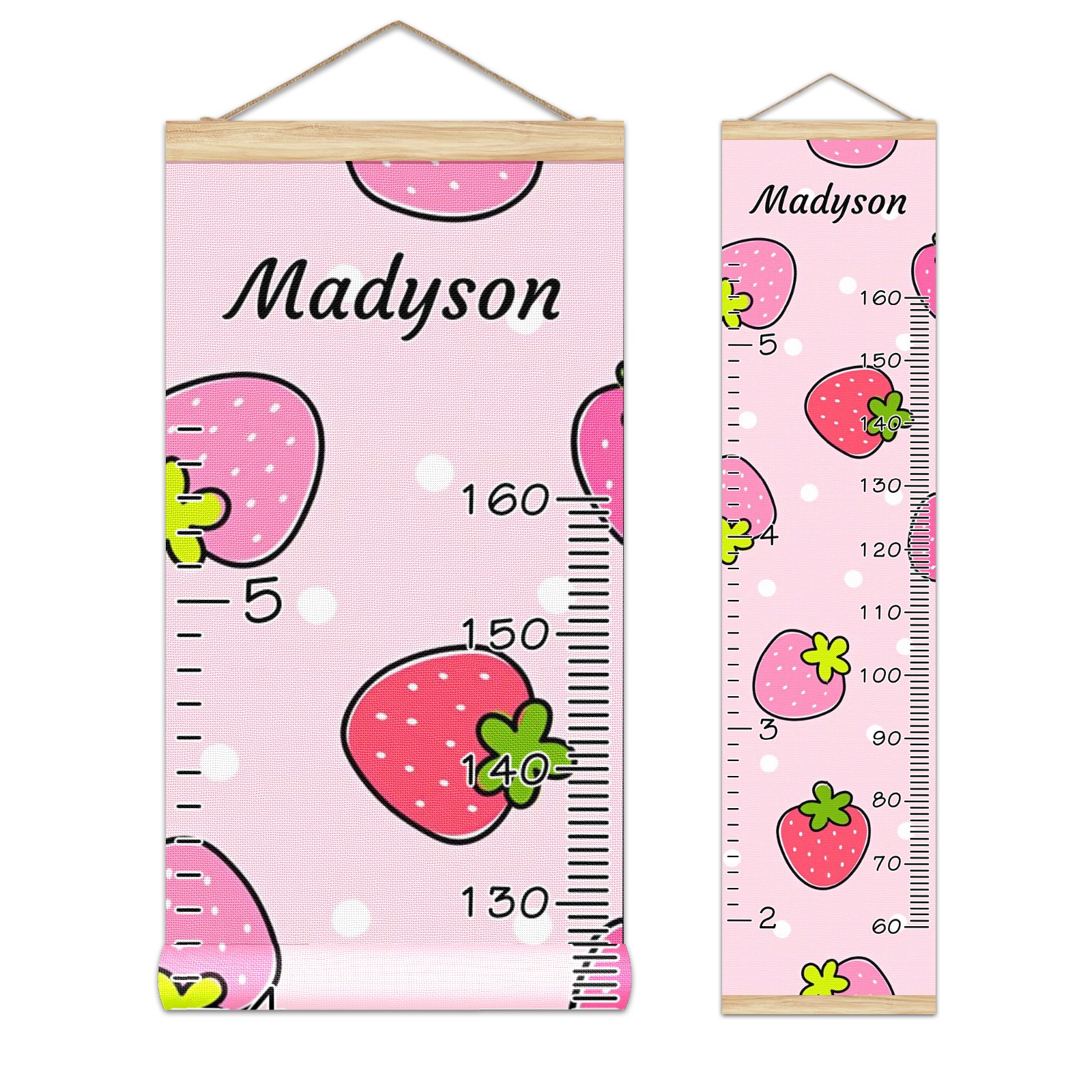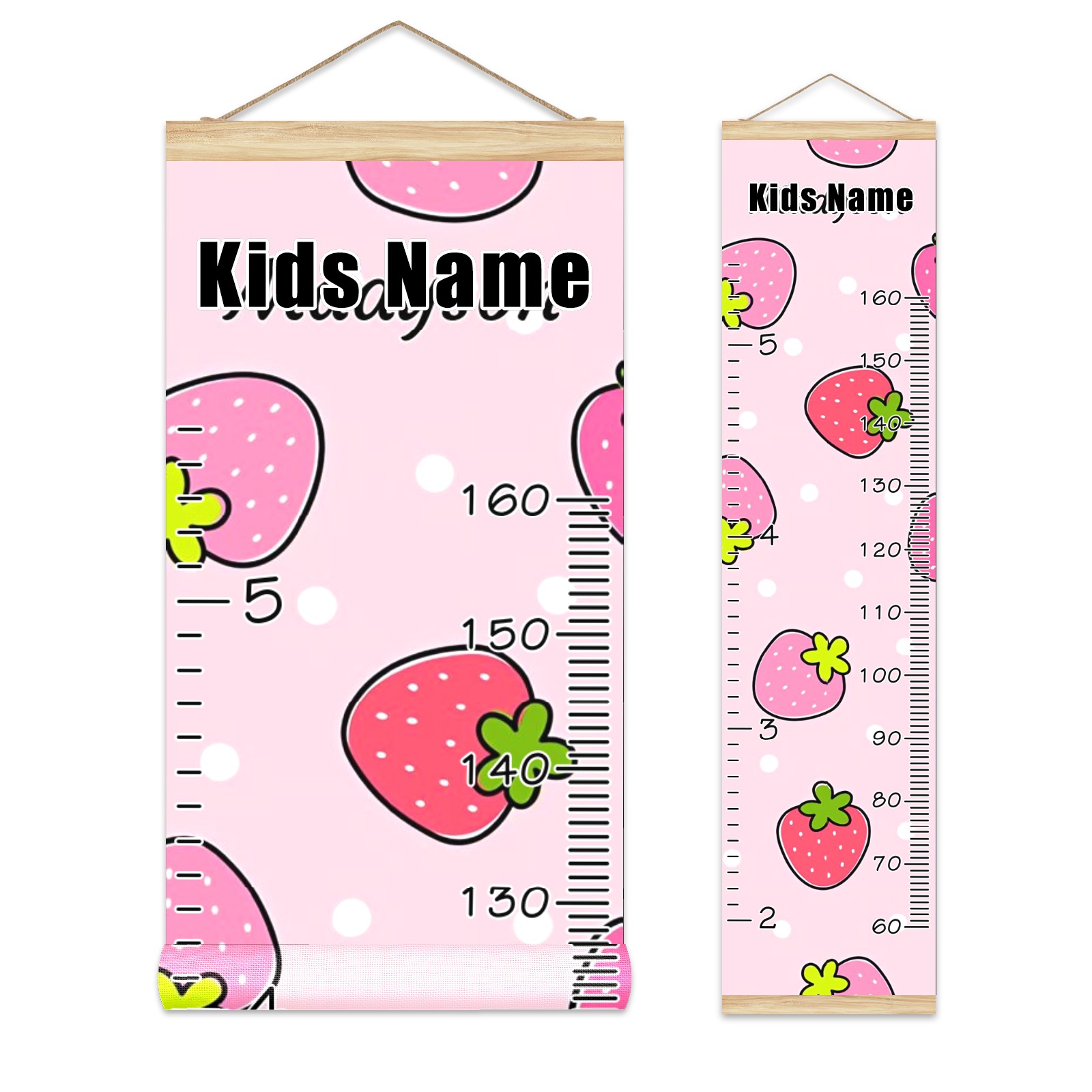 Personalized Kids Name Growth Chart Ruler for Wall Wood Frame Canvas Height Measure Chart 13.4x56 in Hanging Growth Chart Cute Strawberry Pink9.27 Boys Girls Room Decor