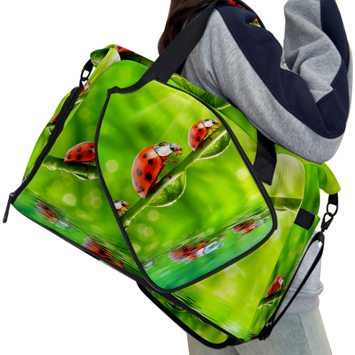 Pickleball Tote Bag for Women Girls Ladybugs Walking Plant Branch Water Sunshine Green (1)