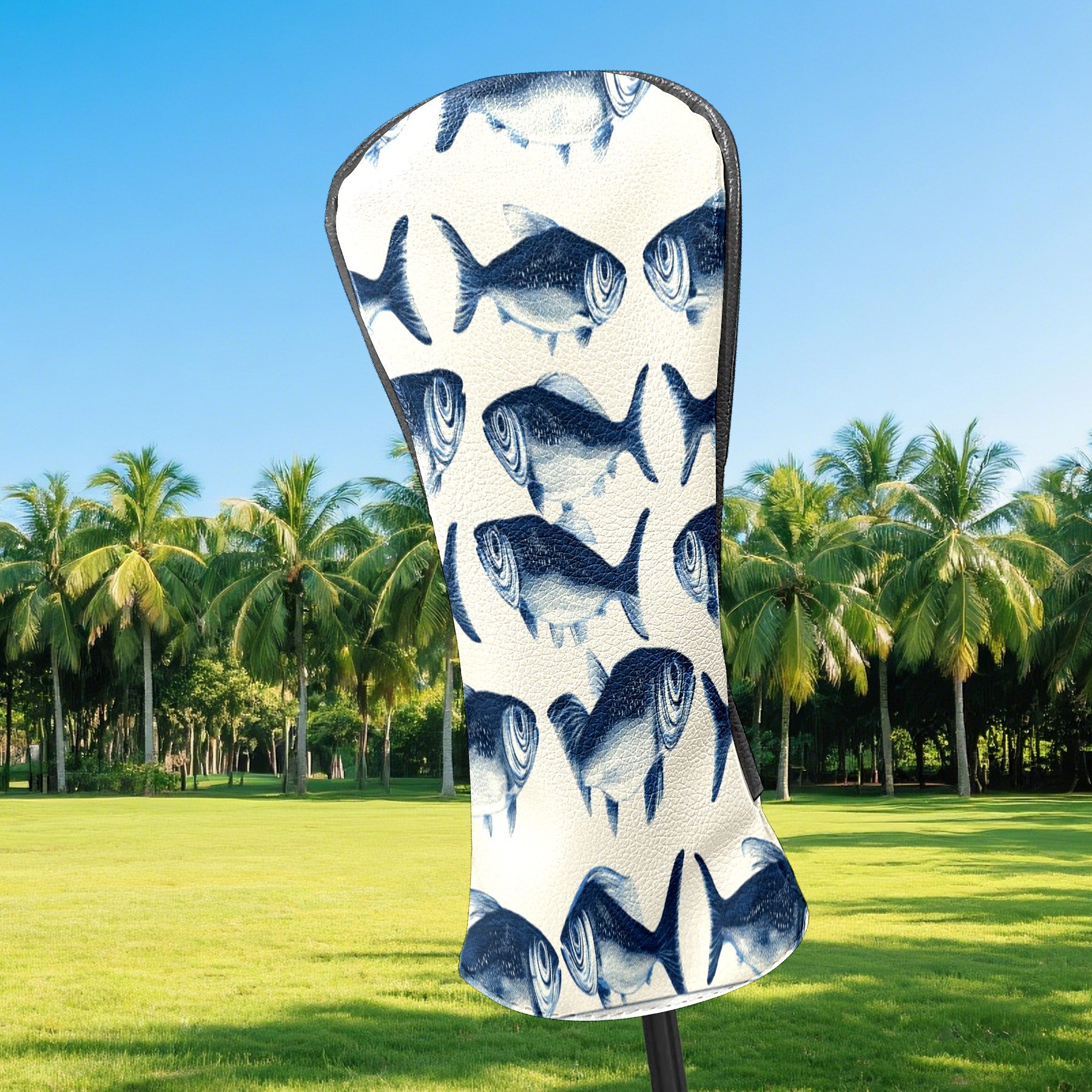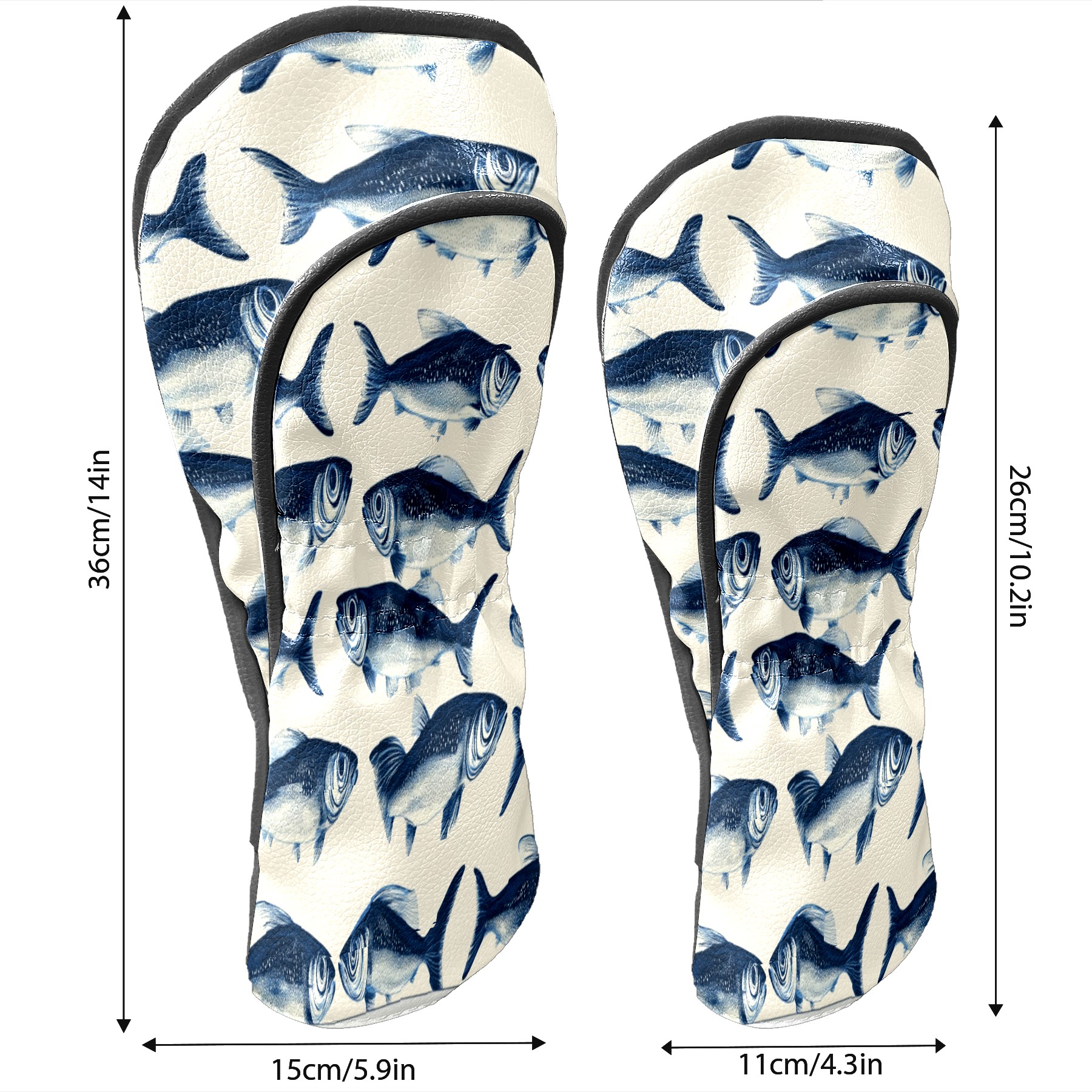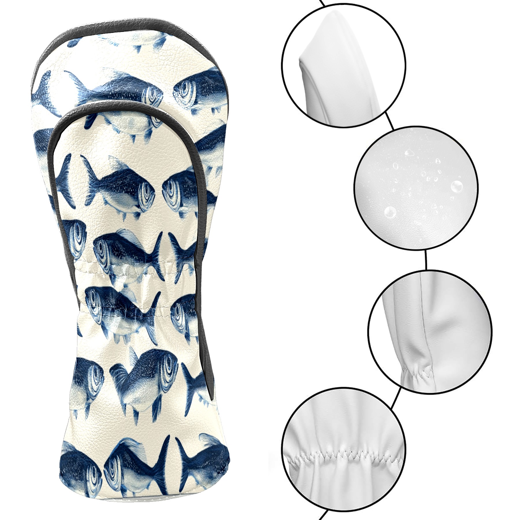 Golf Head Covers for Woods and Driver Waterproof Leather Golf Club Head Covers for Women Men Golf Driver Fairway Wood Headcover Fish Pattern