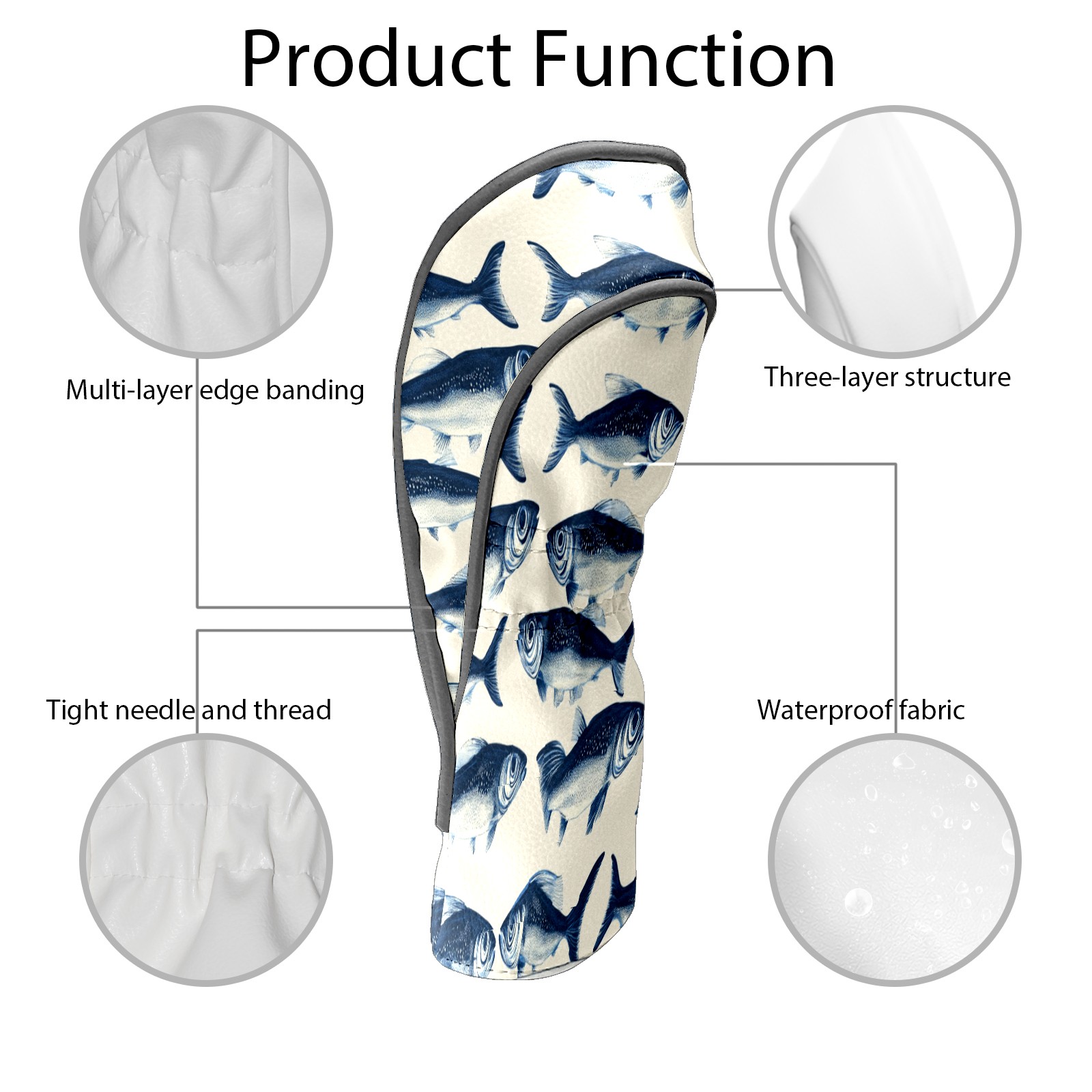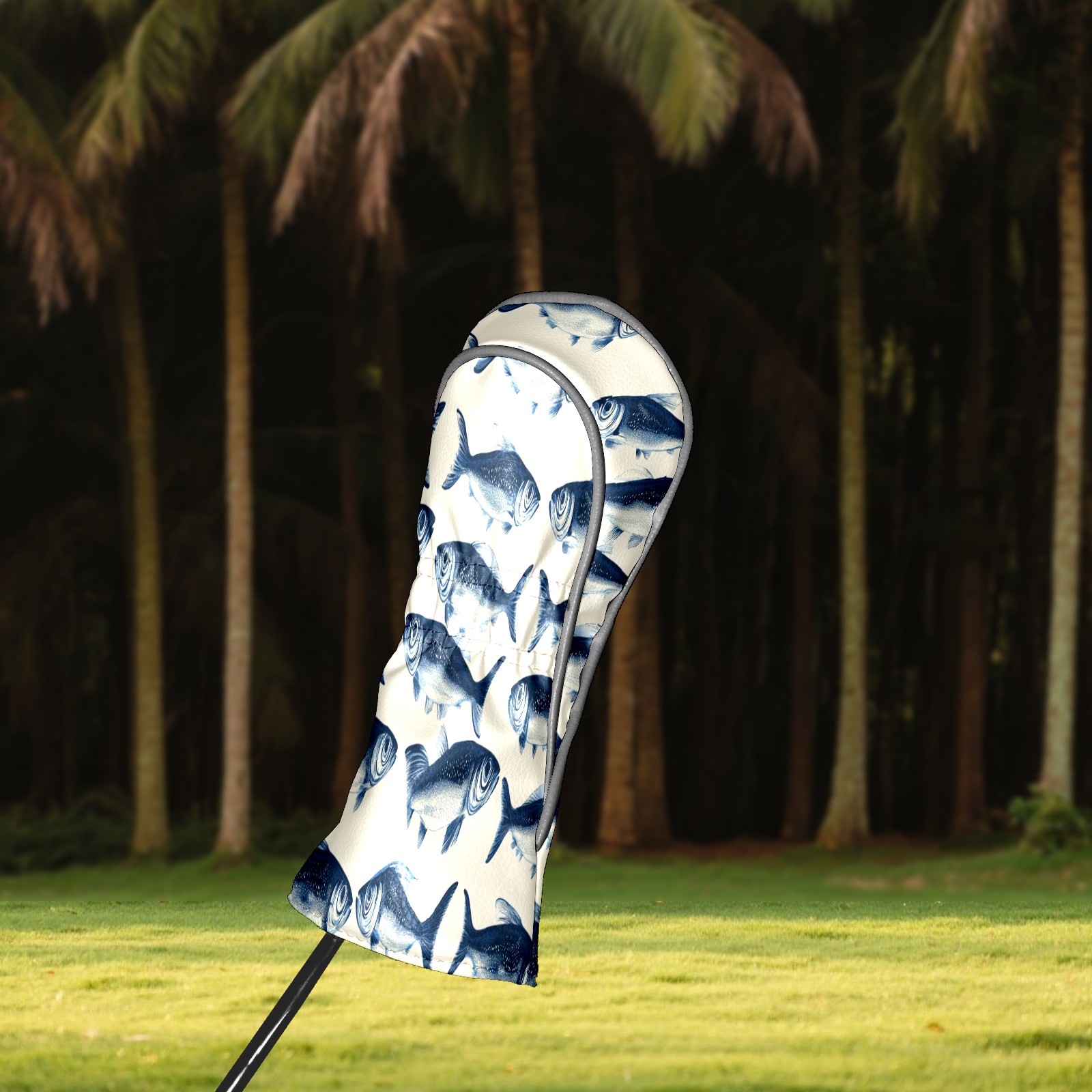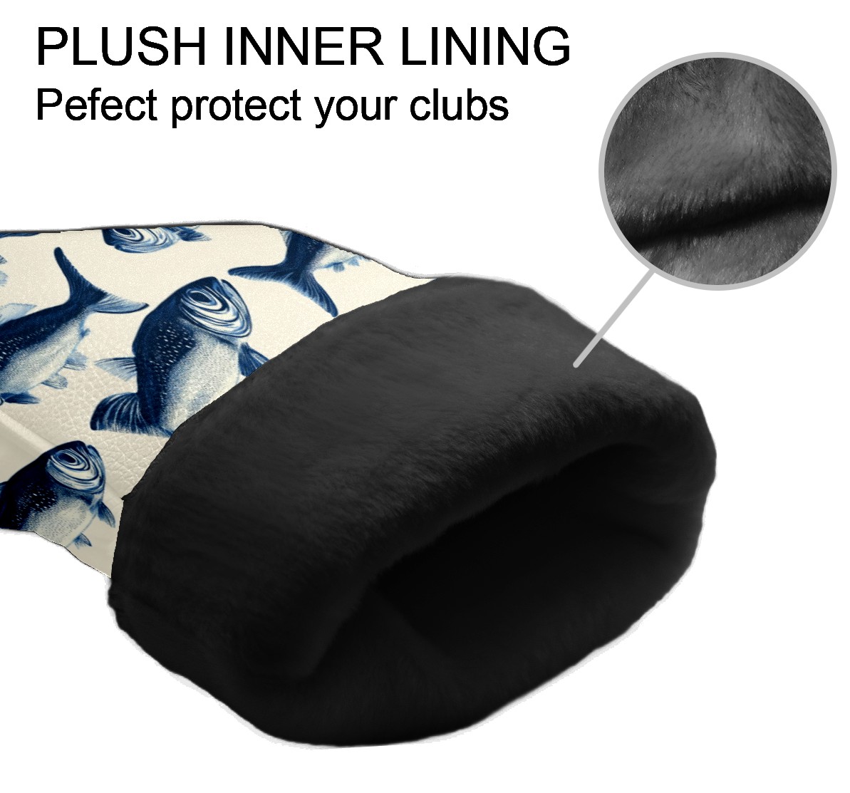 Golf Head Covers for Woods and Driver Waterproof Leather Golf Club Head Covers for Women Men Golf Driver Fairway Wood Headcover Fish Pattern