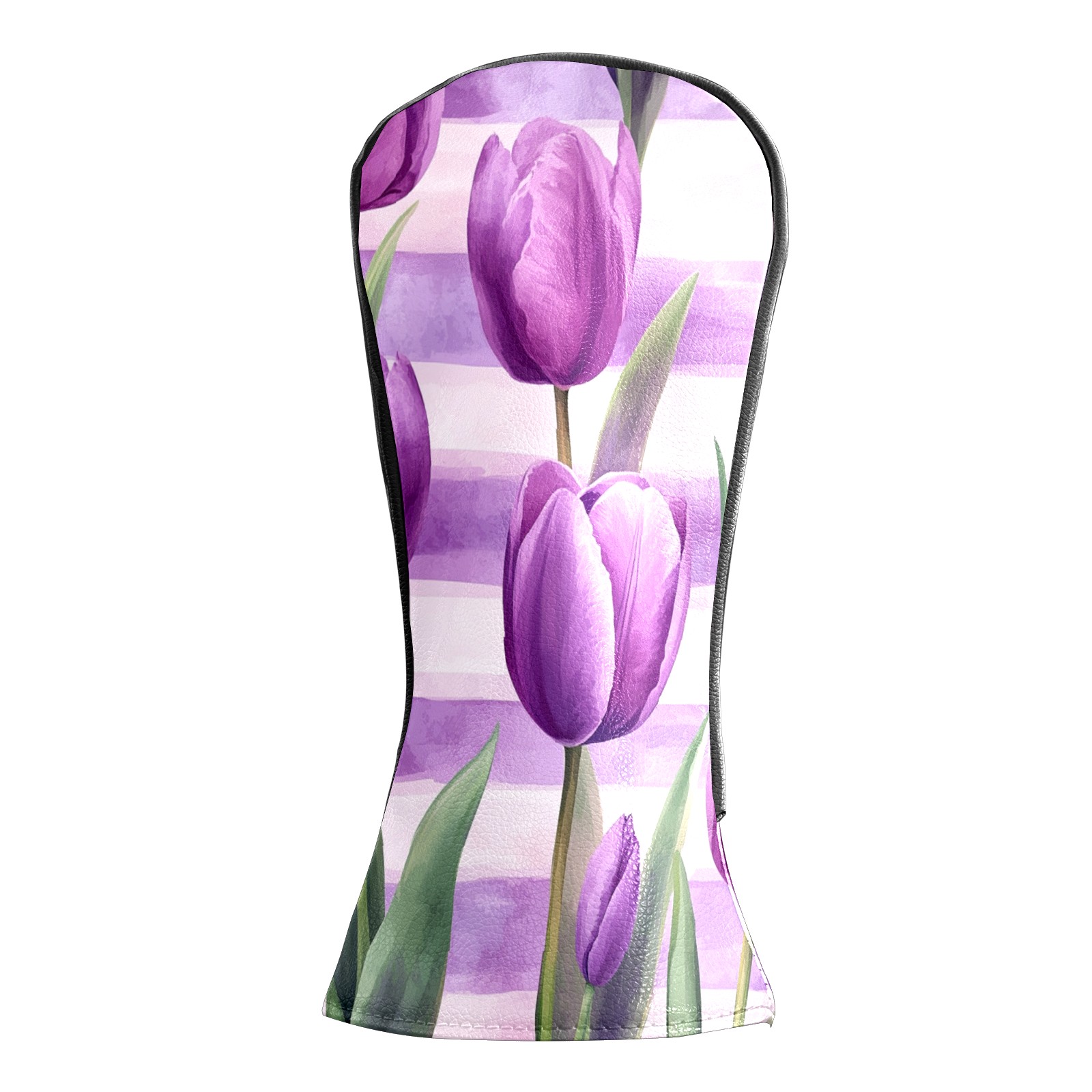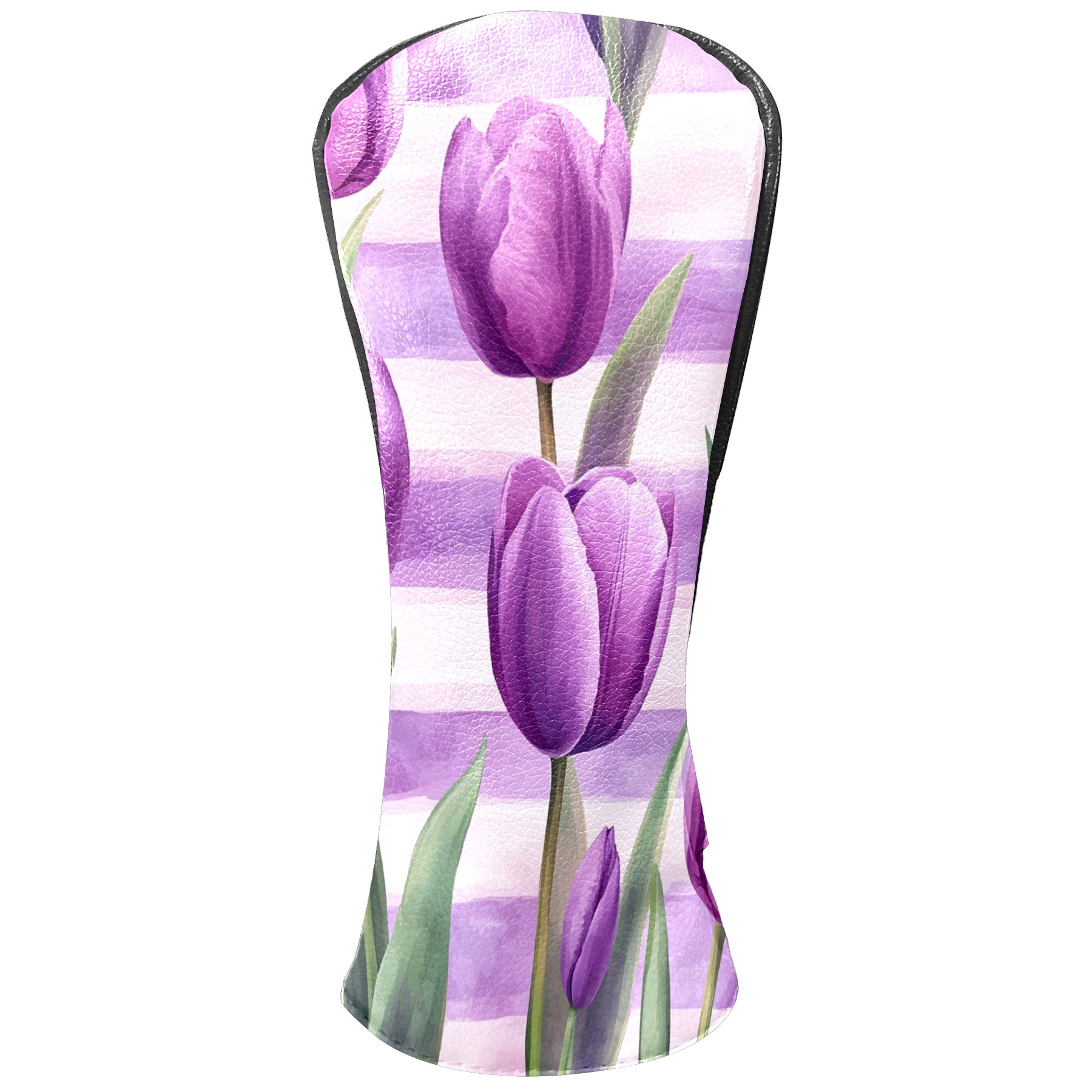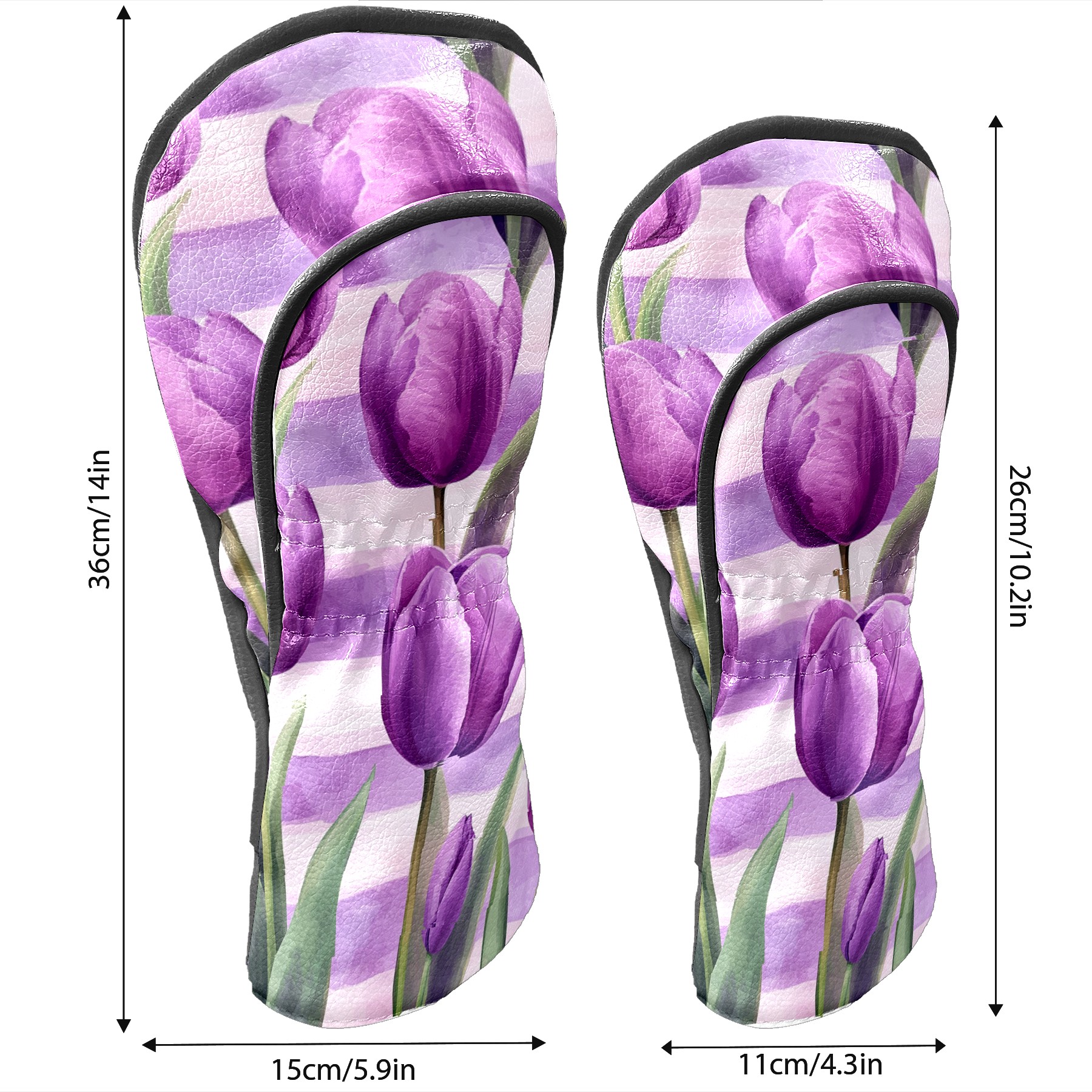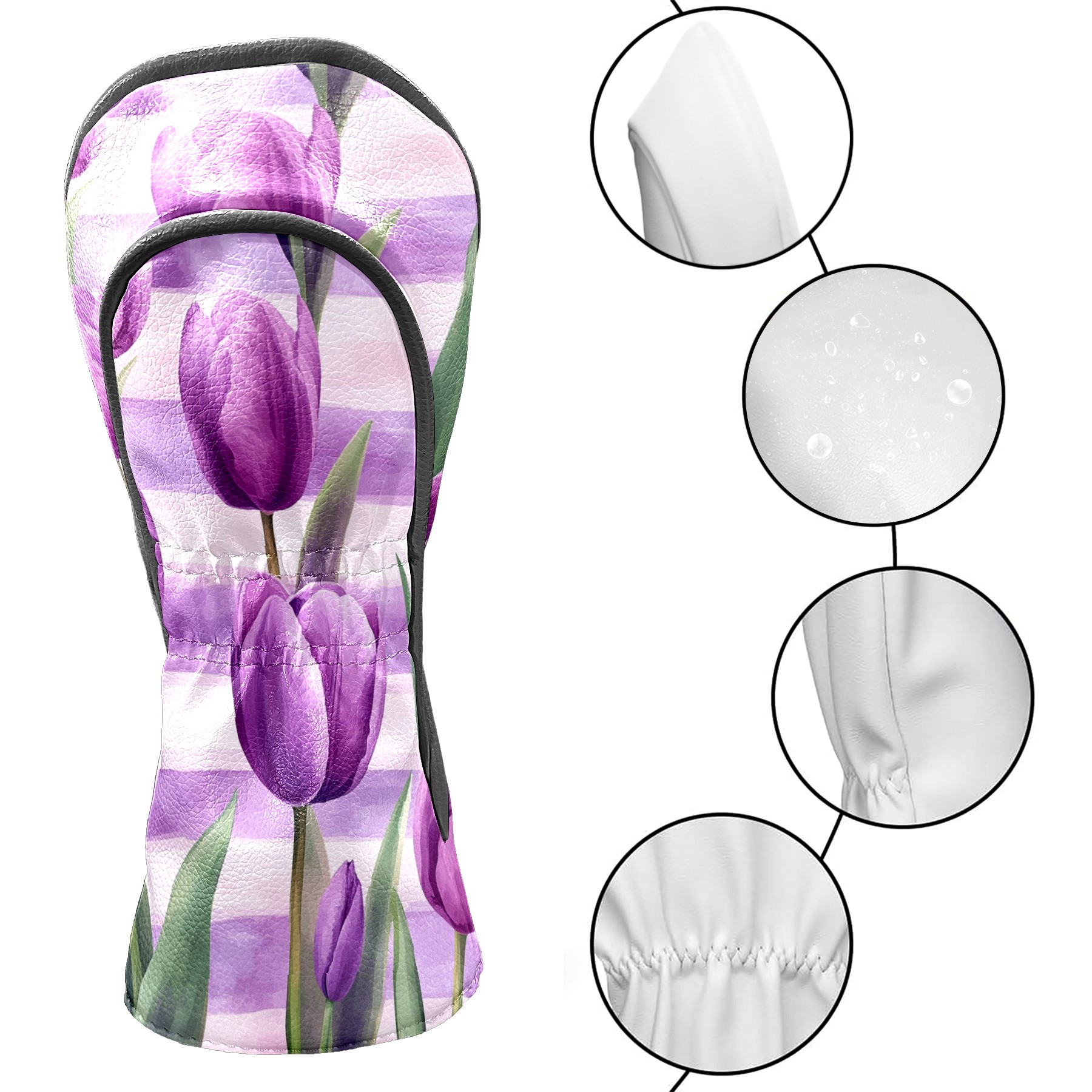 Golf Club Covers PU Leather Waterproof,Golf Club Head Covers for Fairway Woods and Hybrids Purple Tulips Unisex Suitable for Most Brands