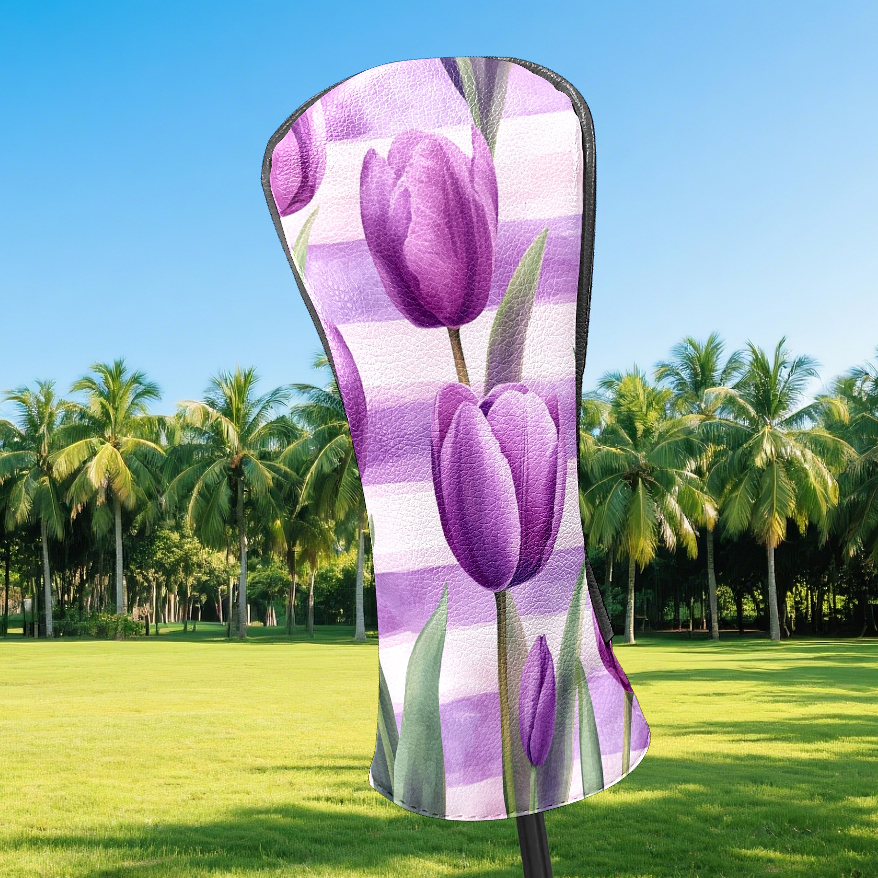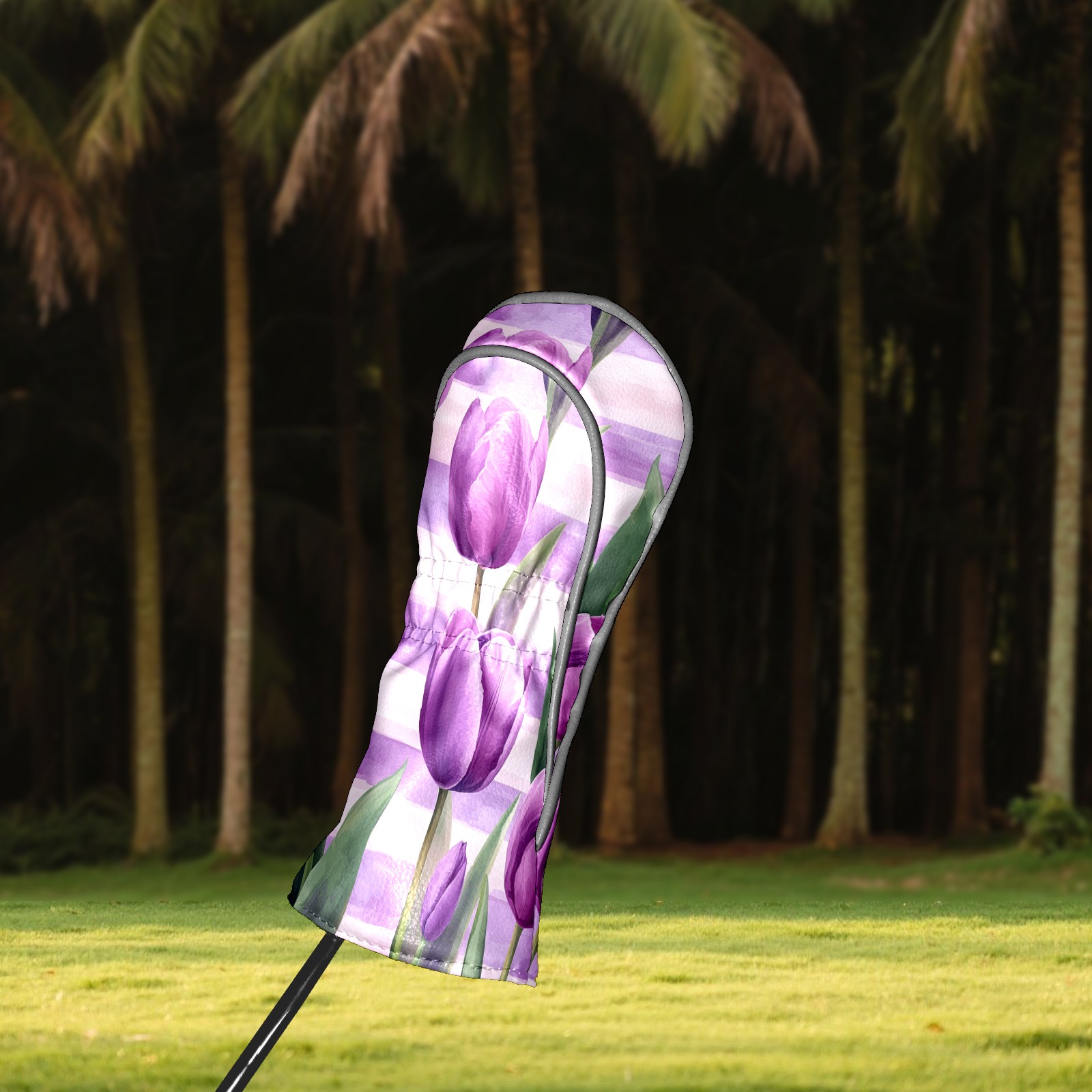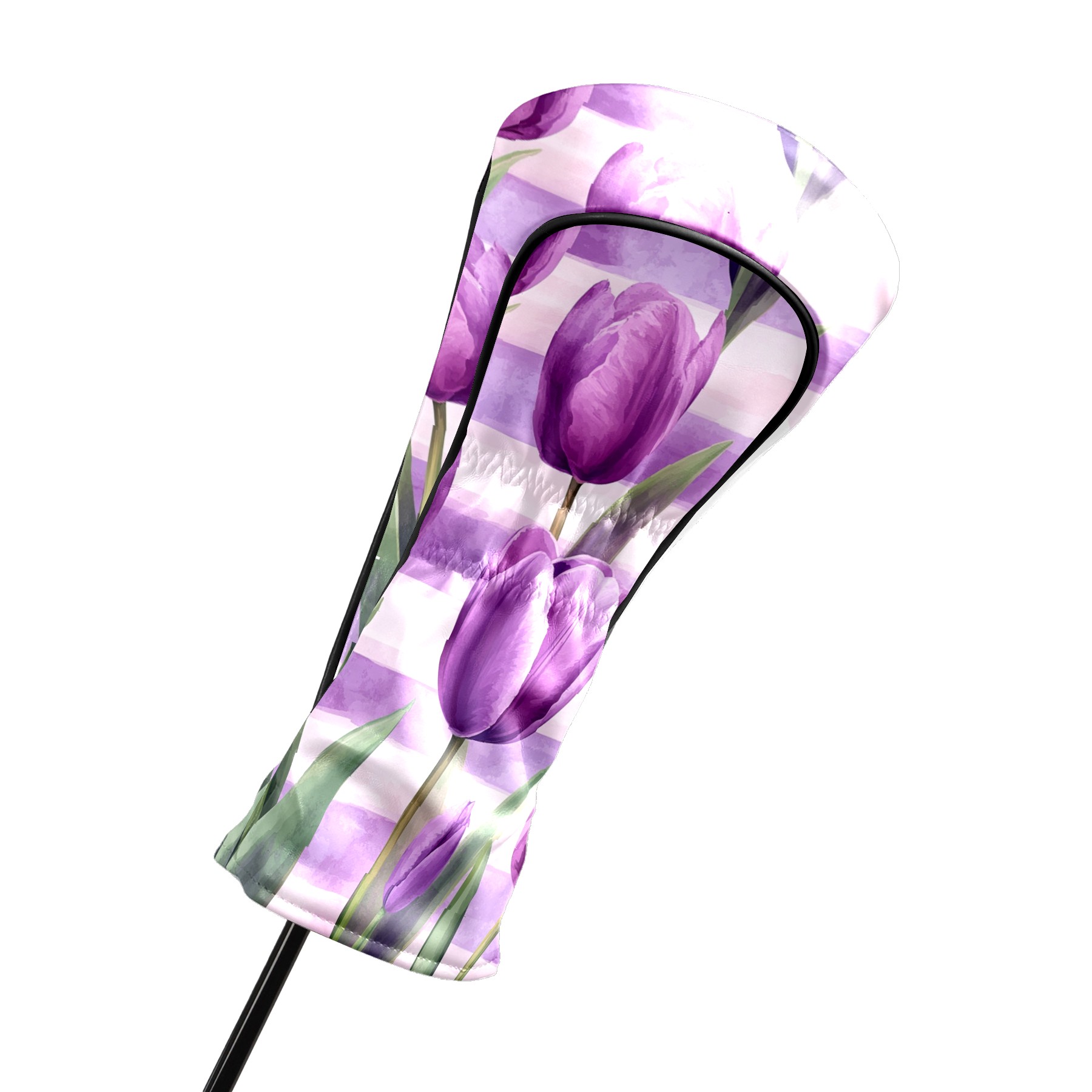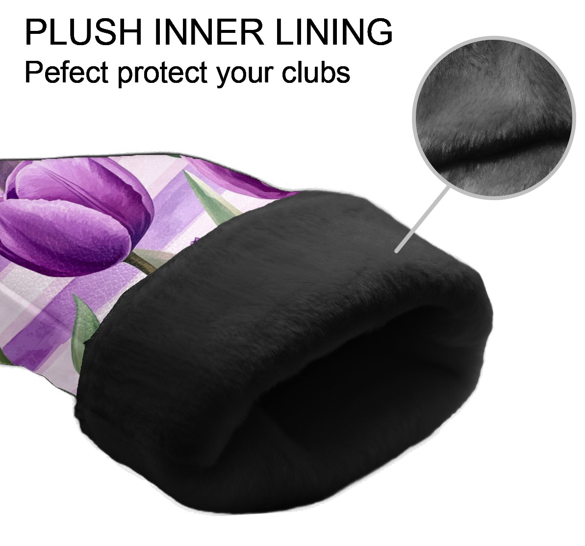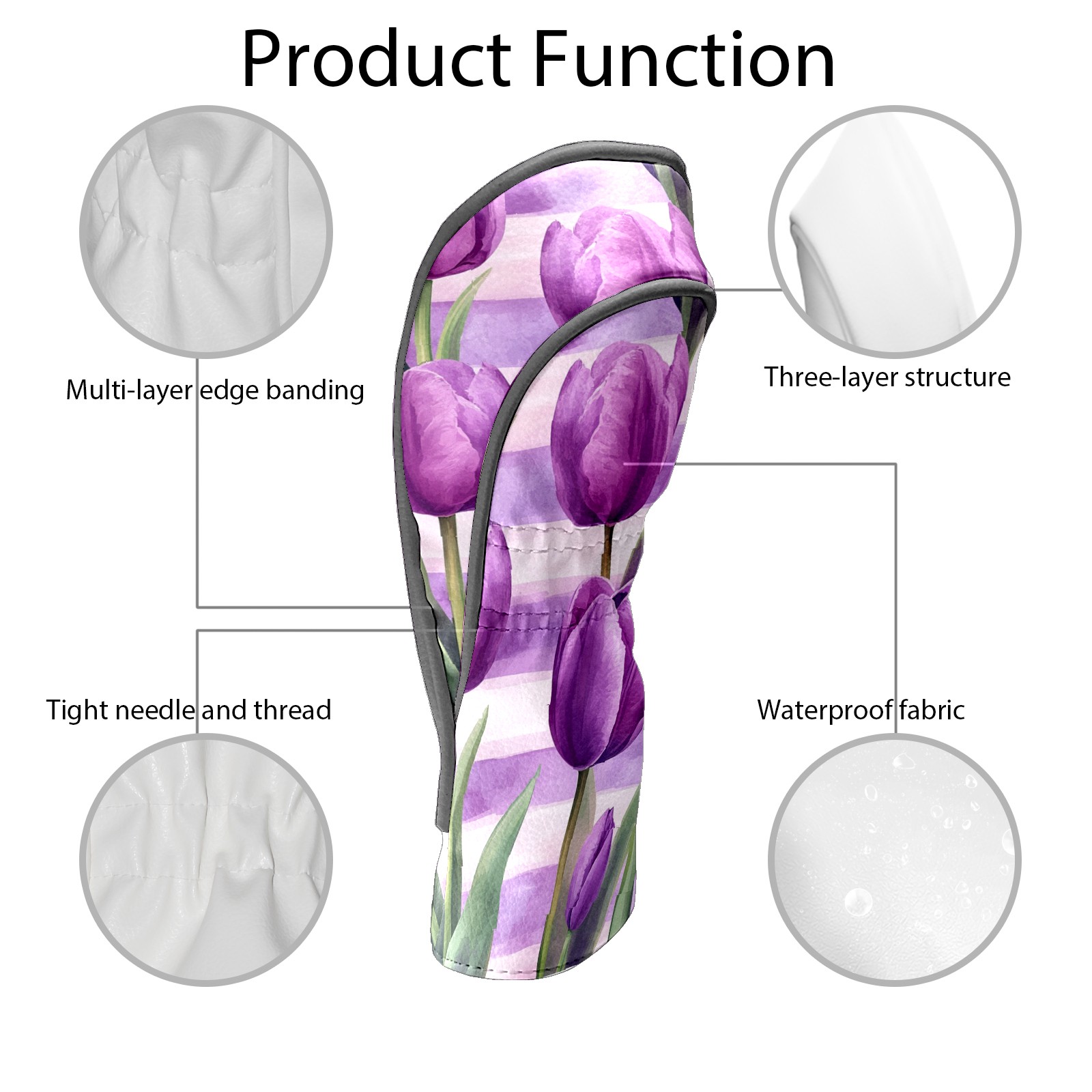 Golf Club Covers PU Leather Waterproof,Golf Club Head Covers for Fairway Woods and Hybrids Purple Tulips Unisex Suitable for Most Brands