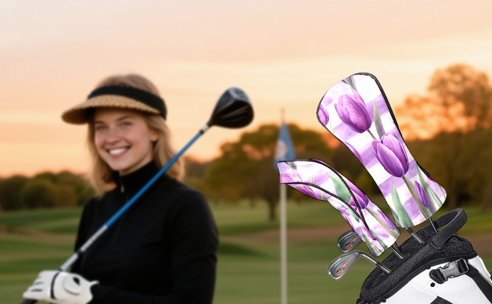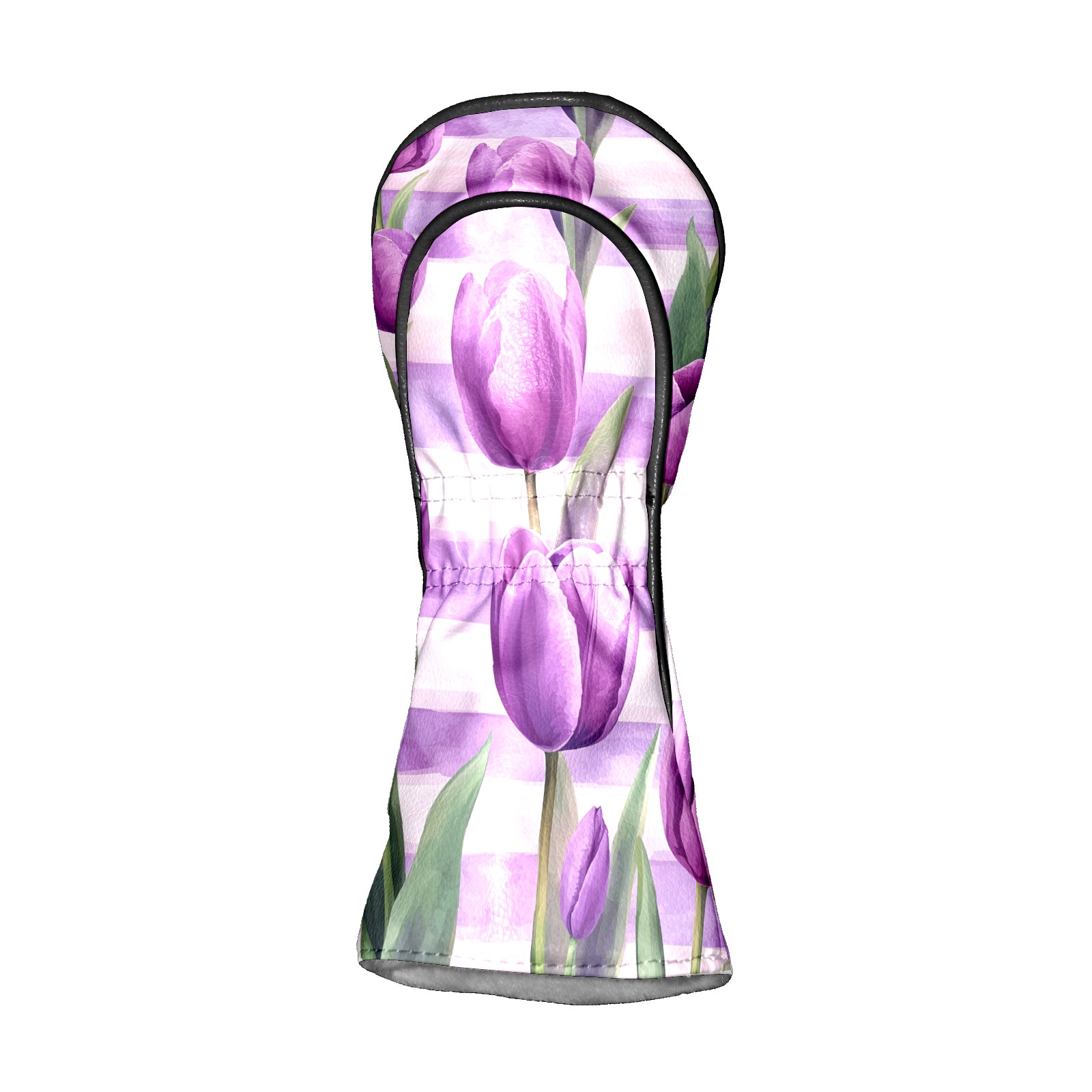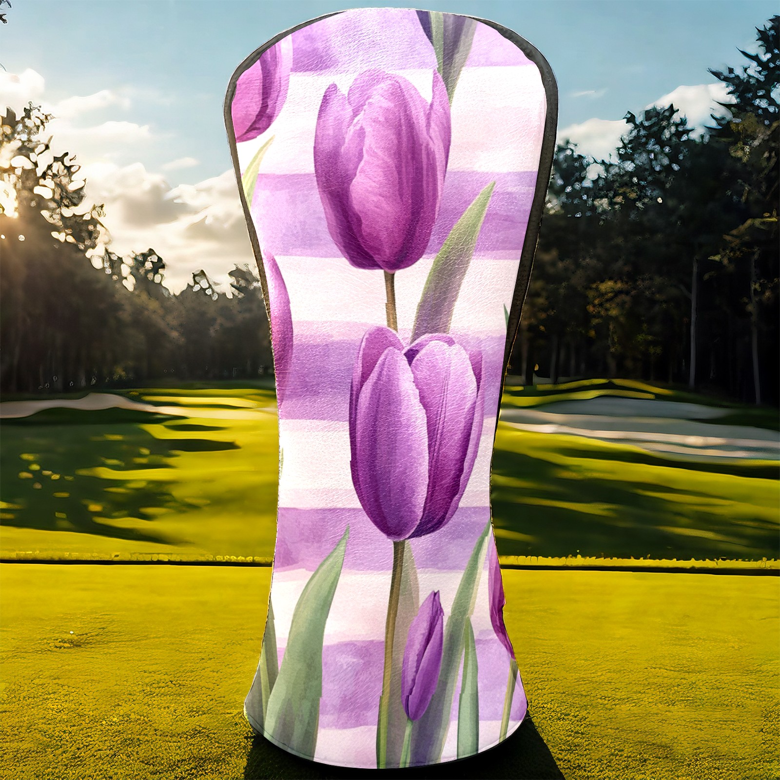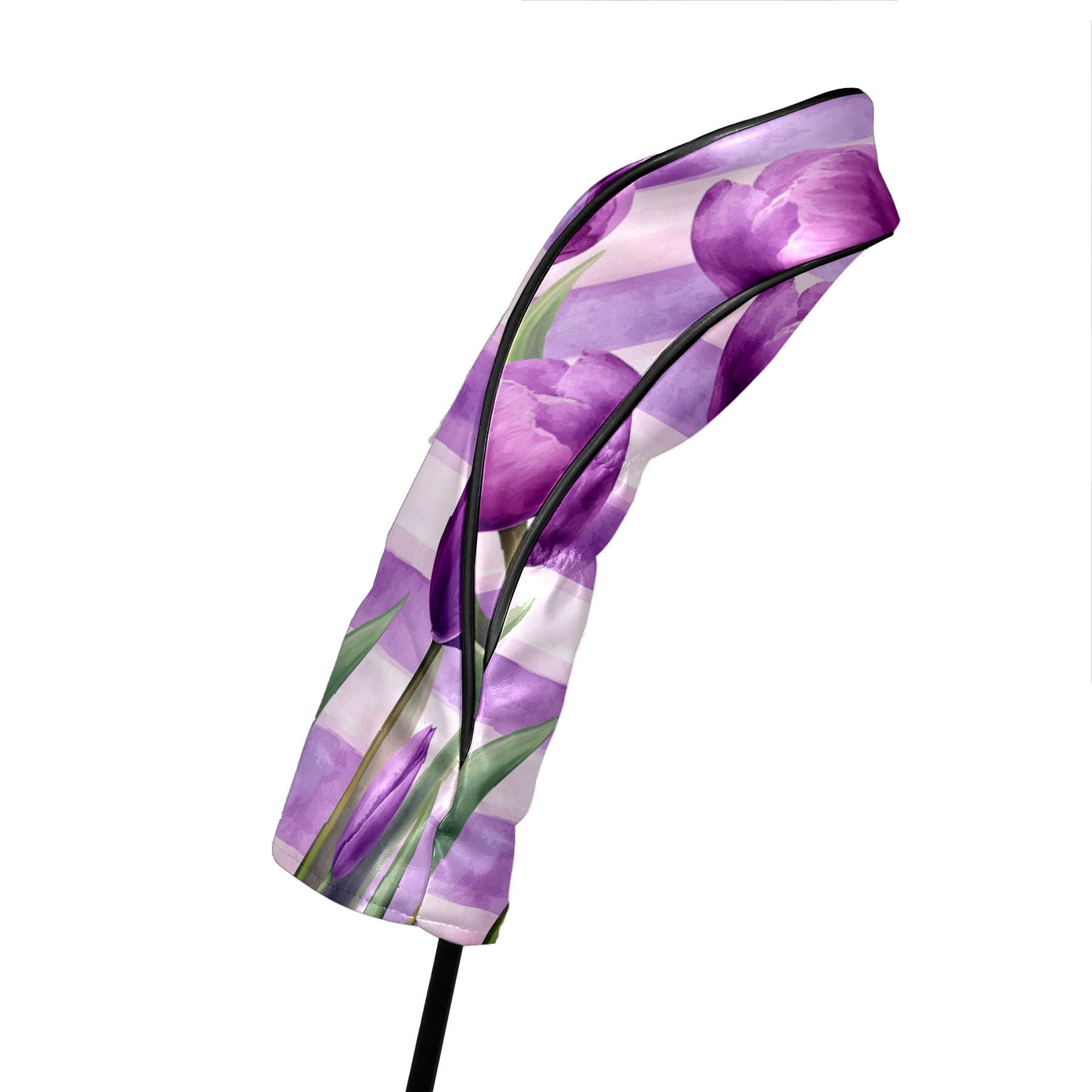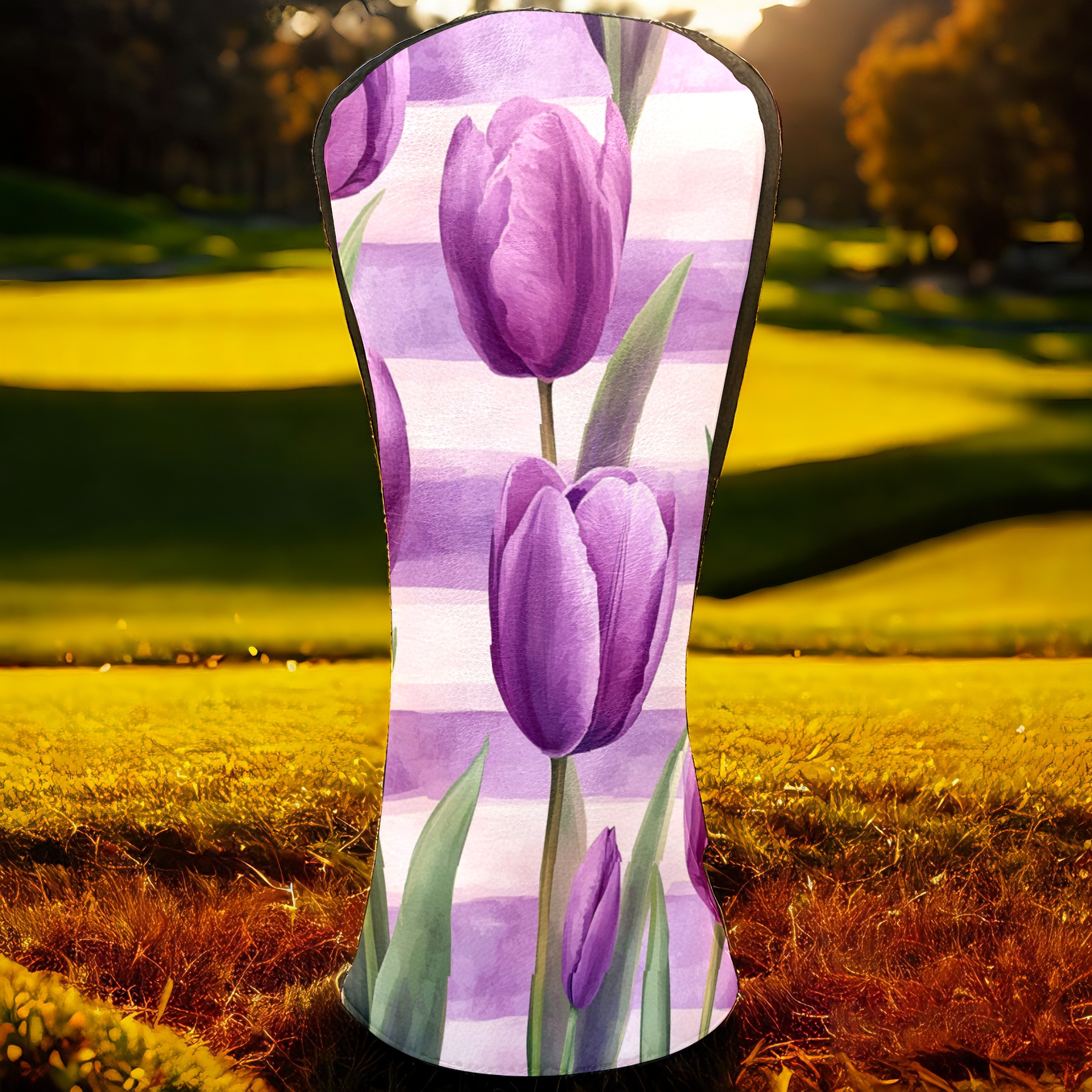 Golf Club Covers PU Leather Waterproof,Golf Club Head Covers for Fairway Woods and Hybrids Purple Tulips Unisex Suitable for Most Brands