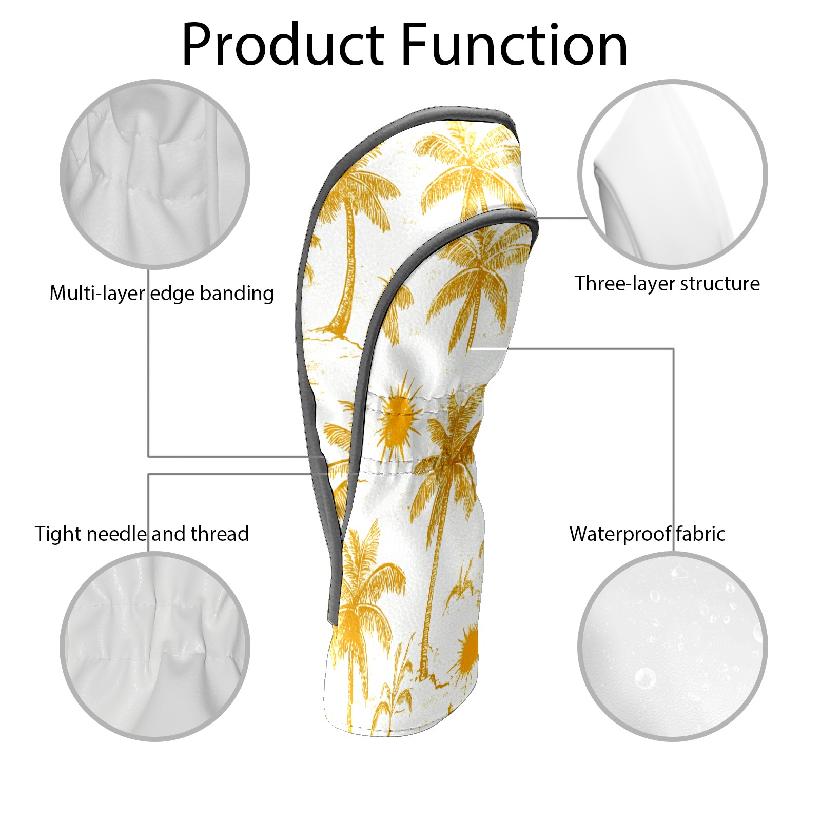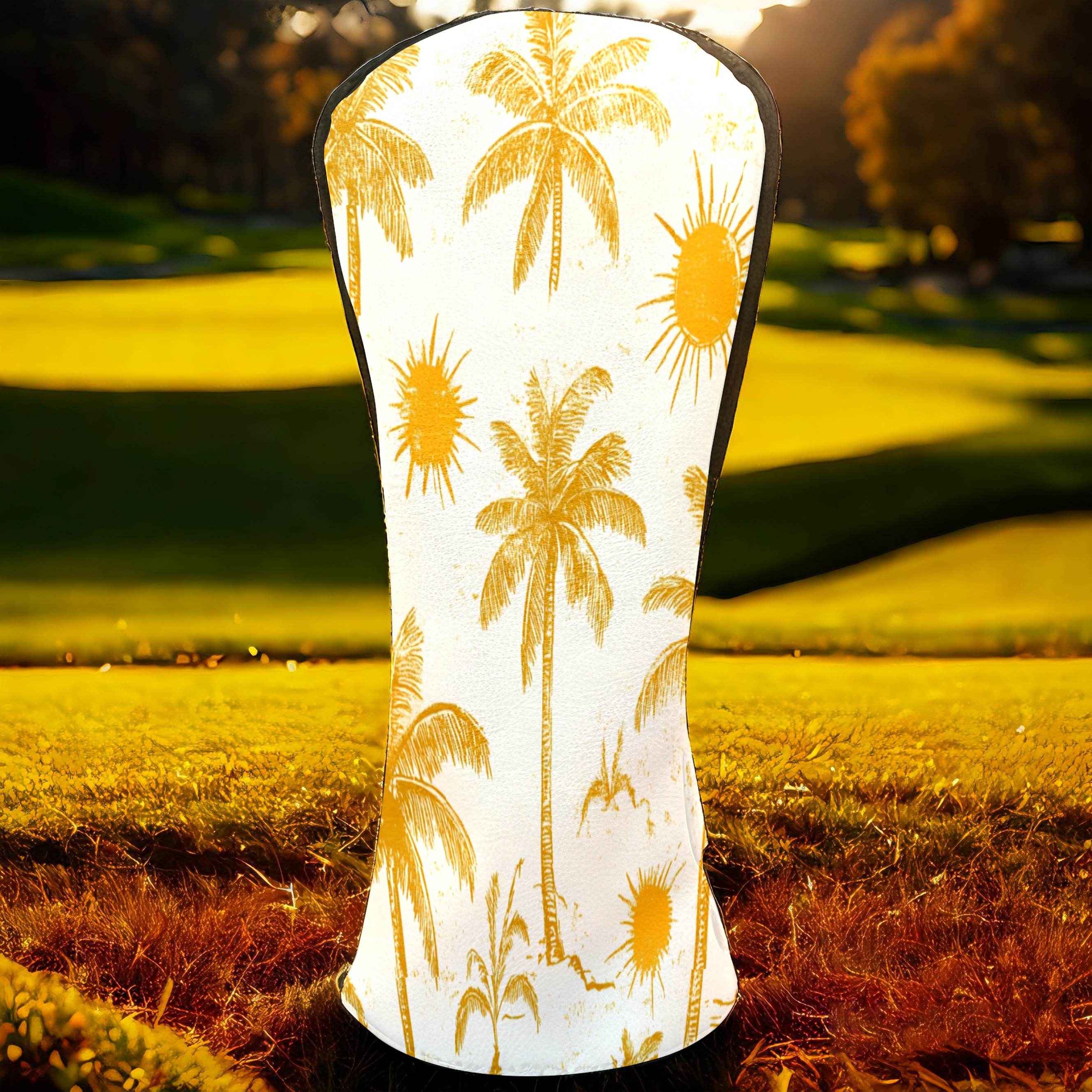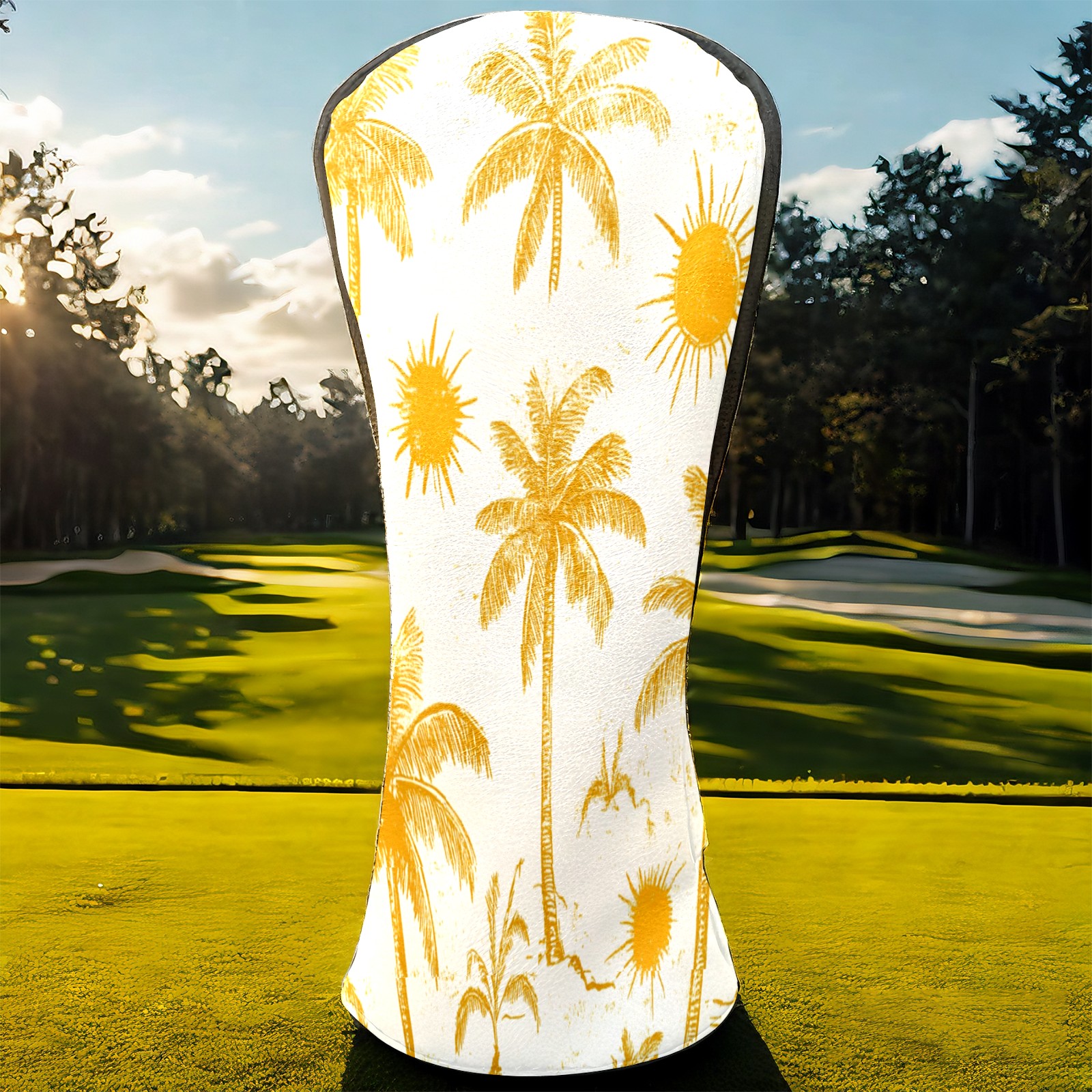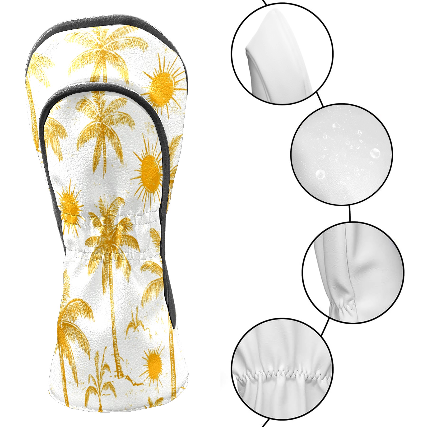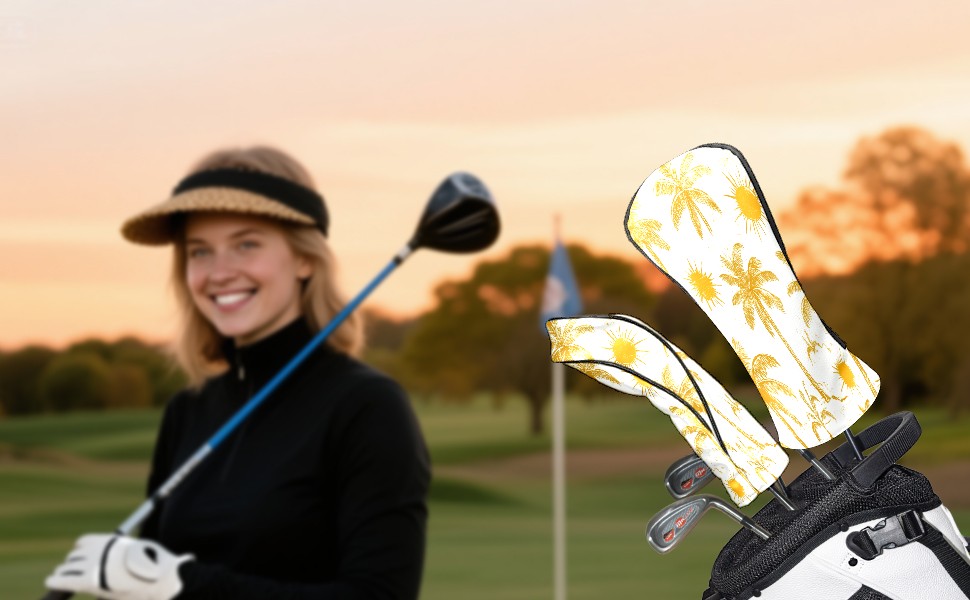 Golf Club Covers PU Leather Waterproof,Golf Club Head Covers for Fairway Woods and Hybrids Beach Palm Trees Unisex Suitable for Most Brands