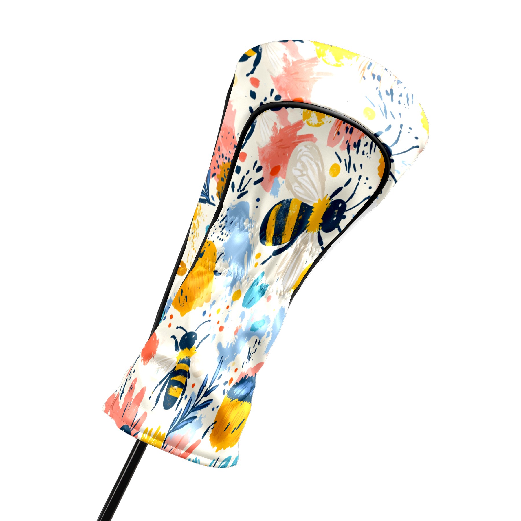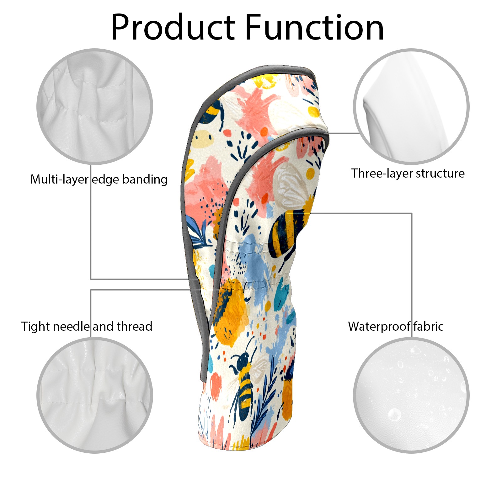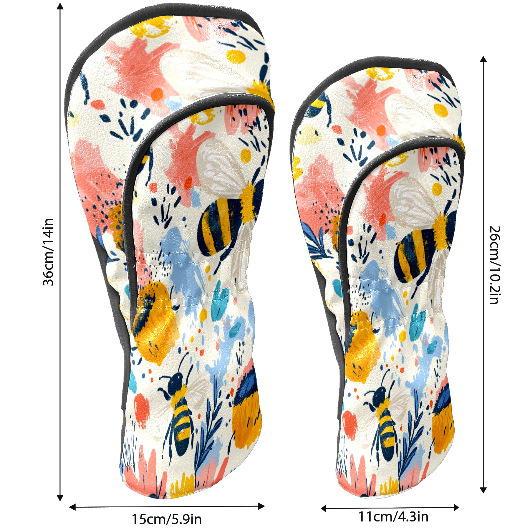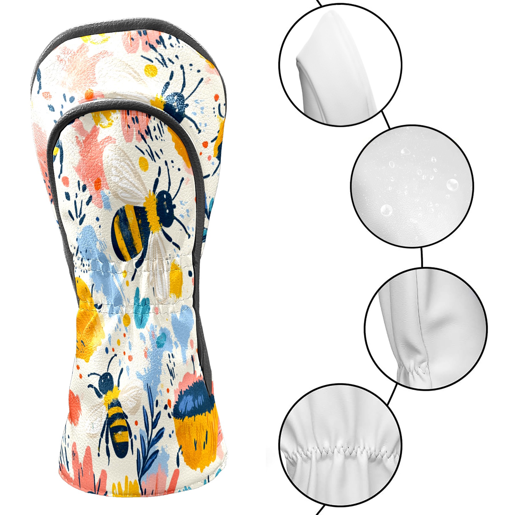 Golf Club Covers PU Leather Waterproof,Golf Club Head Covers for Fairway Woods and Hybrids Cartoon Bee Hive Unisex Suitable for Most Brands