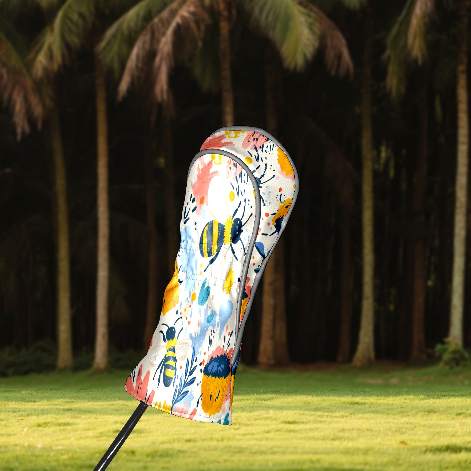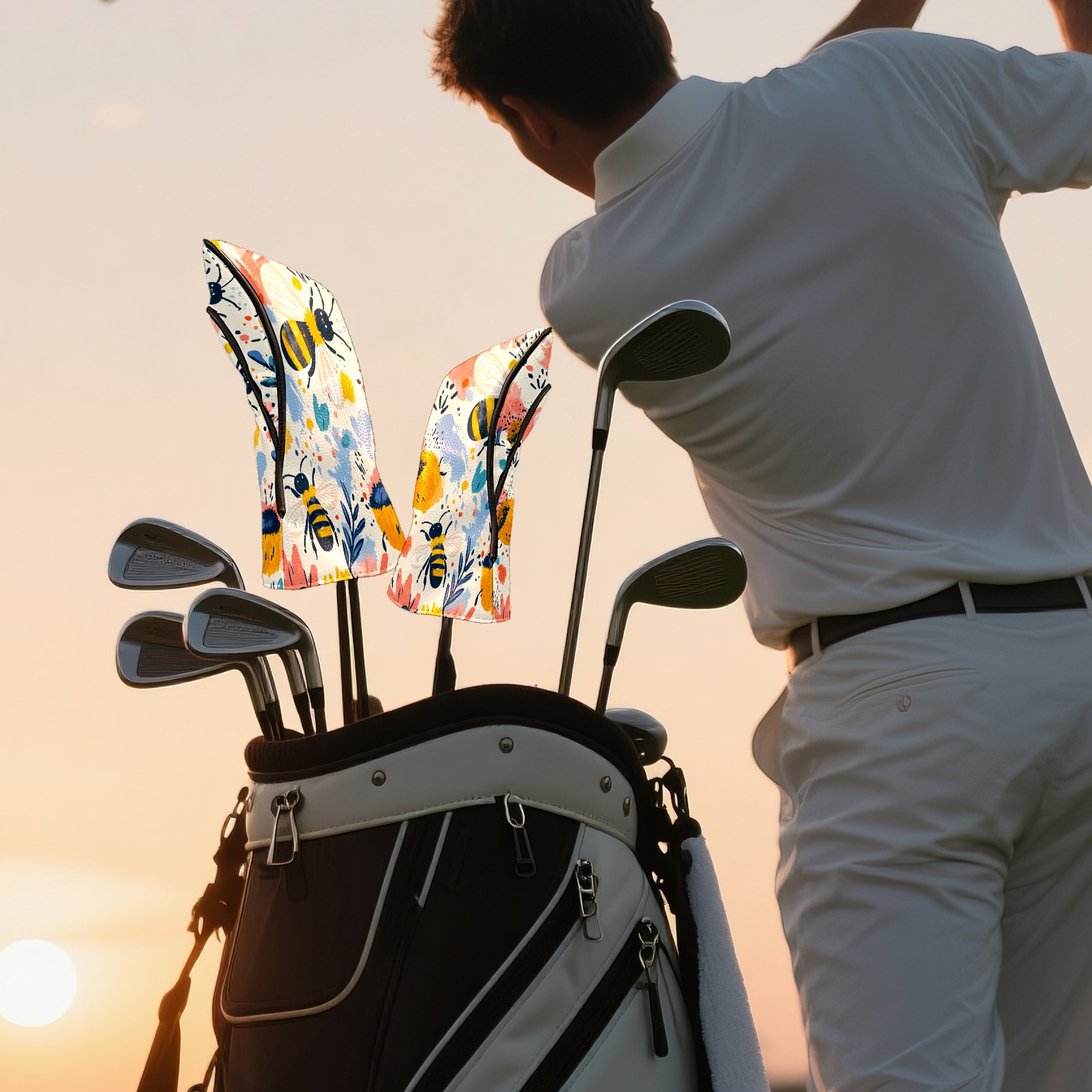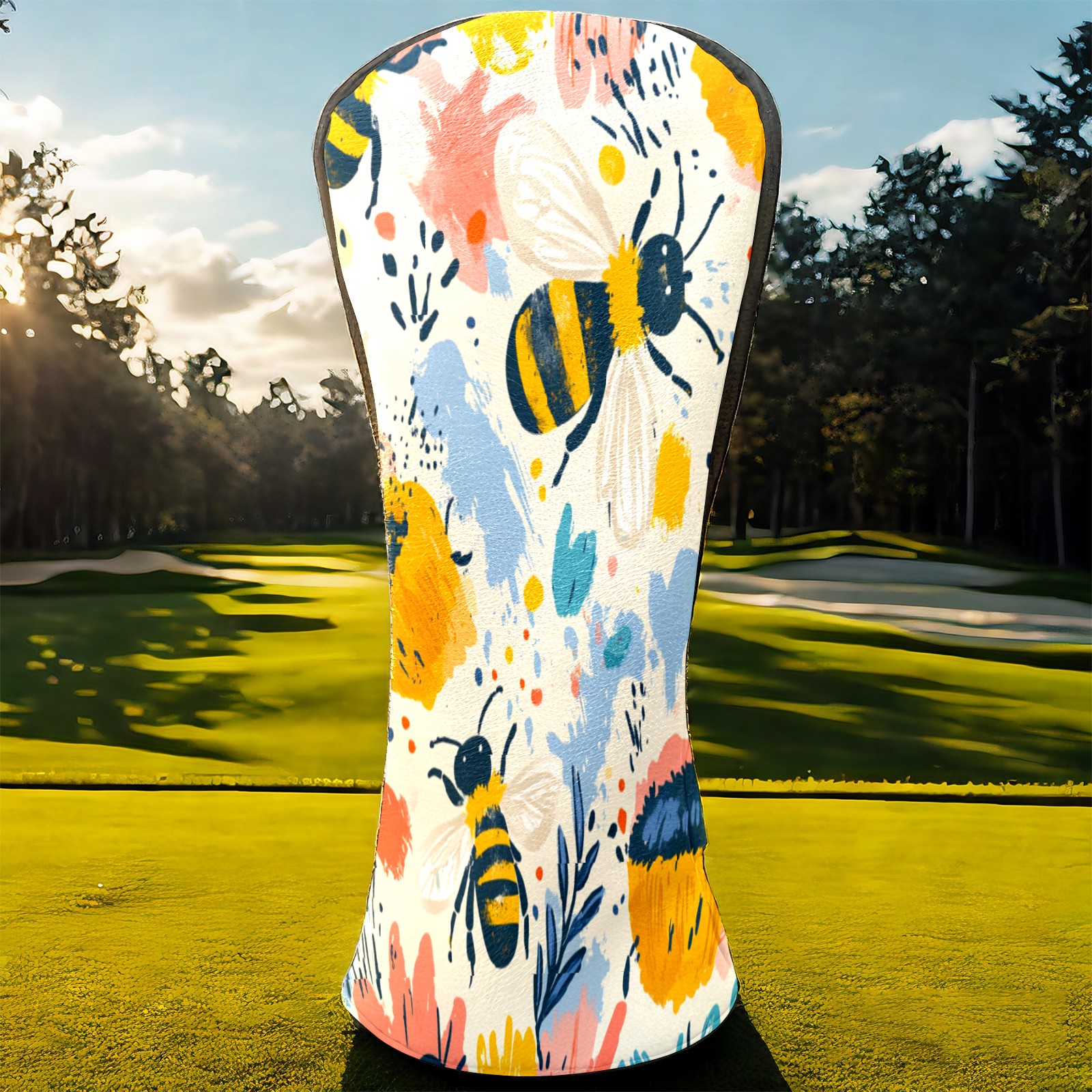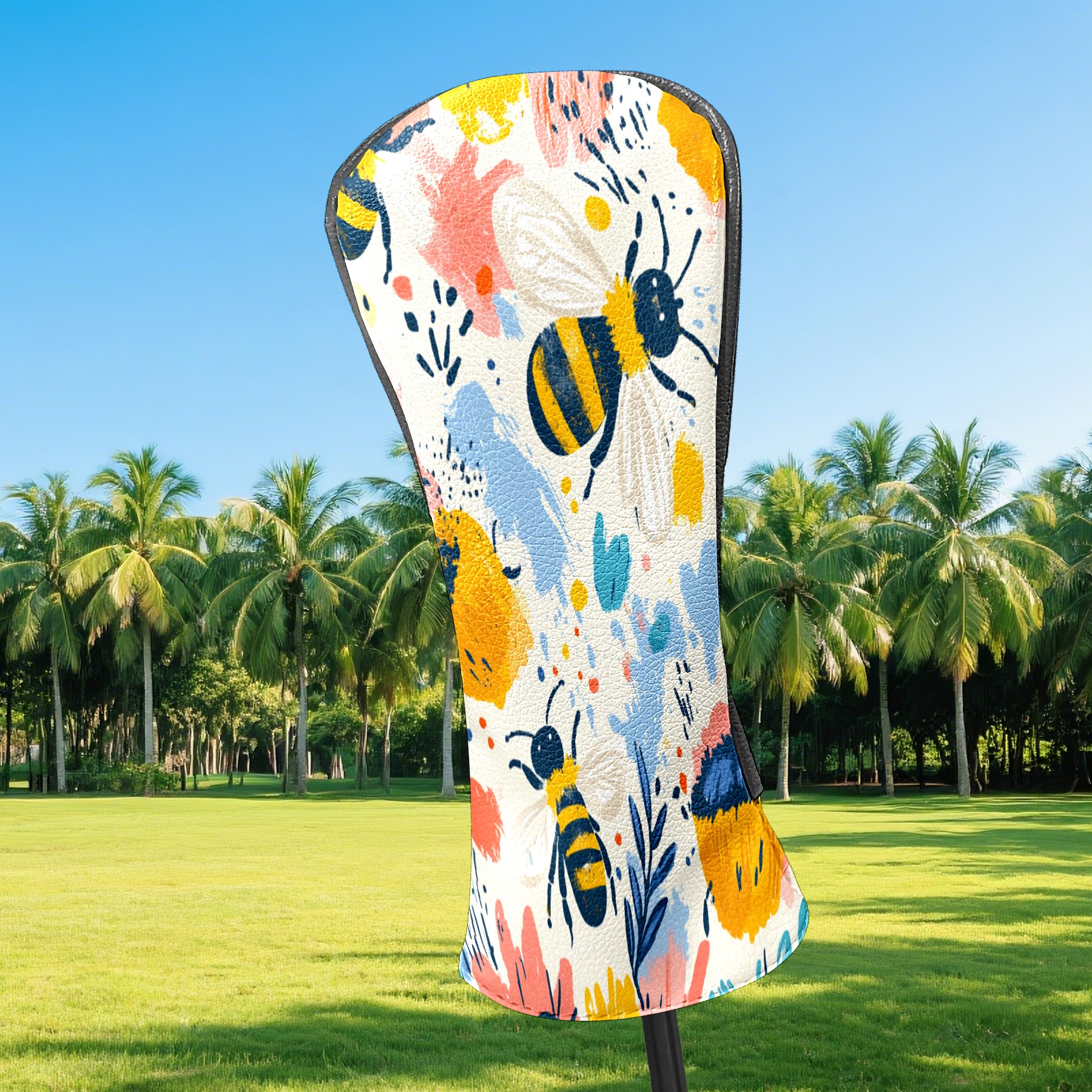 Golf Club Covers PU Leather Waterproof,Golf Club Head Covers for Fairway Woods and Hybrids Cartoon Bee Hive Unisex Suitable for Most Brands