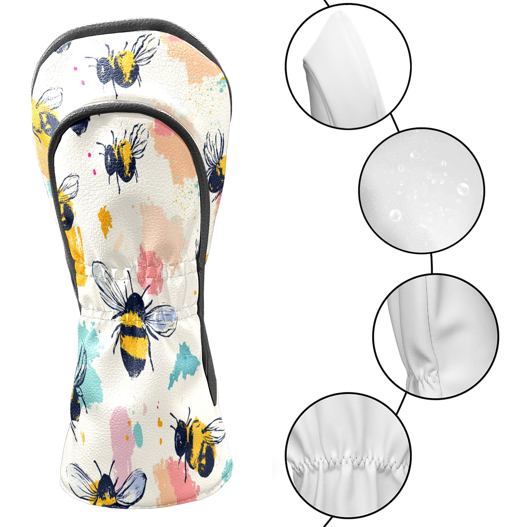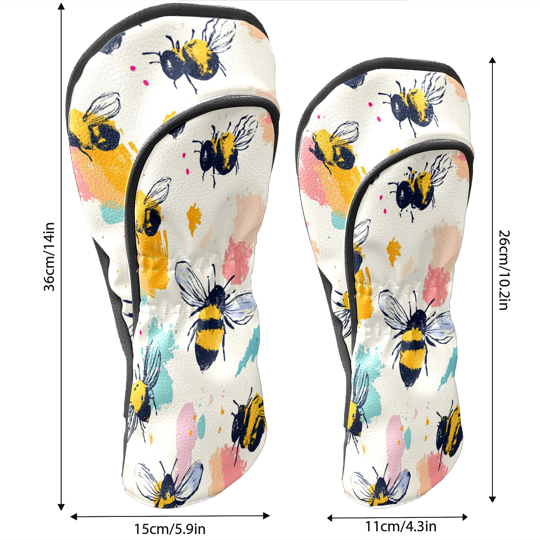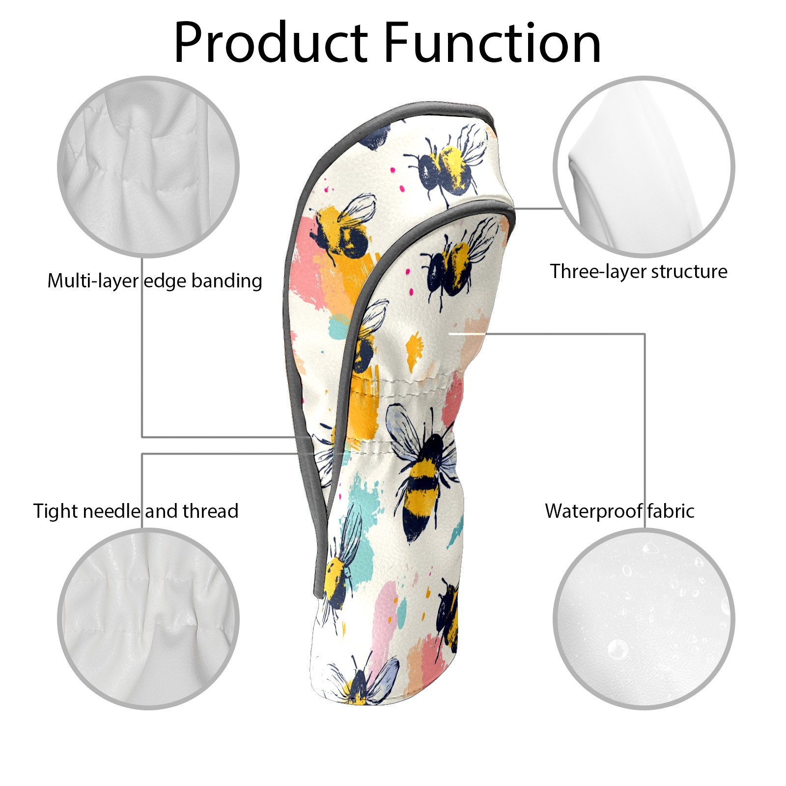 Golf Club Covers PU Leather Waterproof,Golf Club Head Covers for Fairway Woods and Hybrids Cartoon Bee Unisex Suitable for Most Brands