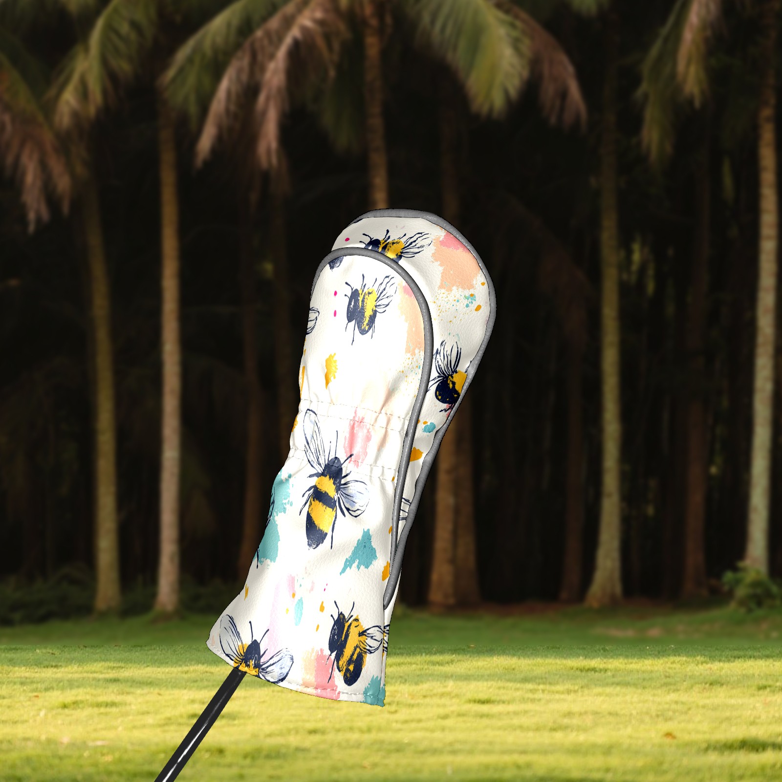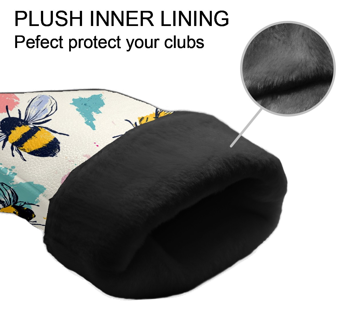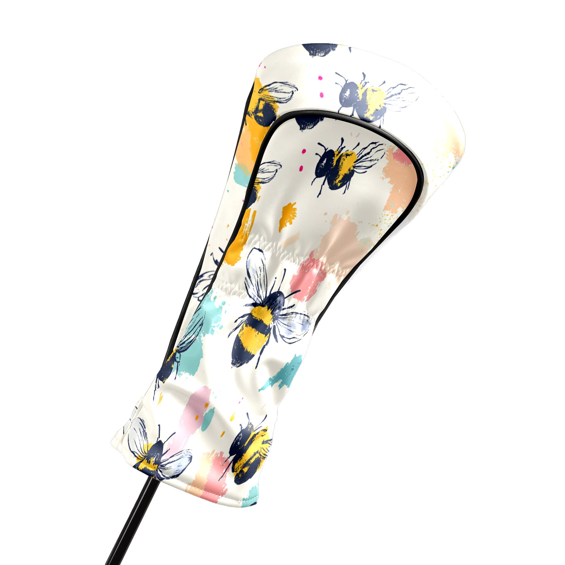 Golf Club Covers PU Leather Waterproof,Golf Club Head Covers for Fairway Woods and Hybrids Cartoon Bee Unisex Suitable for Most Brands