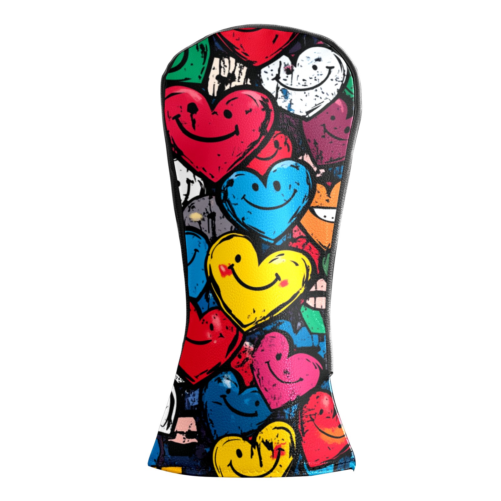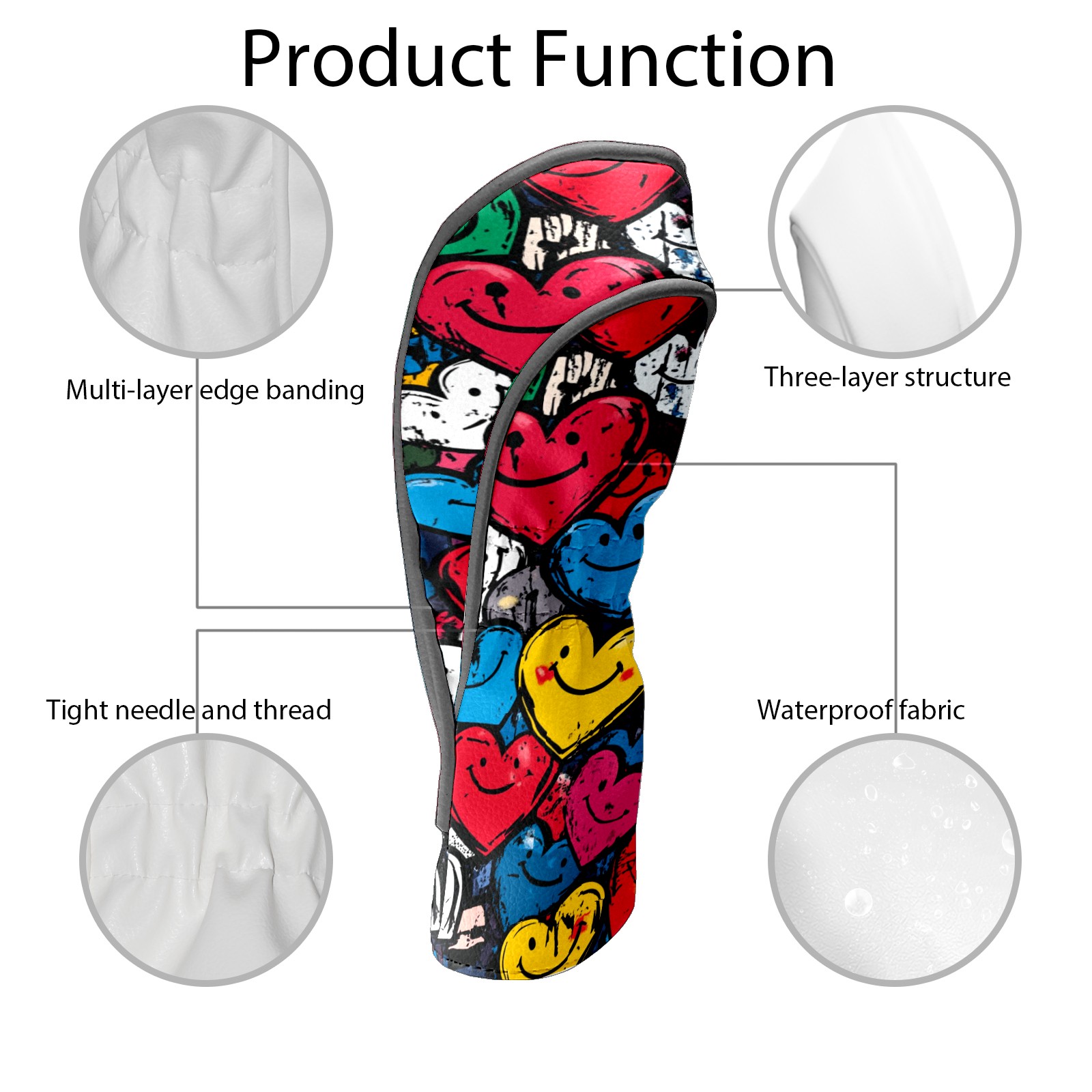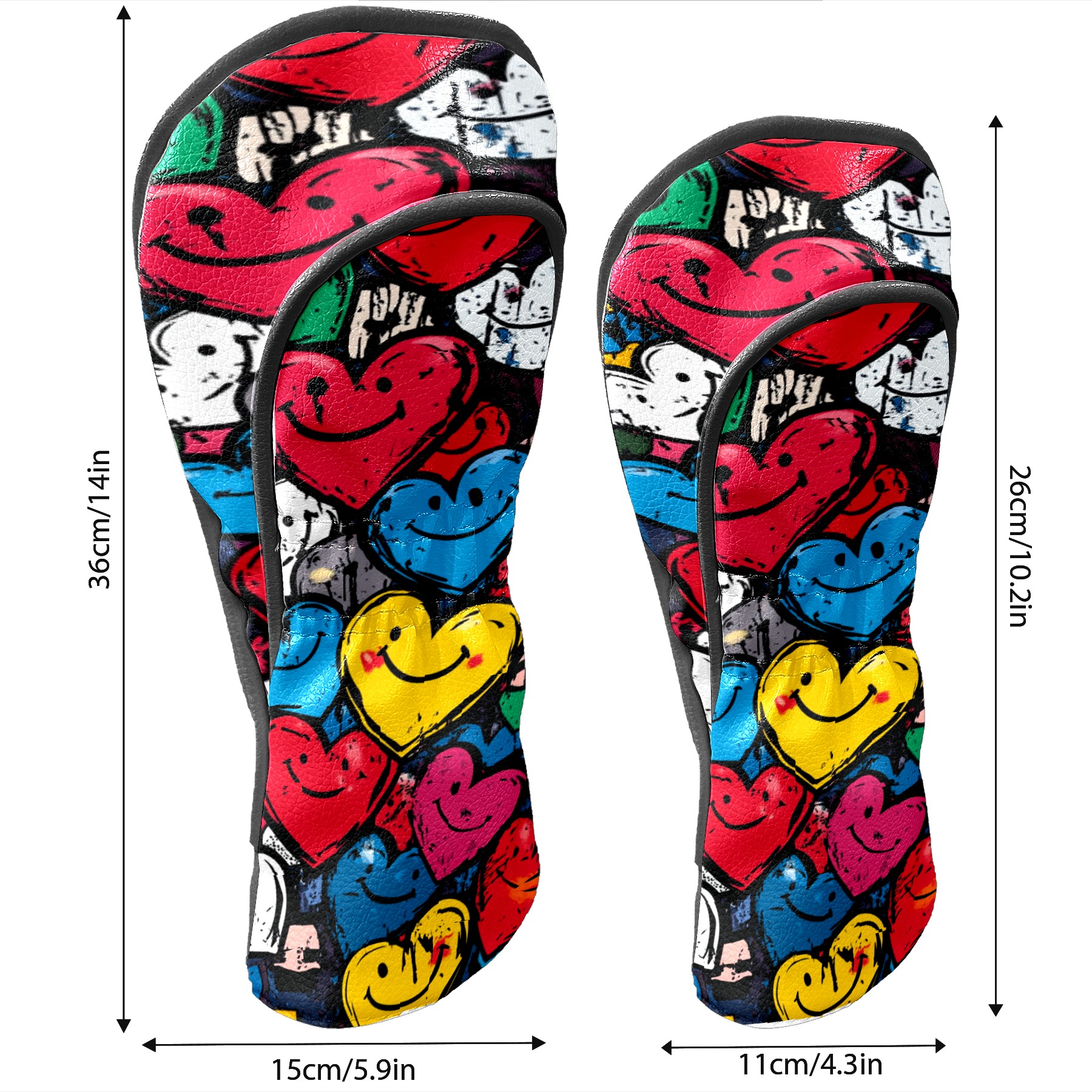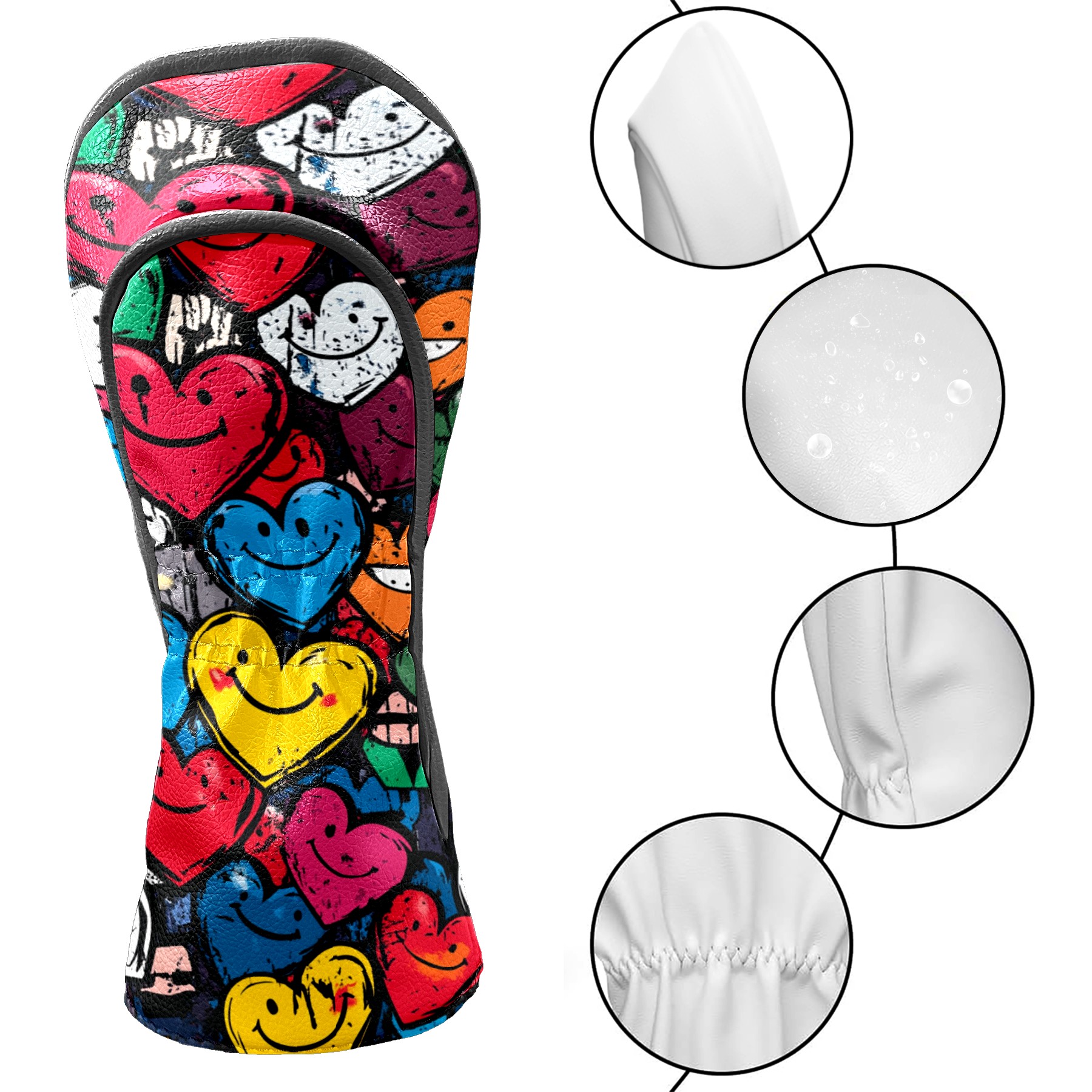 Golf Club Covers PU Leather Waterproof,Golf Club Head Covers for Fairway Woods and Hybrids Graffiti Heart Unisex Suitable for Most Brands